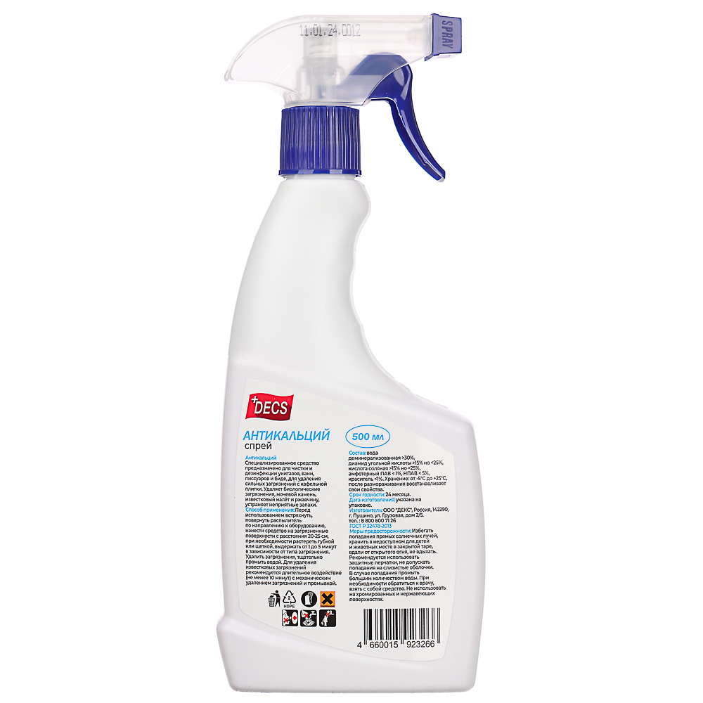Представляем вам средство чистящее DECS "Антикальций" - ваш надежный помощник в борьбе с накипью и известковыми отложениями. Специально разработанная формула эффективно удаляет накипь с различных поверхностей, сохраняя их блеск и чистоту. Упаковка объемом 500 мл обеспечивает достаточное количество продукта для эффективной чистки ваших поверхностей. Прочный пластиковый флакон с удобным дозатором обеспечивает экономичное расходование продукта и удобство в использовании. Средство чистящее DECS "Антикальций" станет незаменимым помощником для поддержания чистоты и блеска вашего дома.