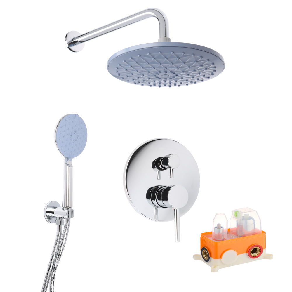 Душевая система RAIN для скрытого встраиваемого монтажа – это комплект, который включает стационарный тропический душ, а также трехрежимную ручную лейку. Все элементы изготовлены из высококачественной нержавеющей стали со стойким хромированным покрытием, устойчивым к царапинам и сколам. Покрытие легко очищается до зеркального блеска и не тускнеет с течением времени. Надежные комплектующие рассчитаны на длительный срок службы. Душевая система прошла тщательный контроль качества, что гарантирует бесперебойную работу на протяжении всего срока эксплуатации.