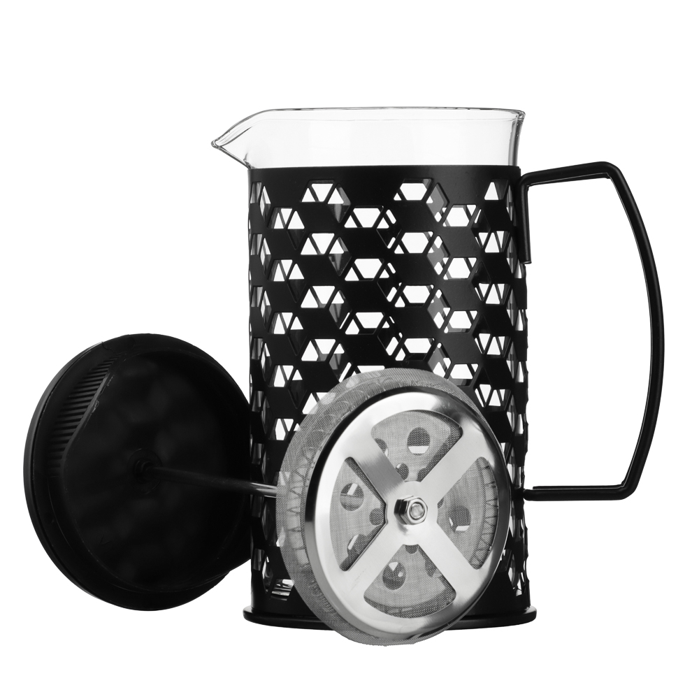 Френч-пресс 600 мл SATOSHI Монблан – элегантное и функциональное решение для приготовления ароматного кофе. Корпус из матовой нержавеющей стали черного цвета надёжно защищает термостойкую стеклянную колбу, сохраняя тепло и позволяя контролировать процесс заваривания. Двойная фильтрация обеспечивает чистый насыщенный вкус: пресс-фильтр из нержавеющей стали с мелкой сеткой задерживает кофейную гущу, а сливной фильтр в крышке предотвращает попадание даже мельчайших частиц в чашку. Эргономичная ручка и крышка с удобным нажатием делают использование безопасным и комфортным. Объём 600 мл рассчитан на 4 порции эспрессо или американо. Легко разбирается и моется. Идеален для дома, офиса или путешествий.