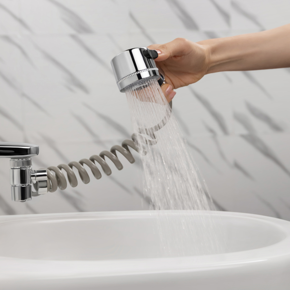 Удобный душевой набор для крана — идеальное решение для быстрого и функционального обновления ванной комнаты. В комплекте идет аэратор-дивертор, который легко устанавливается на кран и позволяет переключаться между режимами подачи воды. Гибкий шланг длиной от 30 до 150 см дает свободу движения, а лейка с двумя режимами распыления обеспечивает комфортное принятие душа. Прочный держатель надежно фиксирует лейку в удобном положении. Набор подходит для быстрой установки и удобен в использовании, делая ежедневные процедуры еще приятнее!