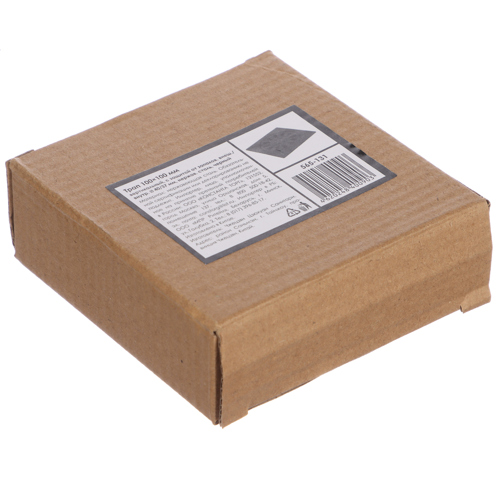 Трап 100х100 мм, вертикальный, с защит. от запахов, внеш/внутр d=40/37 мм, нержав. сталь, черный