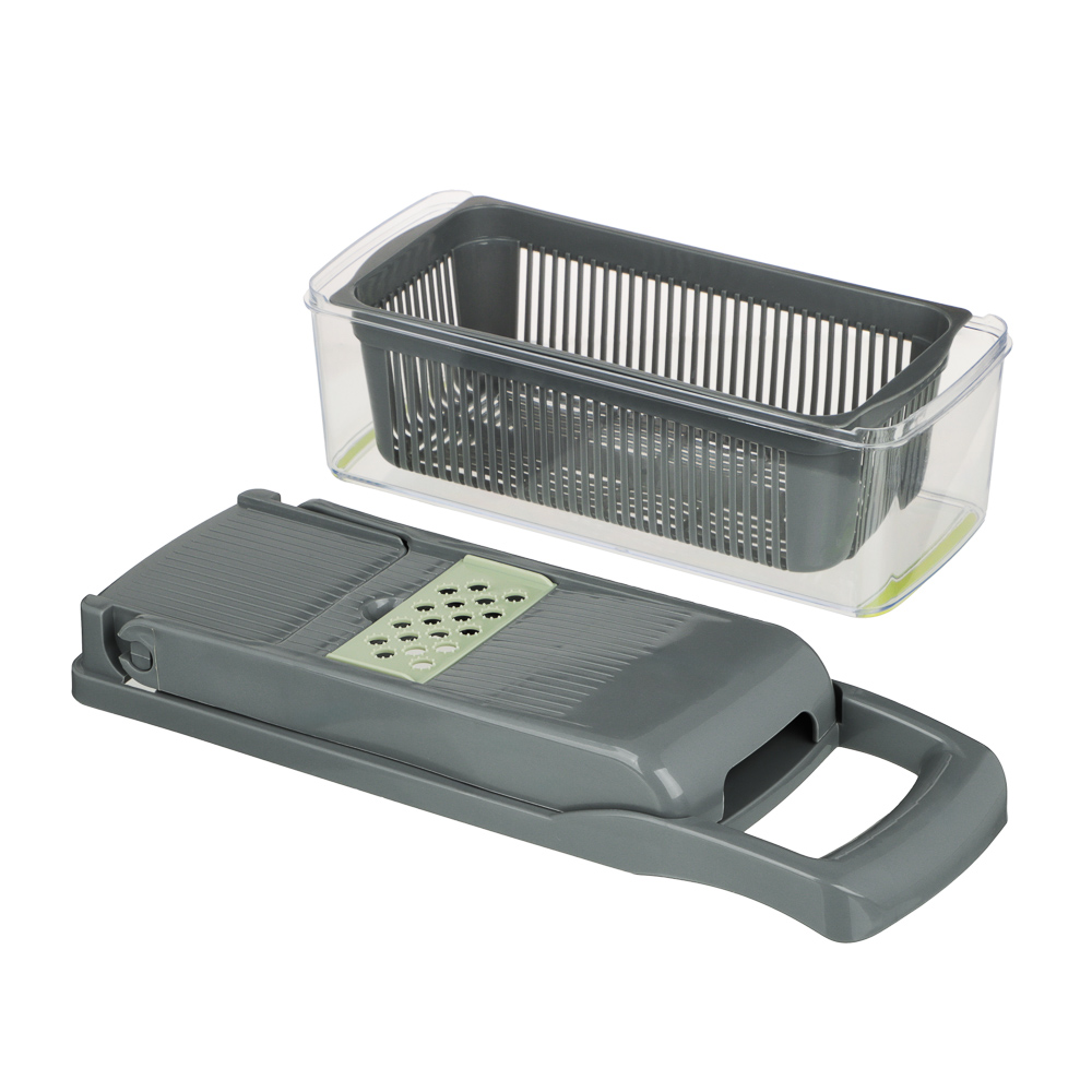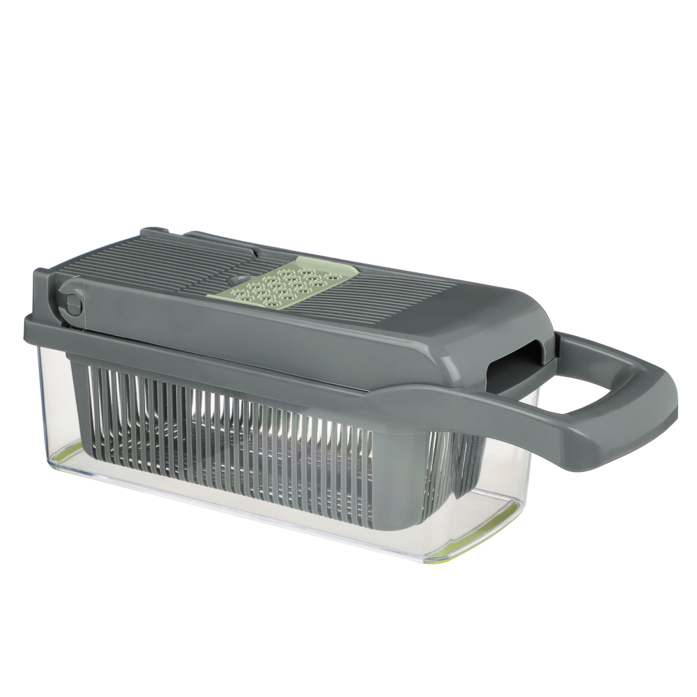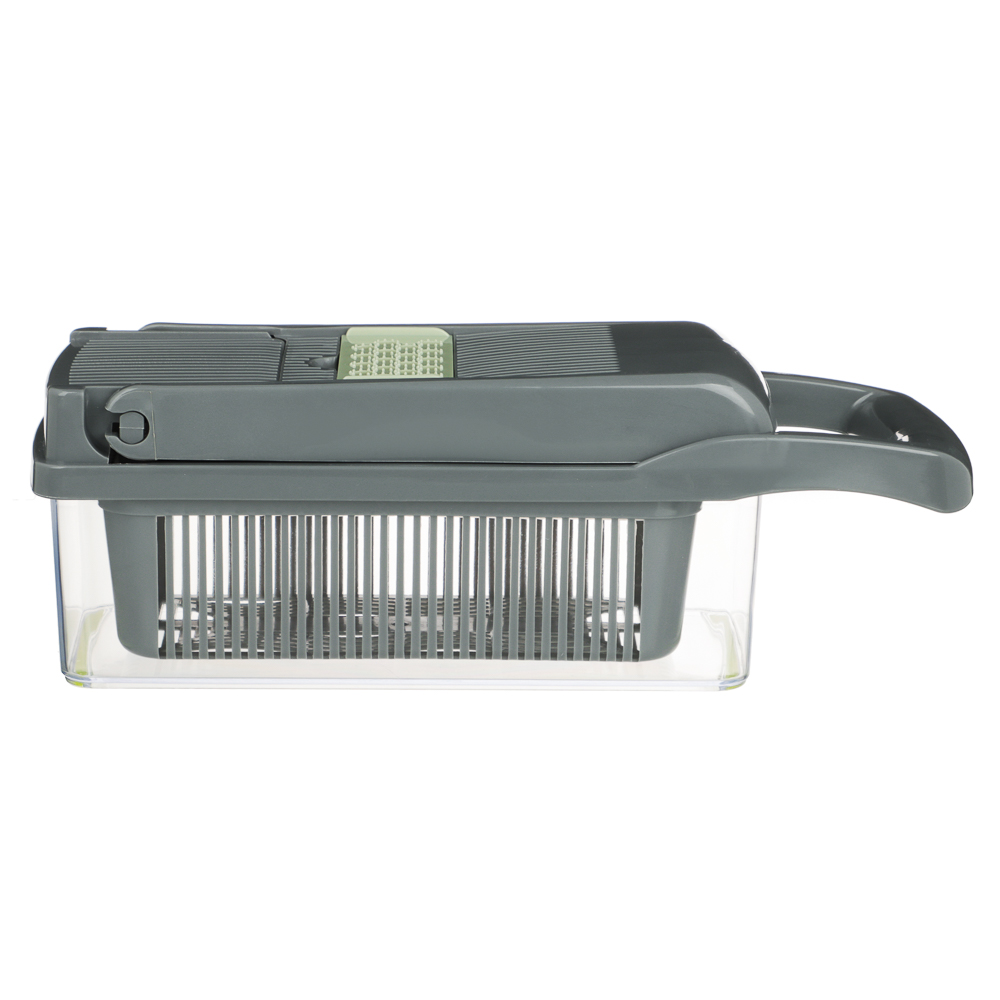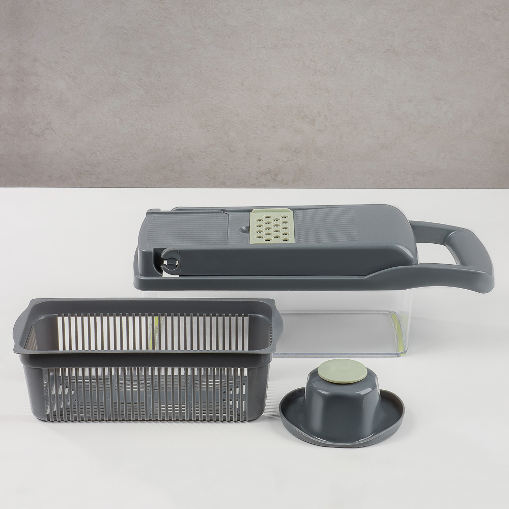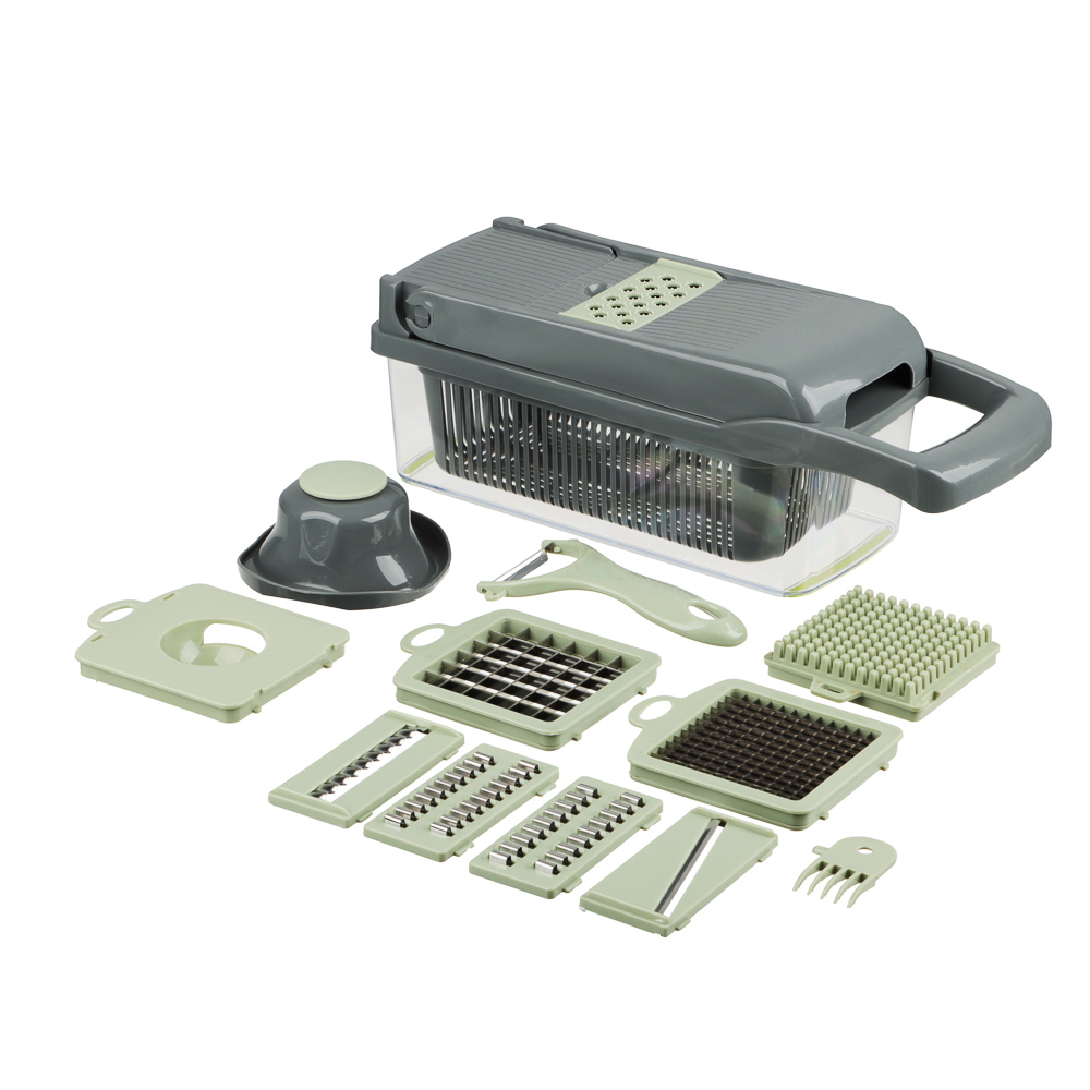 Овощерезка многофункциональная SATOSHI из 16 предметов "Мастер Слайсер" – это профессиональный кухонный помощник для идеальной нарезки овощей, фруктов и других продуктов. В комплекте 16 сменных насадок для различных видов шинковки, нарезки соломкой, кубиками и слайсами. Овощерезка значительно ускорит процесс приготовления любых блюд: супов, салатов и свежих и отварных овощей, вторых блюд, заготовок для заморозки. Набор также включает овощечистку, емкость с отверстиями для отделения жидкой фракции и пресс-ручка, которая защищает пальцы от повреждений. Корпус овощерезки и насадок изготовлен из прочного пищевого пластика, а металлические части и лезвия – из нержавеющей стали, устойчивой к коррозии и деформации. Все детали легко моются.