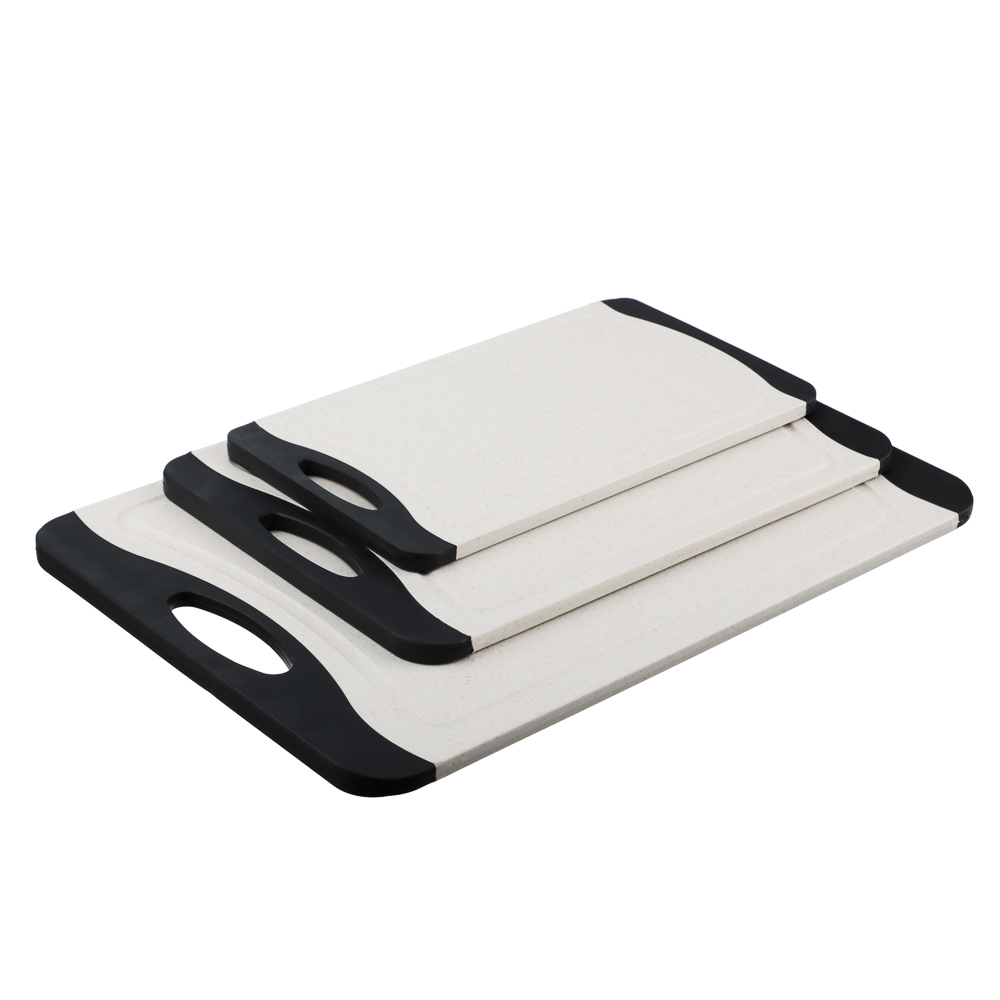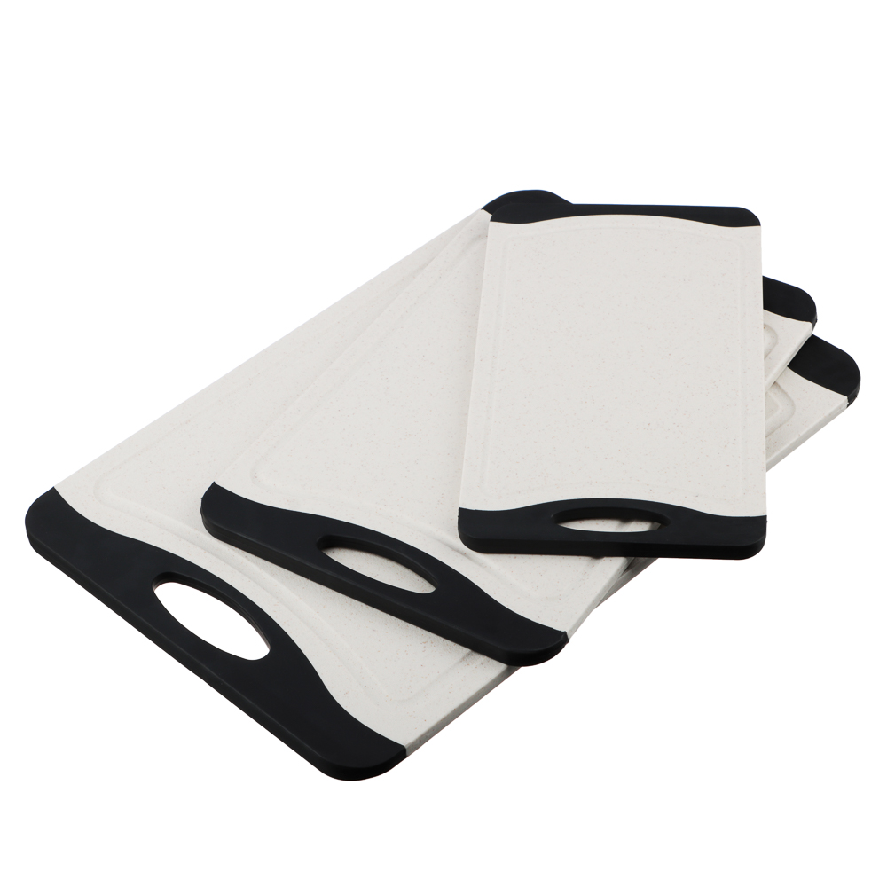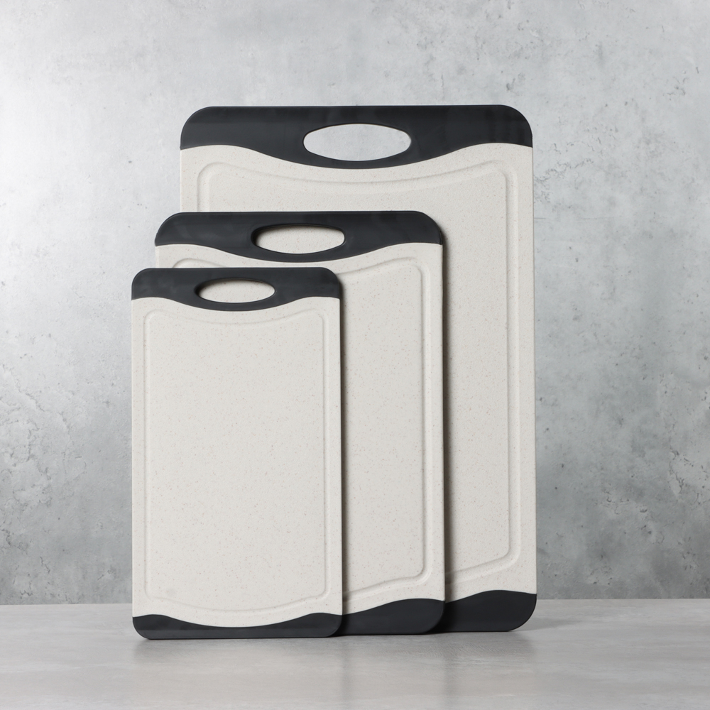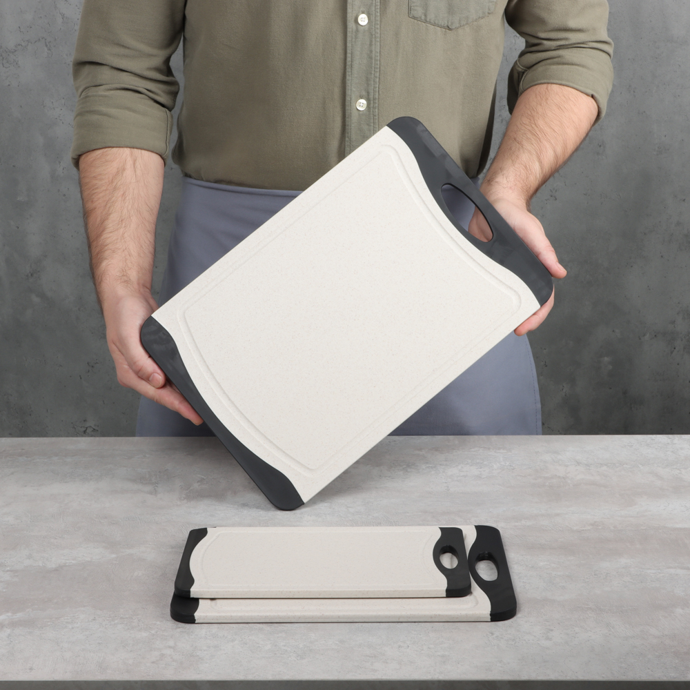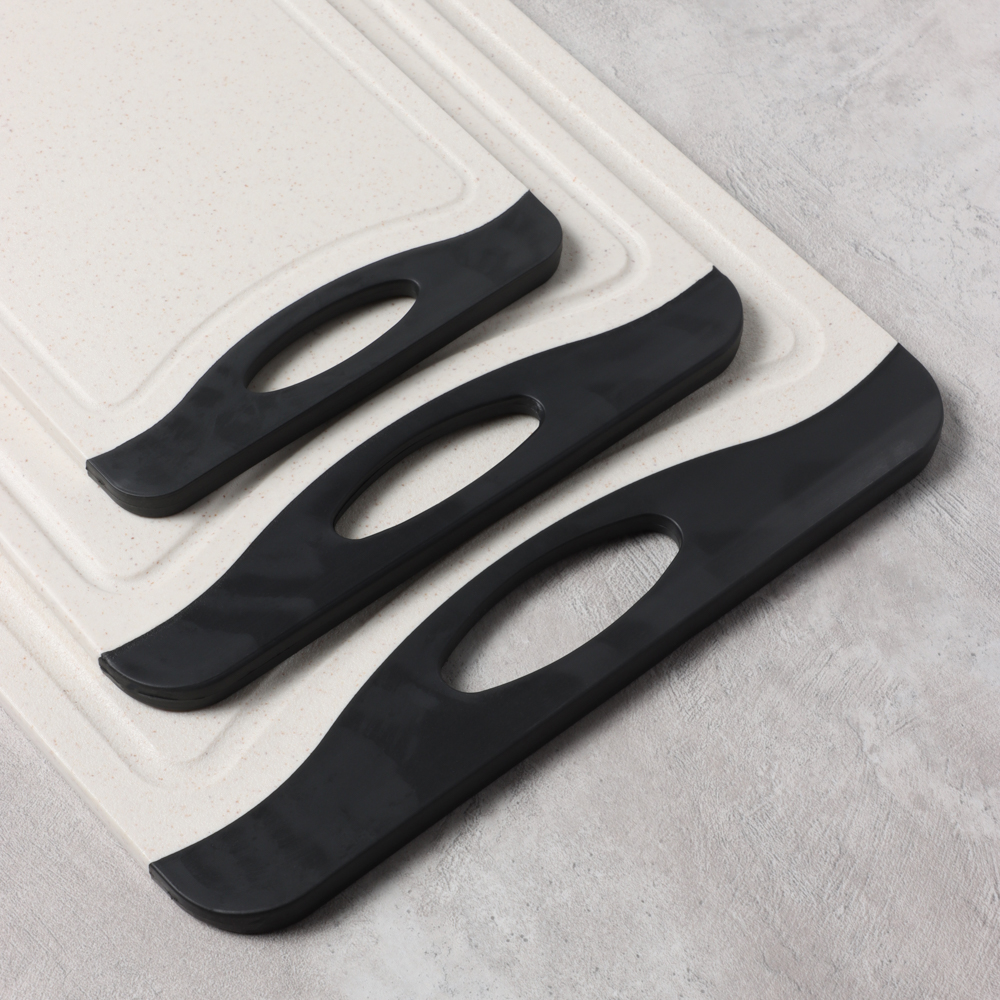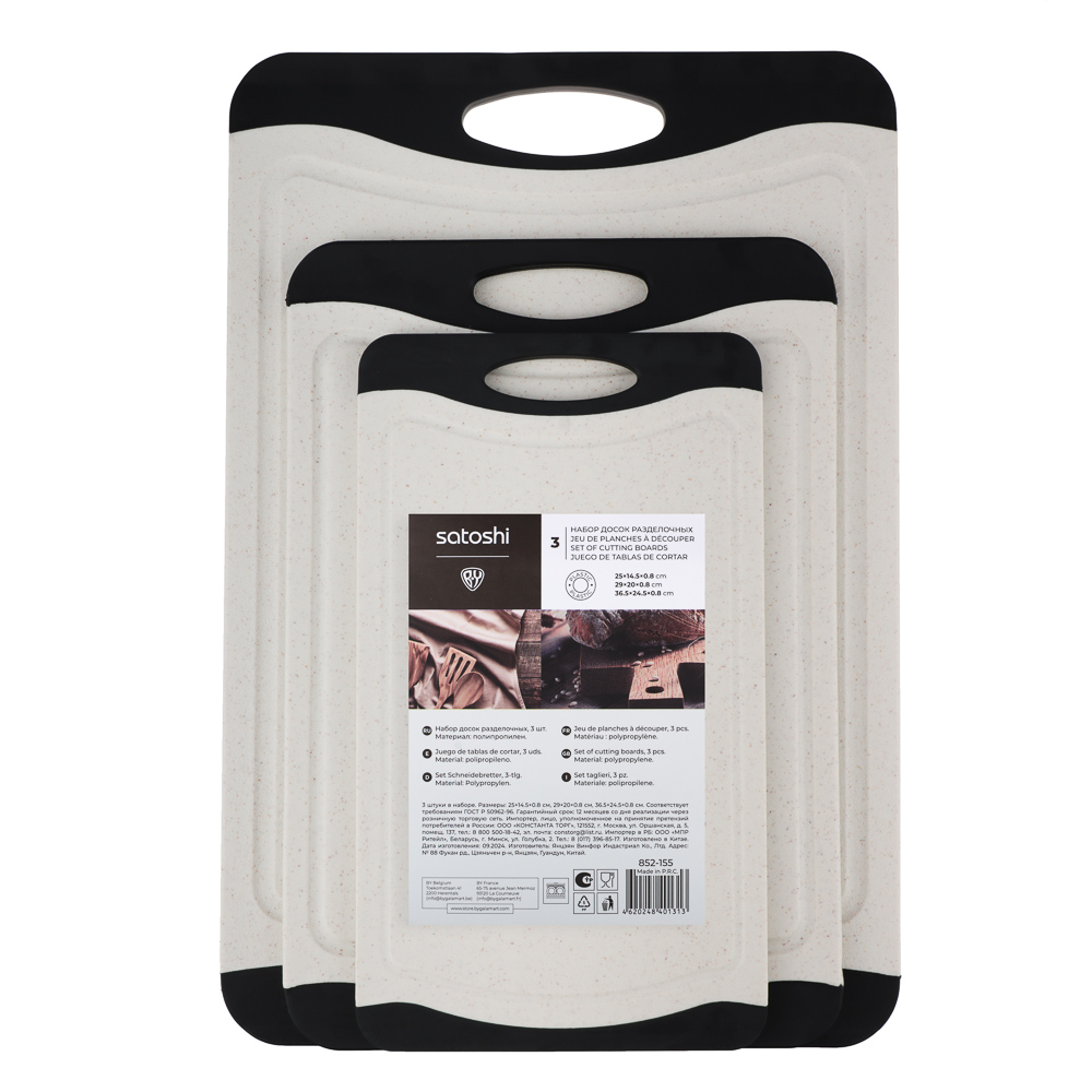 Набор разделочных досок SATOSHI «Женева» – это комплект из 3-х пластиковых досок с ручками разных размеров в едином дизайне. Размеры досок: 36,5х24,5х0,8 см, 29х20х0,8 см и 25х14,5х0,8 см. Доски выполнены в контрастных оттенках светло-бежевого и черного, смотрятся привлекательно, поэтому станут прекрасным дополнением интерьера кухни. Отличаются высокой прочностью, не гнутся и не теряют форму с течением времени. Не скользят по поверхностям. Подходят для разделки и нарезки любых продуктов. Легко моются без образования неприятного запаха. Не изнашивают режущую кромку ножей.