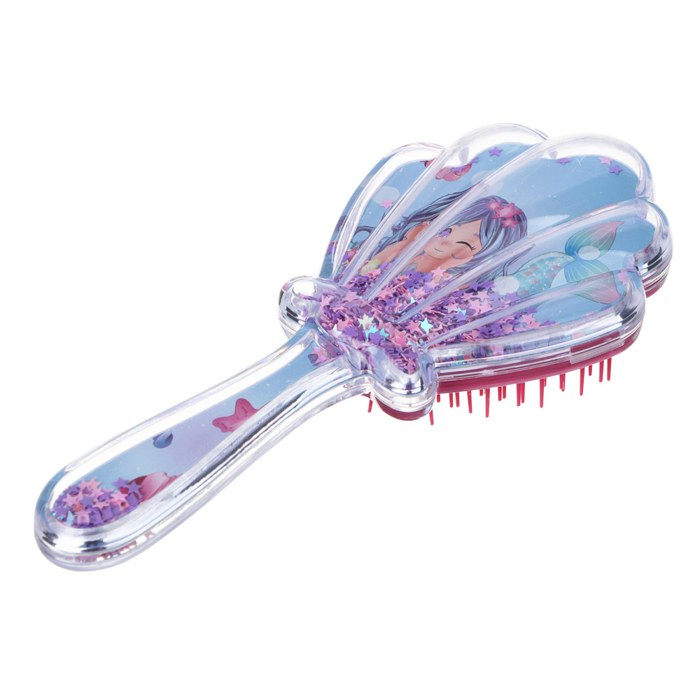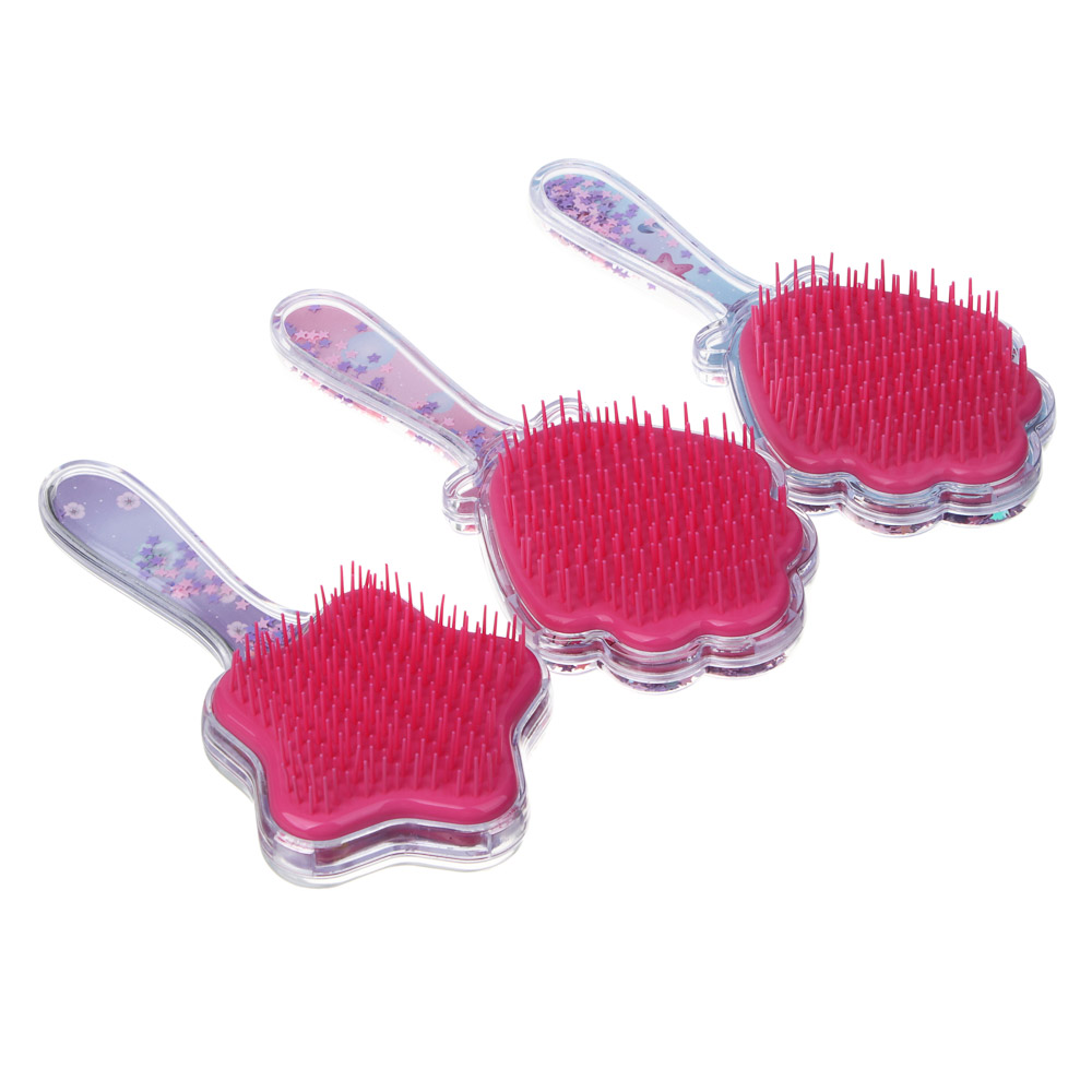 Детская массажная расческа ЮНИLOOK 19х9 см/17х9 см из пластика – это яркий привлекательный аксессуар для расчесывания волос. Пластиковая щетина отлично справляется с запутавшимися прядями, бережно расчесывает и оказывает массажный эффект на кожу головы без травматизации. Стильный дизайн в виде раковины или морской звезды с изображением русалки и блестками непременно понравится девочке, поэтому ребенок будет с удовольствием ухаживать за своими волосами и делать себе модные прически. 3 дизайна в ассортименте.