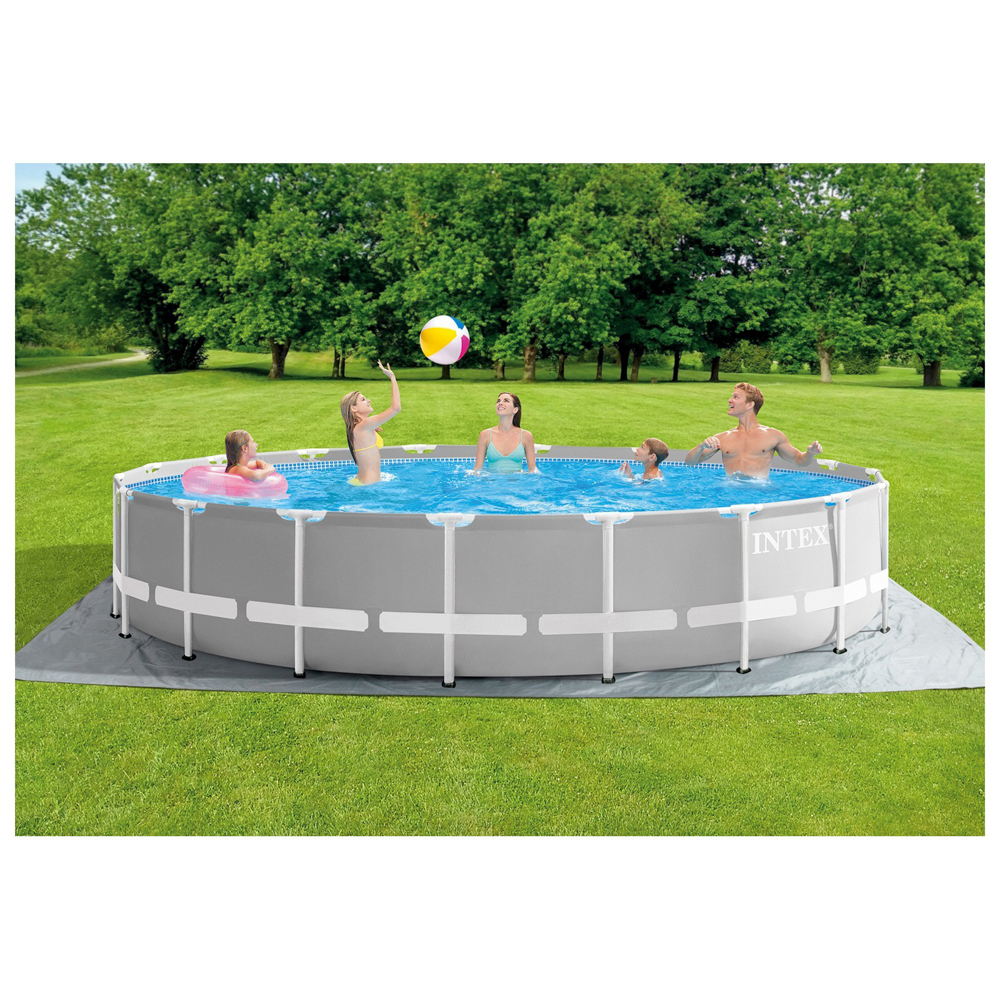 Каркасный призматический бассейн INTEX. Подходит для детей и взрослых. Его ставят на даче или участке загородного дома. Прочный: стенки бассейна трехслойные - 2 слоя плотного винила и слой полиэстера. У бассейна усиленный стальной каркас с опоясывающей лентой из полипропилена: конструкция выдерживает одновременное нахождение в бассейне нескольких человек. Легко устанавливать: не нужно специально готовить грунт, нужна только ровная площадка. Каркасный бассейн комплектуется насосом-фильтром для очистки воды от грязи производительностью 5678 л/ч. Бассейн имеет удобный сливной клапан, через который можно аккуратно слить воду, а, присоединив садовый шланг, полить при этом еще и садовую растительность. Лестница для бассейна 122 см легко собирается, имеет съемные ступени, изготовлена из стали с влагозащищенным покрытием. Ступеньки сделаны из усиленного ABS-пластика. Тент предохраняет от попадания в него листвы, мусора, дождя. Ночью защитит от излишнего остывания и испарения воды.