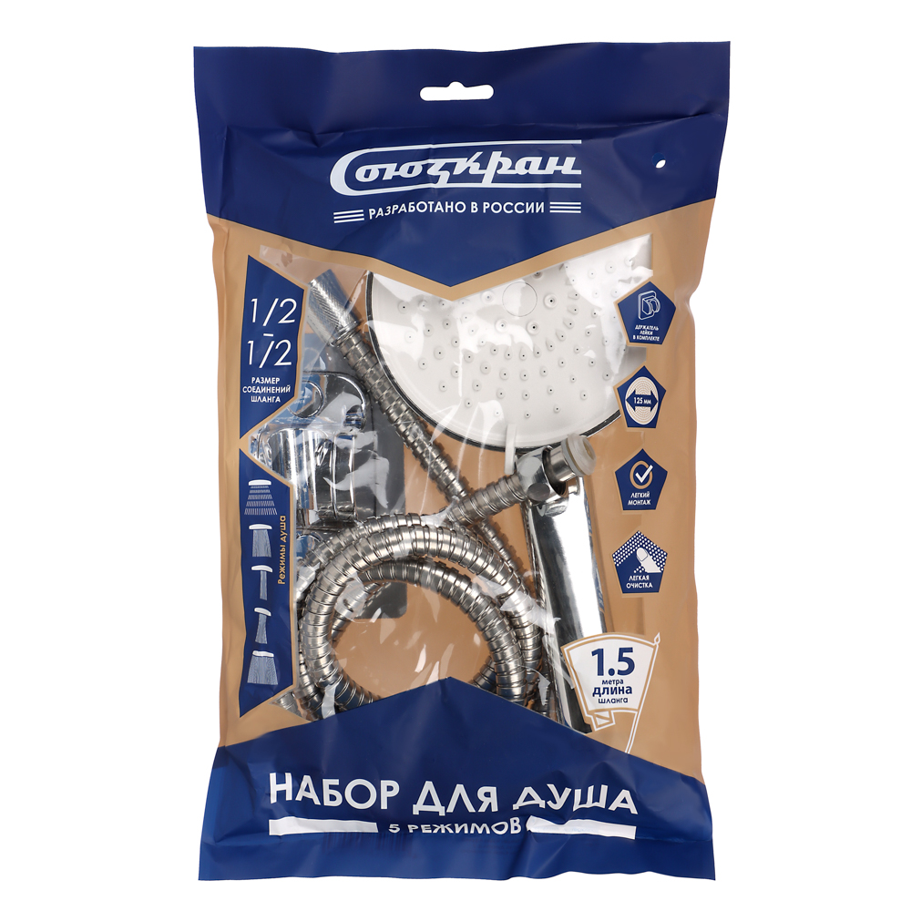 Набор для душа СоюзКран включает лейку диаметром 125 мм с 5 режимами работы, обеспечивающими комфортное регулирование напора воды. Шланг длиной 150 см изготовлен из прочного материала, устойчивого к перекручиванию, что гарантирует удобство использования. В комплекте также предусмотрен держатель для душа, который легко устанавливается и надежно фиксирует лейку. Набор сочетает в себе практичность и удобство для ежедневных водных процедур.