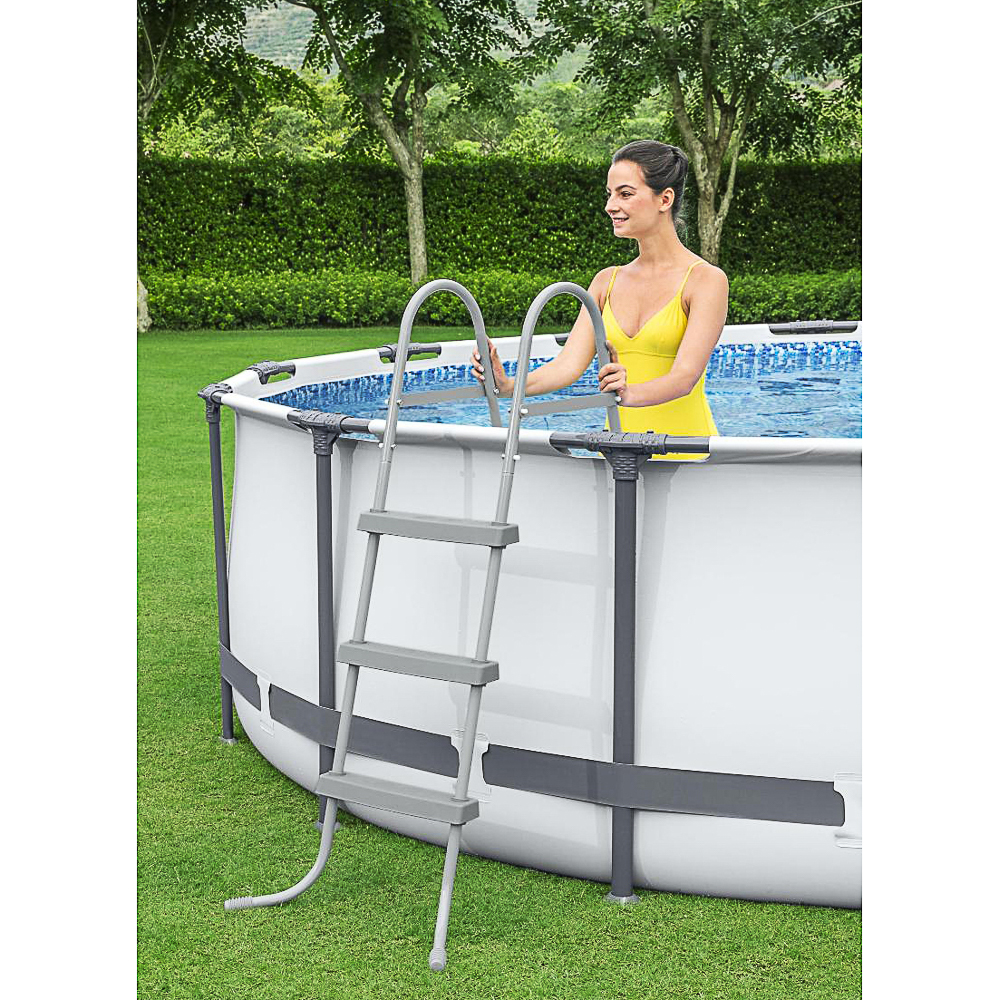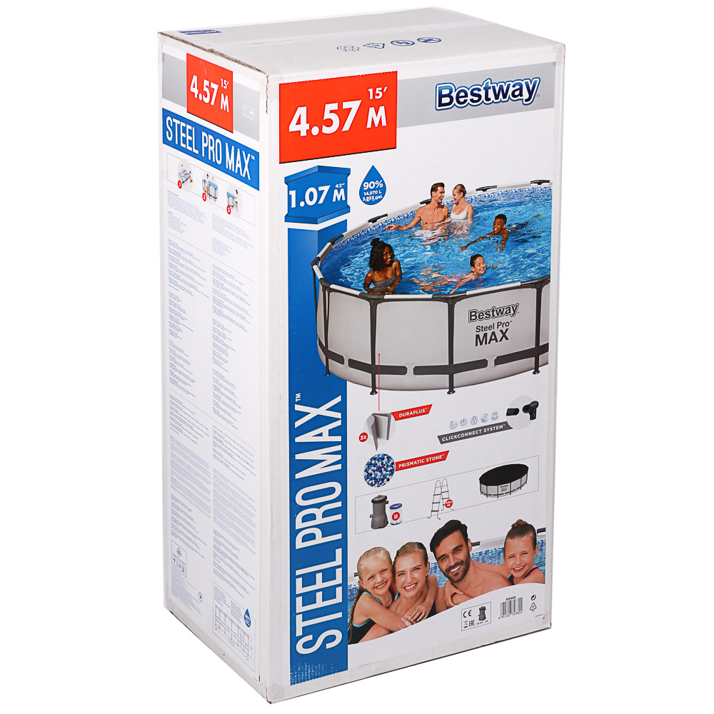 Каркасный бассейн BESTWAY — это готовый комплект для комфортного семейного отдыха на природе. Чтобы использовать бассейн, вам не придется покупать дополнительные принадлежности и оборудование, ведь в набор входит все необходимое: чаша, лестница, фильтр-насос и защитный тент. Рисунок внутренней поверхности бассейна имитирует природную гальку. Чаша бассейна выполнена из высококачественного трехслойного ПВХ: два слоя из плотного винила, еще один — из полиэстера высокой прочности. Надежная конструкция каркаса изготовлена из нержавеющего металла и имеет специальное покрытие, которое защищает поверхность от ржавчины, гарантирует высокую надежность и долговечность всей конструкции. Лестница с противоскользящими ступенями обеспечивает удобное пользование бассейном, а для поддержания чистоты воды на протяжении всего периода пользования бассейн оснащен картриджным фильтр-насосом, осуществляющим постоянную циркуляцию и фильтрацию воды. Его производительность составляет 3028 литров в час.