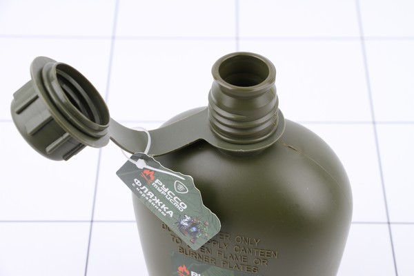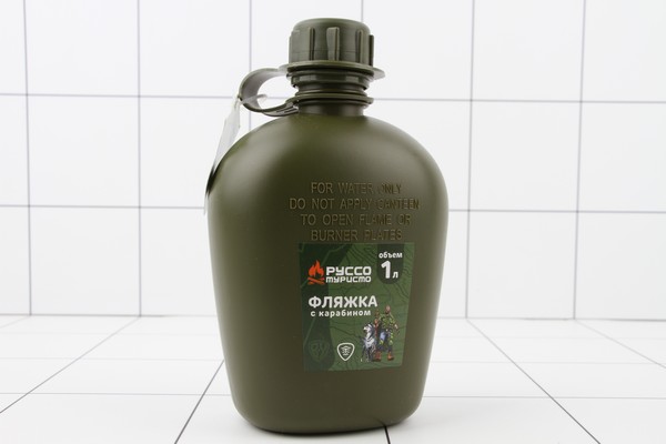 Пластиковая фляжка объемом 1 литр для походов или пикников. Изготовлена из качественных материалов с герметично закрывающейся крышкой.