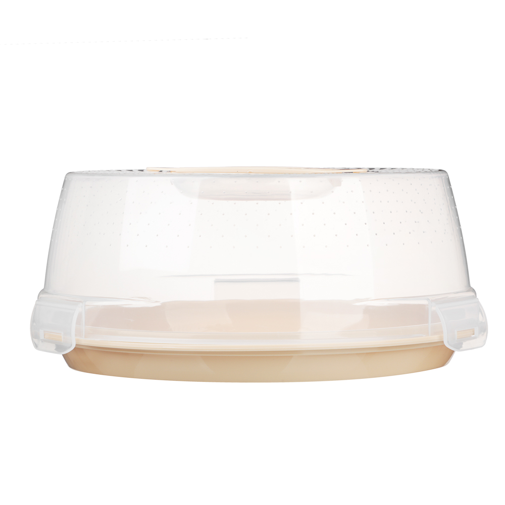 Блинница-тортовница, диаметр 28,5 см – это пластиковая посуда с прозрачной крышкой для хранения блинов, оладьев, тортов или пирожных. Имеет удобную конструкцию с плотной крышкой с застежками-защелками, которая не соскальзывает и не смещается при перемещении. Отверстия в крышке обеспечивают вентиляцию, не давая продуктам задохнуться и в то же время препятствуют заветриванию и высыханию, сохраняя кондитерские изделия свежими на протяжении всего срока хранения.