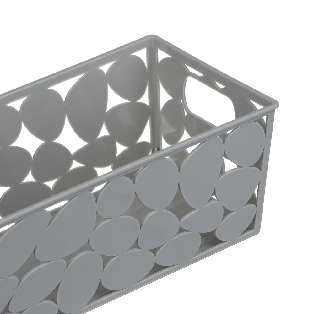 Корзинка для хранения VETTA — это универсальный аксессуар для организации пространства и поддержания порядка. Она имеет размеры 25,5x10x7,5 см и представлена в двух цветах: серо-белом и молочном. Корзинка изготовлена из высококачественного пластика, что обеспечивает её прочность, долговечность и лёгкость в уходе. Она идеально подходит для хранения различных предметов, таких как канцелярские принадлежности, ключи, игрушки, одежда, косметика и другие аксессуары.
