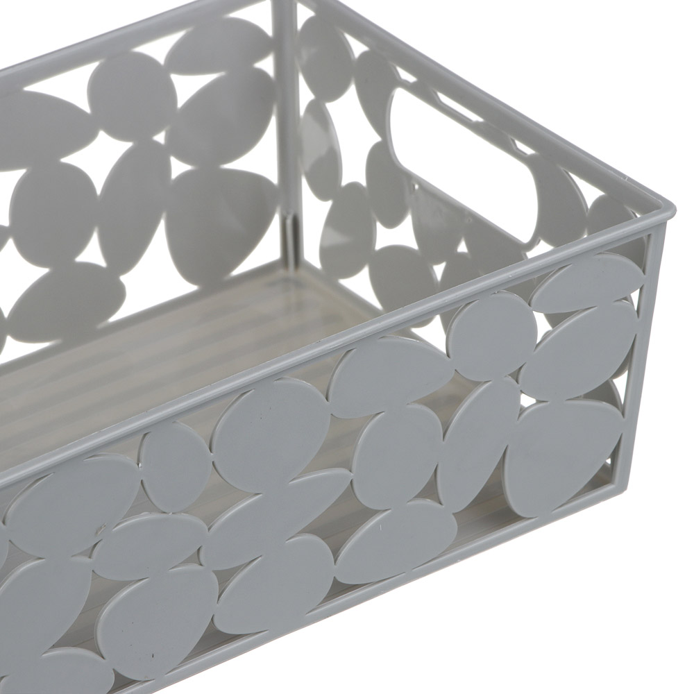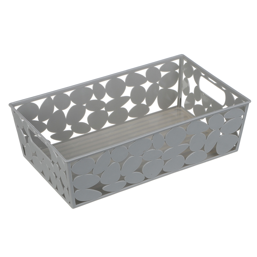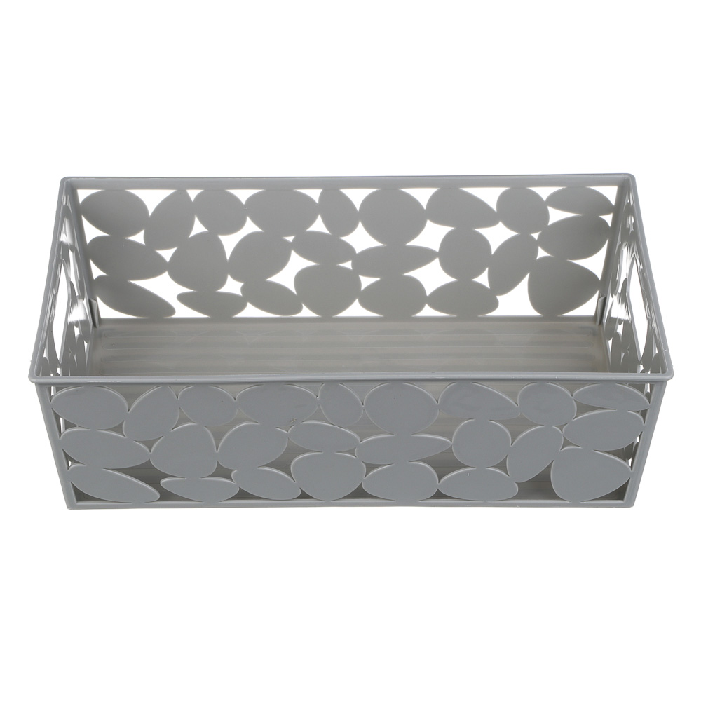 Корзинка для хранения VETTA, 26x15x7,5 см из пластика с прорубными ручками – это компактный удобный контейнер для хозяйственных мелочей. Подходит для хранения швейных принадлежностей, аксессуаров, косметики и уходовых средств, а также для салфеток, мешков для мусора и многого другого. Не боится влаги, поэтому его можно расположить в ванной или под раковиной. Вентилируемый корпус не накапливает влагу, поэтому в корзине не образуется плесень. Легко моется, имеет приятный дизайн, который впишется в любой интерьер.
