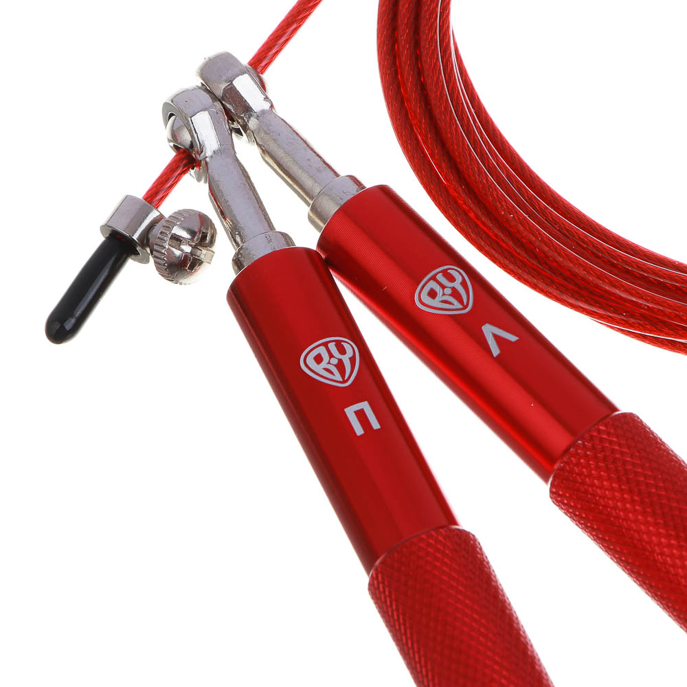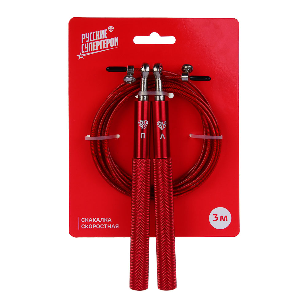 Скоростная скакалка BY «Русские Супергерои», длина 3 метра предназначена для пользователя ростом 175-183 см. Тонкий легкий трос толщиной 2,8 мм из ПВХ обеспечивает быстрый темп прыжков. Соединение троса с рукоятками выполнено таким образом, чтобы трос свободно вращался, не закручиваясь и не спутываясь. Облегченные рукояти из стали и алюминия с ребристой поверхностью не выскальзывают из рук, чтобы ничто не отвлекало спортсмена во время тренировки. Рукоятки имеют маркировку для правой и левой руки.