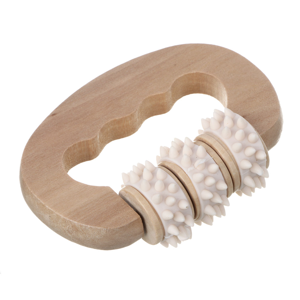 Массажный роллер 11х8х3,5 см SILAPRO «Max» в деревянном корпусе с тремя массажными роликами – это компактное приспособление для проработки проблемных зон тела, а также для снятия тонуса, напряжения и болевых ощущений в мышцах и суставах. Роллер эффективно воздействует на рефлекторные точки, способствует приливу крови к зоне воздействия, обеспечивая питание и восстановление тканей и мышц. Регулярное применение восстанавливает подвижность суставов, дарит чувство бодрости и снижает скованность движений. Изделие имеет удобную рукоять для комфортного использования.