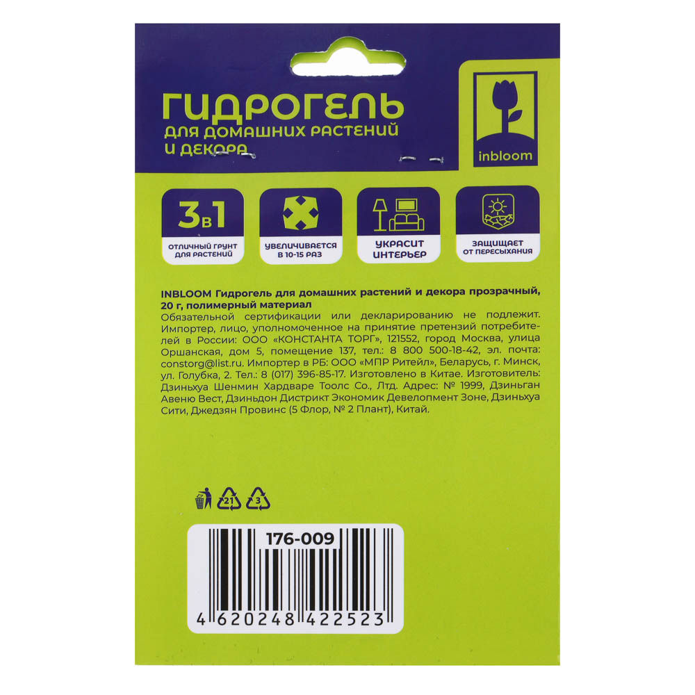 Гидрогель для домашних растений INBLOOM — идеальный выбор для поддержания здоровья ваших растений. Прозрачный полимерный материал активно удерживает влагу, что помогает растениям получать необходимую жидкость даже в периоды засухи. Гидрогель можно использовать для декора. Он не только практичен, но и придает эстетический вид вашему интерьеру, создавая эффектное оформление.