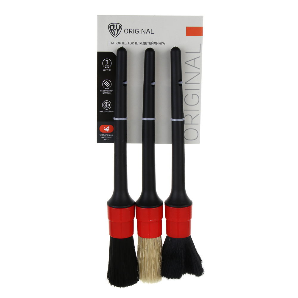 Набор щёток для детейлинга BY — идеальное решение для эффективной и бережной очистки труднодоступных мест. В комплект входят три щётки с разной жёсткостью щетины, что позволяет подобрать оптимальный вариант для каждой задачи. Щетина изготовлена из высококачественного материала — свиной шерсти, которая обладает отличной эластичностью и мягкостью. Благодаря этому щётки не царапают поверхности и обеспечивают деликатное воздействие на лакокрасочное покрытие, стёкла, пластик и другие материалы. Эргономичная ручка щёток выполнена из полипропилена, который не скользит в руке и обеспечивает комфортное использование. Это особенно важно при длительной работе или очистке сложных участков.