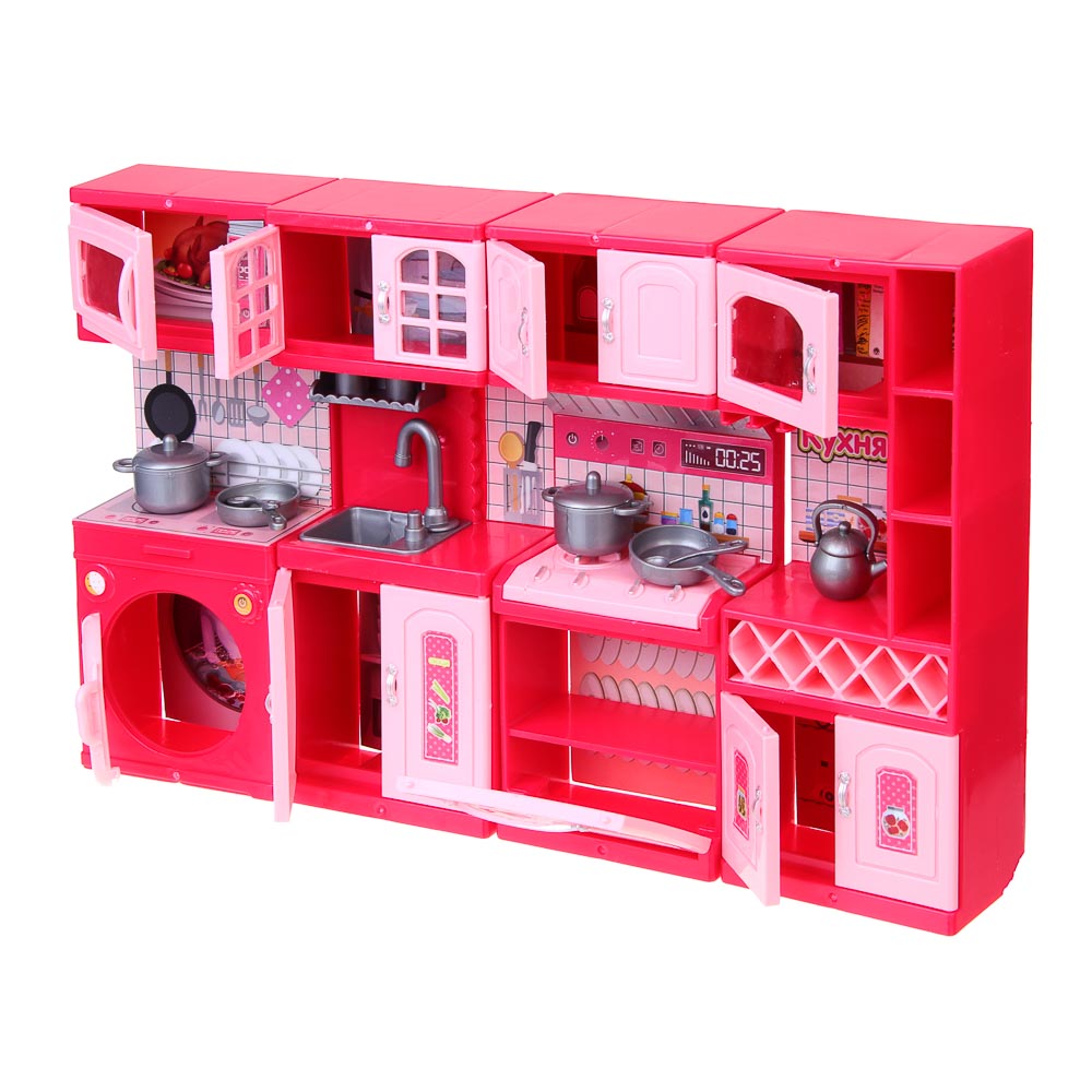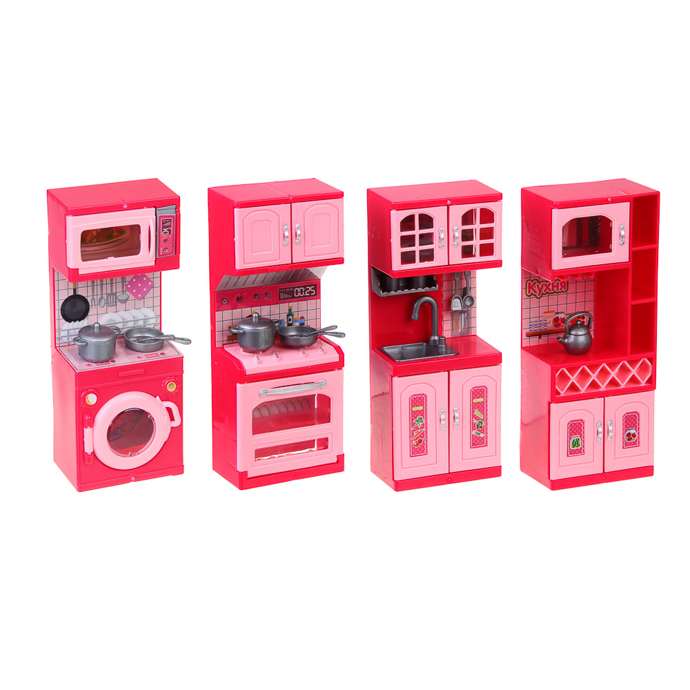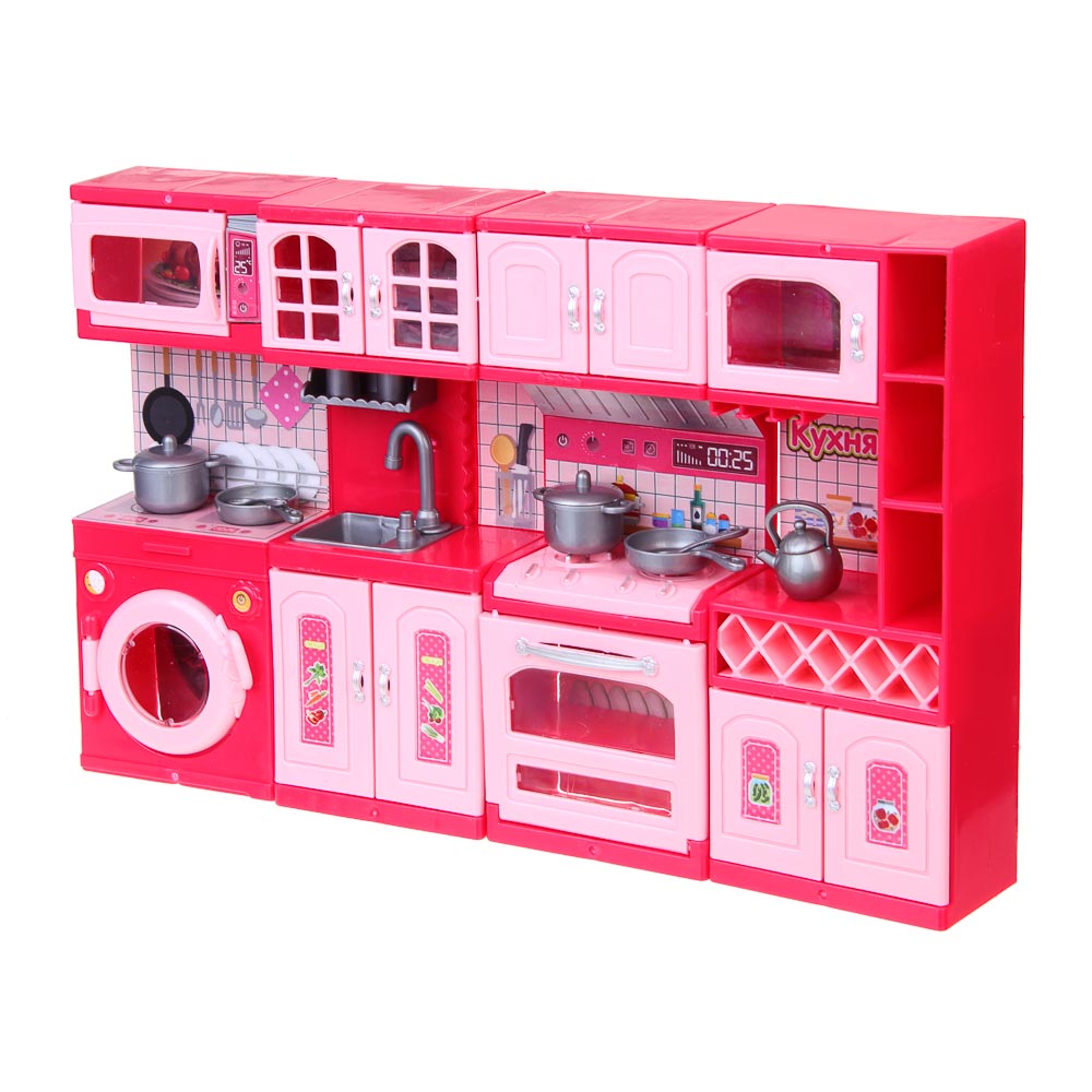 Мебель для кукол ИГРОЛЕНД, кухня с аксессуарами – это игрушечный кухонный гарнитур для девочки, который поможет обустроить кухню своей мечты и станет частью воображаемого игрового мира. Содержит все то, что имеется на настоящей кухне: холодильник, плиту, мелкую бытовую технику, посуду для приготовления и даже стиральную машину. Состав набора в ассортименте. В коллекции 4 варианта мебельных гарнитуров. Привлекательный дизайн в ярком цвете понравится ребенку, а игра в куклы превратится в увлекательный интерактивный процесс. Игрушка из пластика устойчива к механическим воздействиям, не содержит острых краев и предметов и безопасна для ребенка. Рекомендуемый возраст – старше 3-х лет.