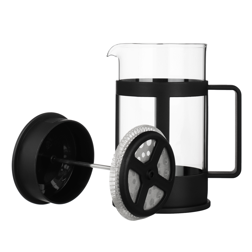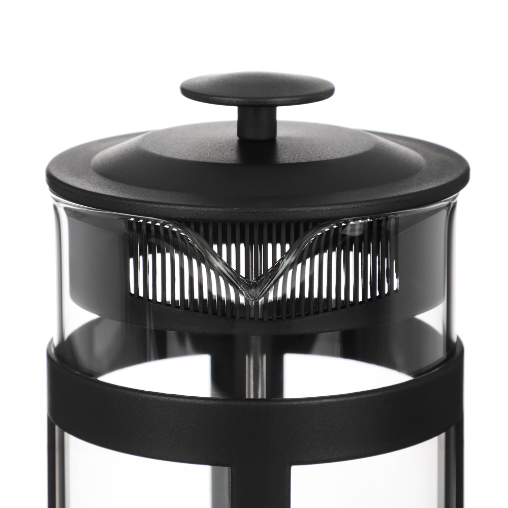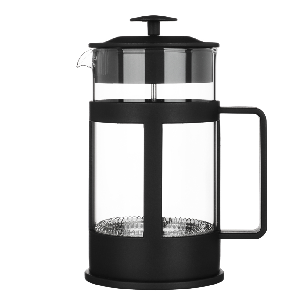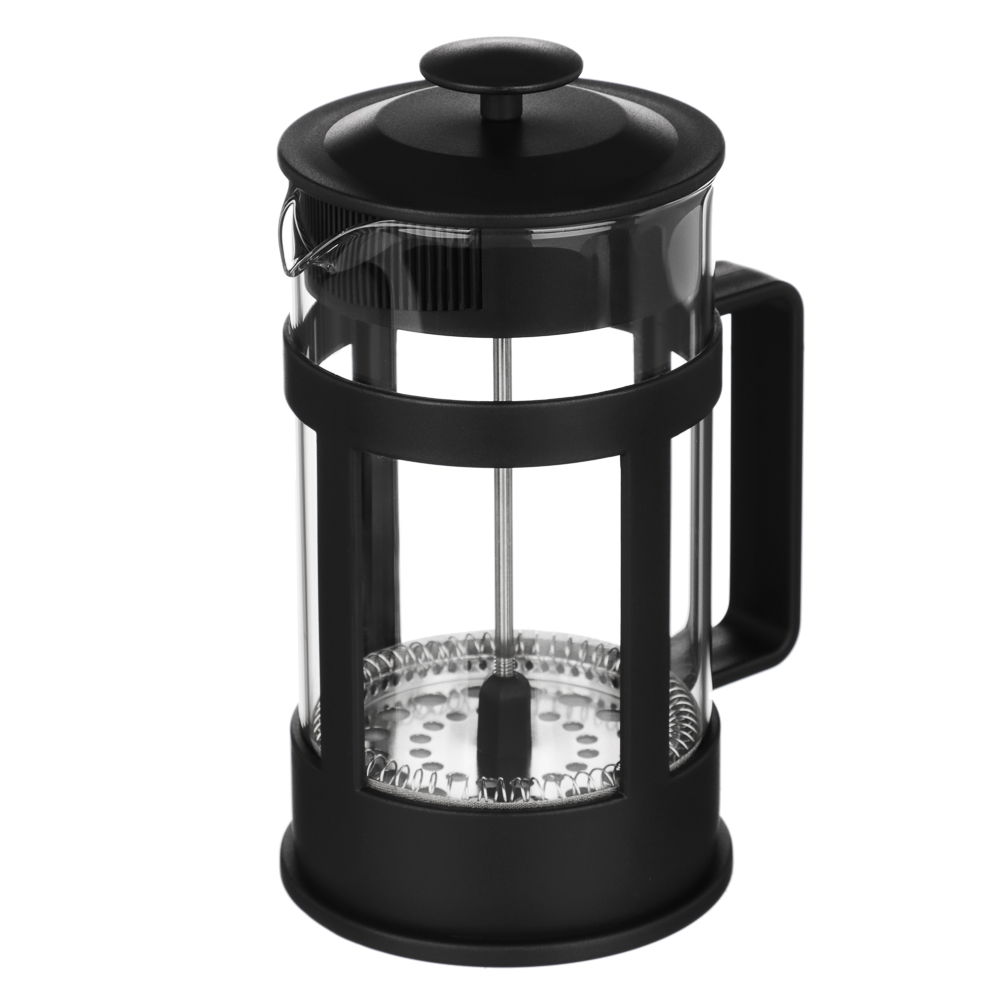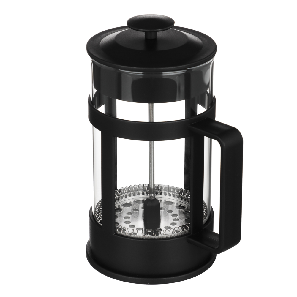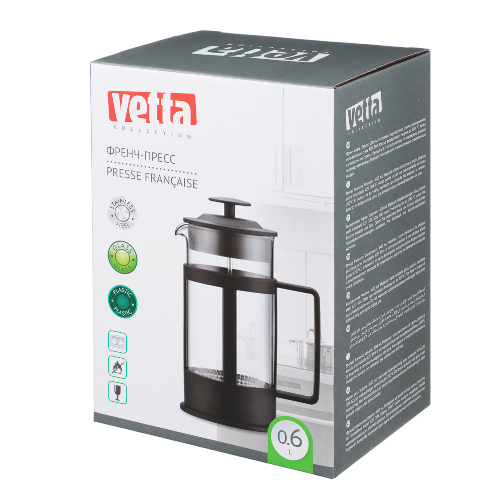 Элегантный и практичный френч-пресс VETTA Мелана объемом 600 мл станет вашим незаменимым спутником в мире ароматного кофе или чая. Сочетание жаропрочного стекла, которое выдерживает нагрев до 200°С, и стильного черного пластикового корпуса создает современный и привлекательный дизайн. Надежный поршень-фильтр из нержавеющей стали гарантирует чистый и насыщенный вкус напитка, а удобная пластиковая ручка обеспечивает комфортное использование. Имеется сливной фильтр в крышке.
