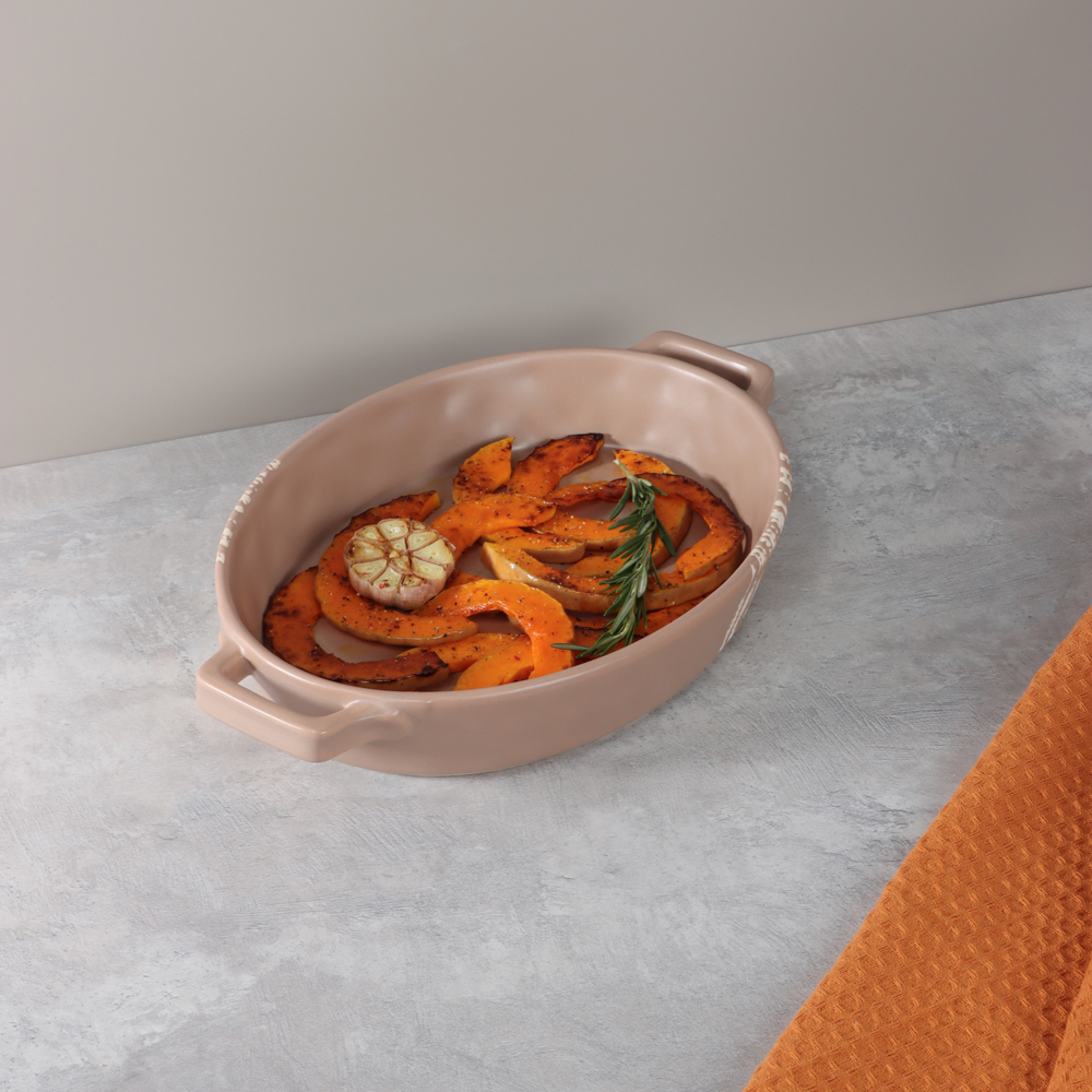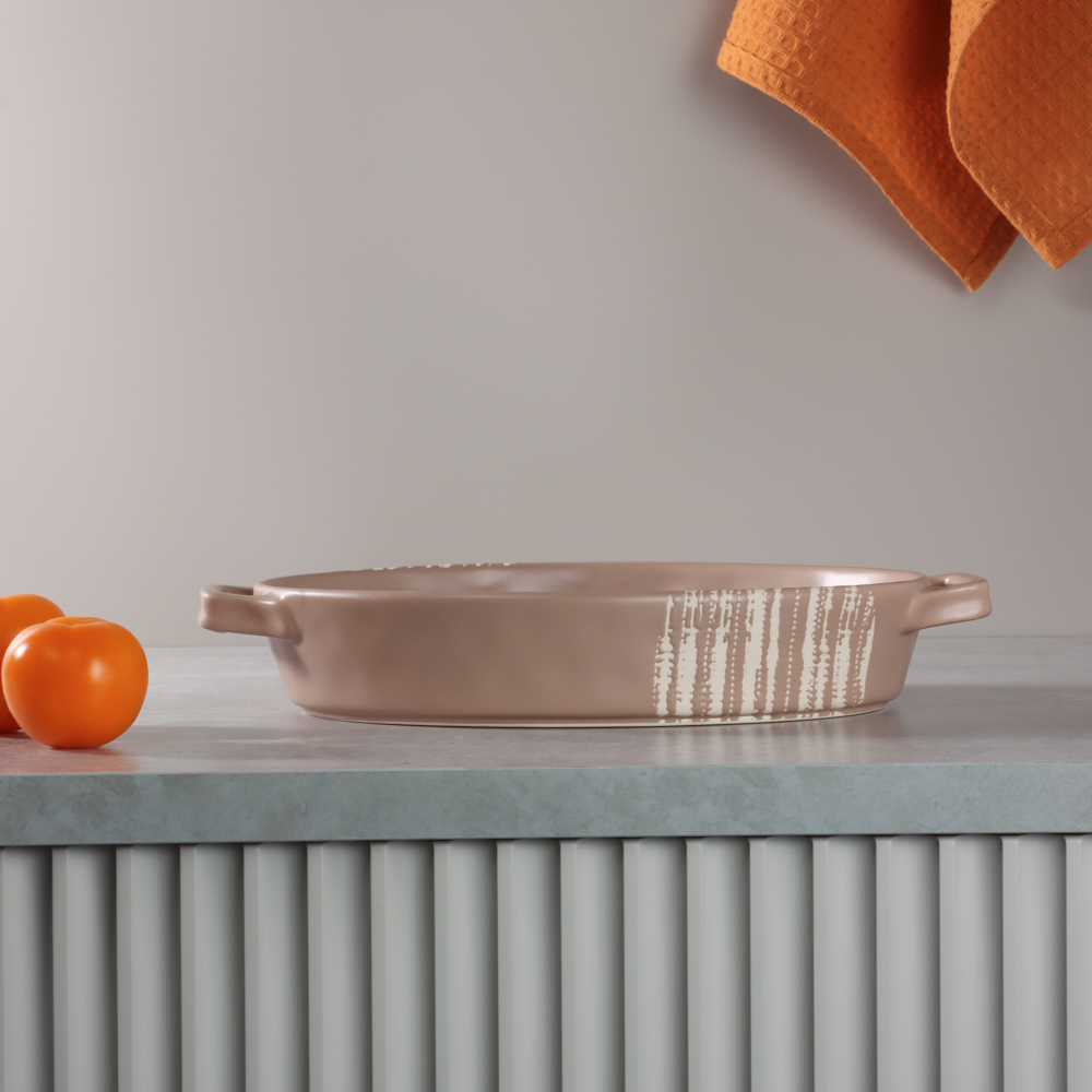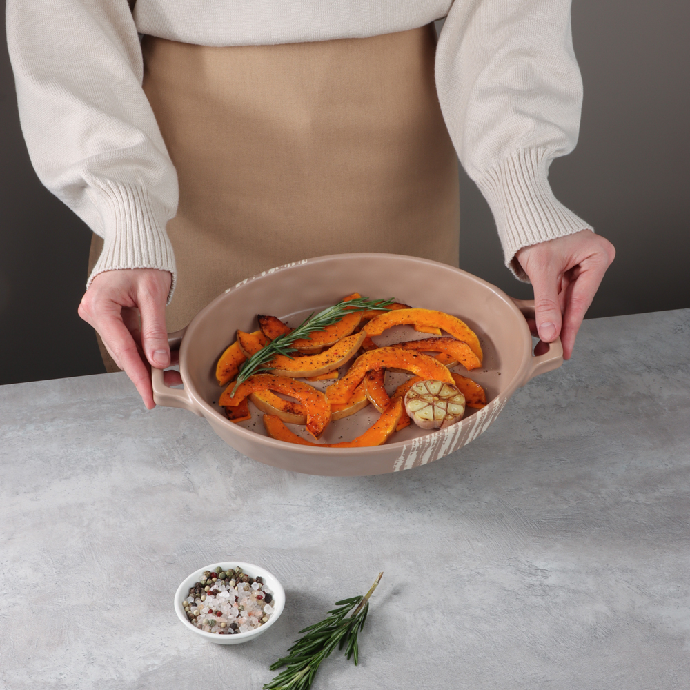Добавьте теплоты и уюта вашему столу с овальной формой для запекания и сервировки MILLIMI! Очаровательная бежевая форма из высококачественной керамики станет вашим любимым помощником в приготовлении и подаче вкуснейших блюд. Ее компактный размер 31х20,5х5 см и объем 1,1 л идеально подходят для запеканок, маленьких порций мяса или овощей, а также для изысканных десертов. Удобные ручки обеспечивают безопасное обращение, а нежный бежевый цвет придает блюду особый шарм. Порадуйте себя и близких, подавая блюда прямо в этой элегантной форме – от духовки к вашему столу, без лишних усилий! MILLIMI – это не просто посуда, это создание атмосферы!