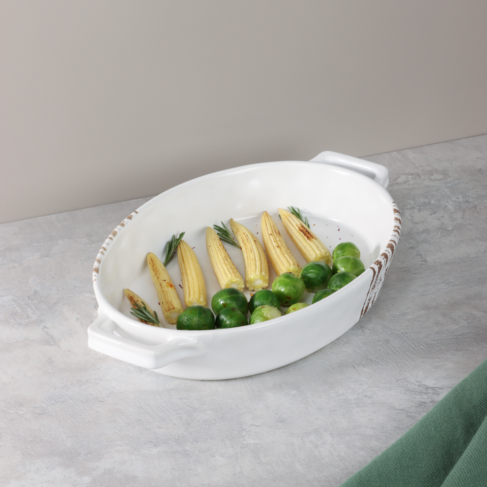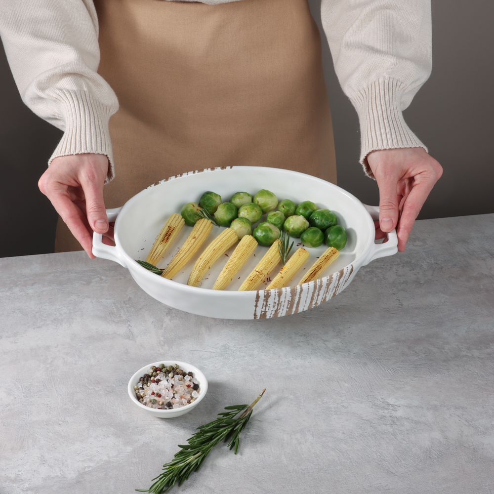 Создайте незабываемые кулинарные впечатления с овальной формой для запекания и сервировки MILLIMI! Изготовленная из высококачественной керамики, эта элегантная форма размером 31х20,5х5 см и объемом 1,1 л идеально подходит для приготовления и подачи различных блюд – от сочных запеченных овощей до изысканных десертов. Удобные ручки обеспечивают безопасное и комфортное использование, а классический белый цвет добавляет изящества вашему столу. Забудьте о перекладывании готового блюда – с MILLIMI вы можете подавать его прямо из духовки, впечатляя гостей своим вкусом и кулинарными талантами. Превратите каждый ужин в праздник с MILLIMI!