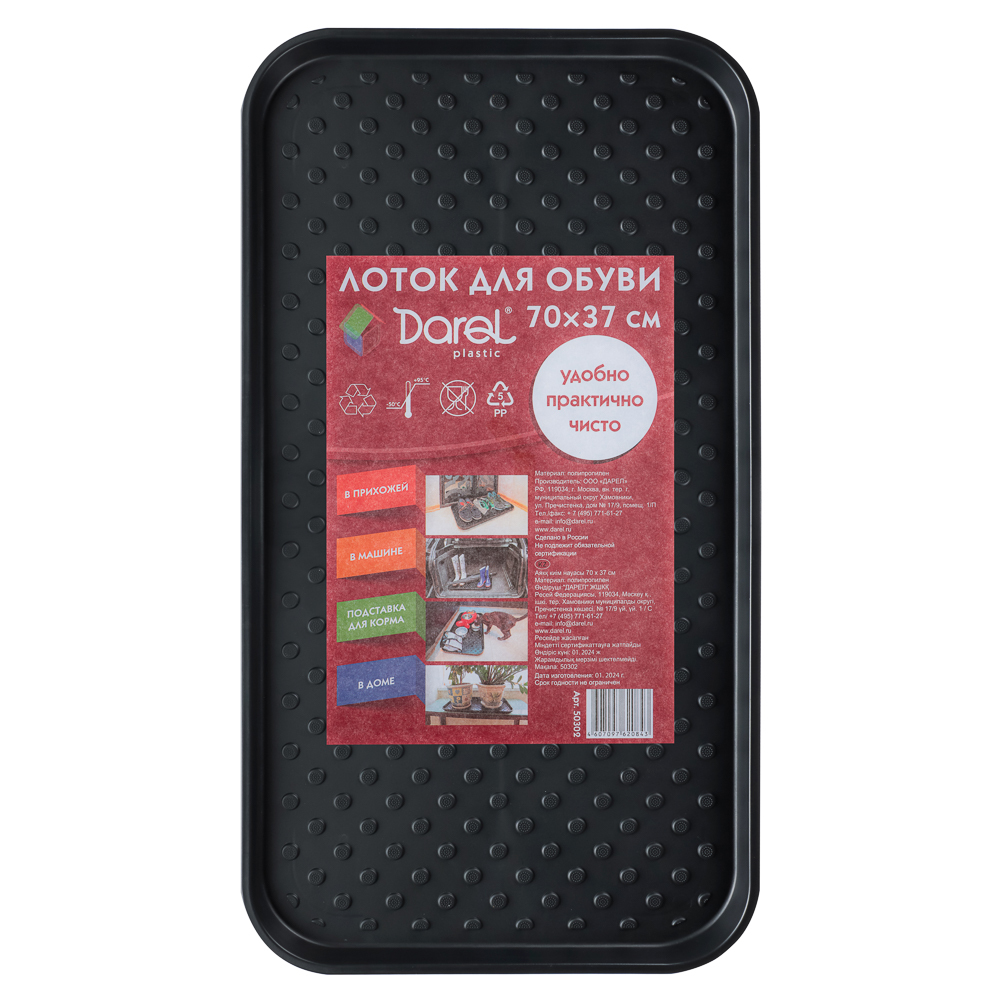 Лоток для обуви большой 70х37 см, пластик, черный – идеальное решение для организации пространства в вашей прихожей. Вместительный лоток обеспечит удобное хранение обуви всех членов семьи, сохраняя чистоту и порядок в вашем доме.Изготовлен из прочного пластика, что гарантирует долговечность и надежность использования. Размер 70х37 см позволяет разместить большое количество обуви, экономя место и обеспечивая легкий доступ к ней. Черный цвет лотка придает ему современный и стильный вид, который легко впишется в любой интерьер. Благодаря своей универсальности, он станет не только практичным аксессуаром, но и элементом декора вашей прихожей.