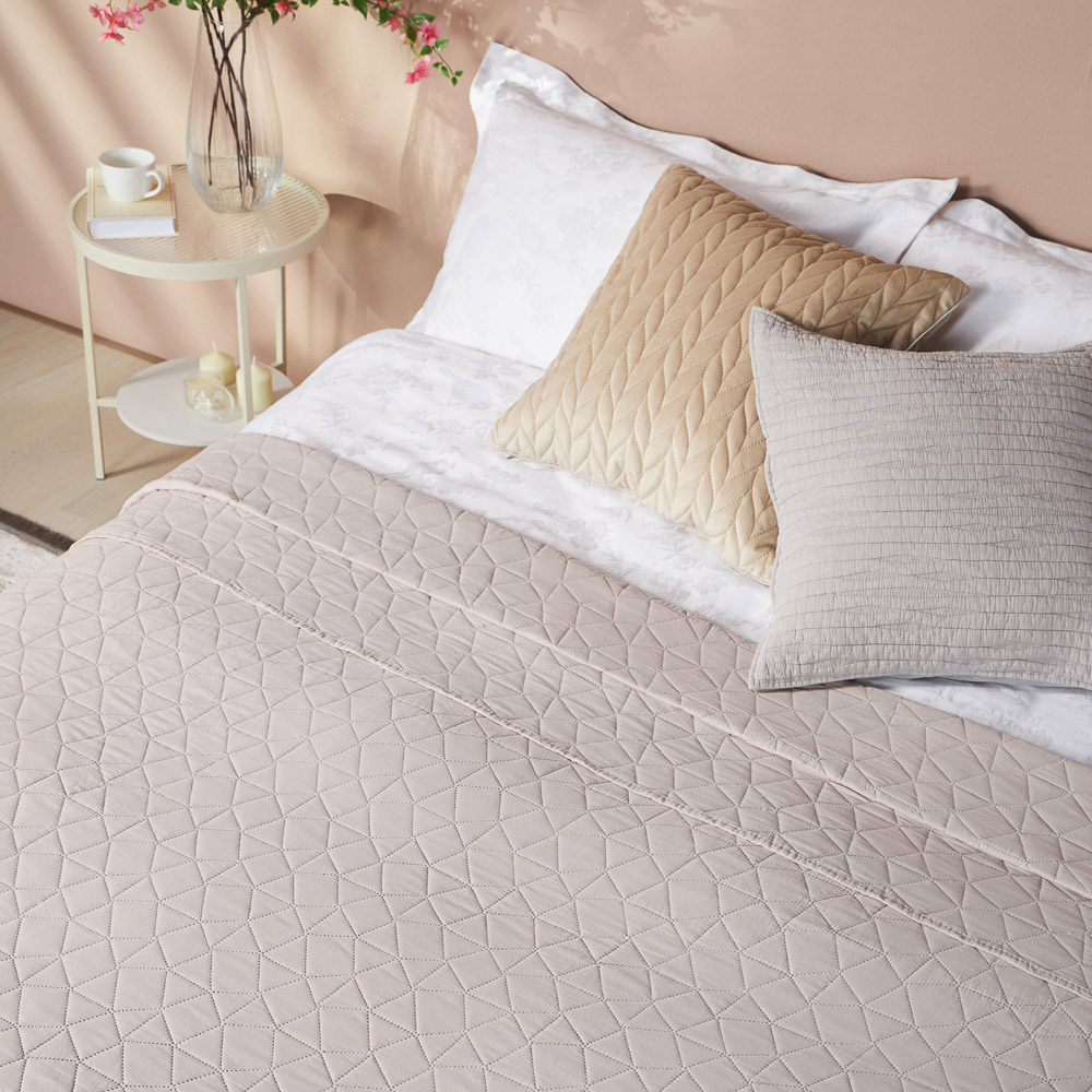 Покрывало с эффектом вареного хлопка PROVANCE Хейзел размером 220х240 см придаст интерьеру спальни индивидуальность, неповторимый стиль и будет способствовать созданию уютной атмосферы для отдыха и сна. Оригинальная фактура с геометрическим узором сразу обращает на себя внимание, выделяя спальное место как центральный объект в комнате. Изделие из 100% полиэстера устойчиво к истиранию, не рвется и не растягивается, сохраняет первоначальный цвет после стирок. Бежевый цвет будет актуален в любом интерьерном стиле. Покрывало компактное в свернутом виде, поэтому не займет много места для хранения.