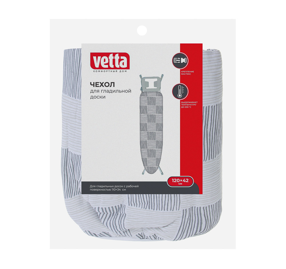 Чехол для гладильной доски VETTA — идеальное решение для вашей рабочей поверхности. Он изготовлен из высококачественного хлопка с подкладкой из синтепона, обеспечивая мягкость и долговечность. Фиксация осуществляется с помощью резинки, а дизайн выполнен в геометрическом стиле. Рабочая температура достигает 200 градусов, а размер рабочей поверхности составляет 110х34 см. Растёжка производится с помощью фастекса, что обеспечивает надёжное крепление и удобство использования.