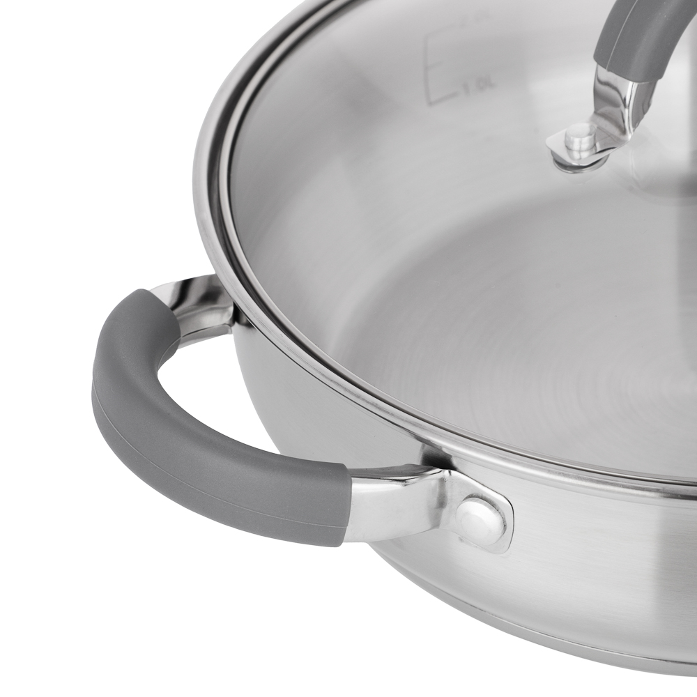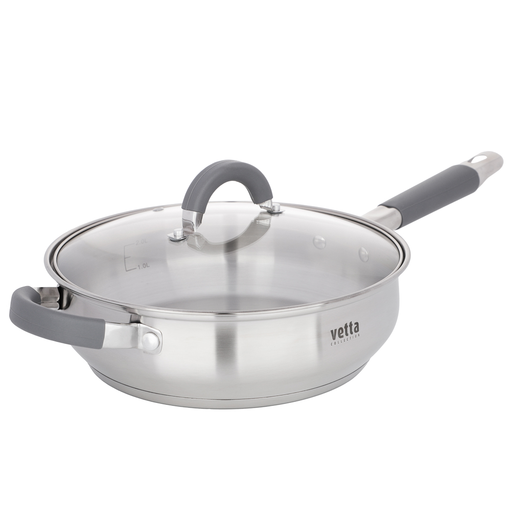 Универсальная сковорода VETTA Вена станет вашим незаменимым помощником на кухне. С диаметром 24 см и вместительностью 3,2 л, сковорода идеально подходит для приготовления разнообразных блюд – от омлета до тушеного мяса. Прочное антипригарное покрытие обеспечит легкое приготовление и чистку, а удобные ручки со специальными силиконовыми вставками защитят ваши руки от ожогов даже при интенсивном нагреве. Стеклянная крышка с силиконовой вставкой на ручке позволит контролировать процесс приготовления, не теряя драгоценного тепла. А благодаря удобной внутренней шкале, вы всегда будете точно знать количество ингредиентов, которые вы добавляете в блюдо. Подходит для всех типов плит, включая индукционные. Сковорода VETTA Вена – это сочетание качества, удобства и стильного дизайна!