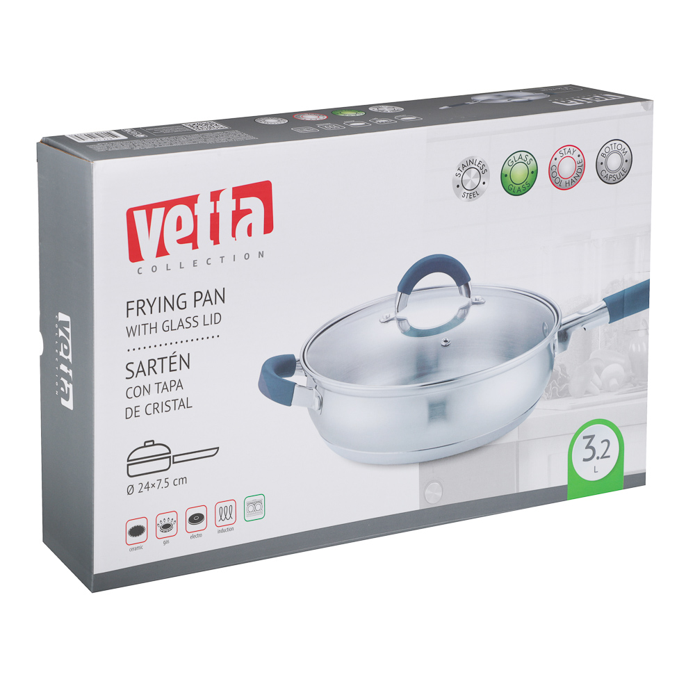 VETTA Вена Сковорода 24х7,5см, 3,2 л., со стекл. крышкой, индукция