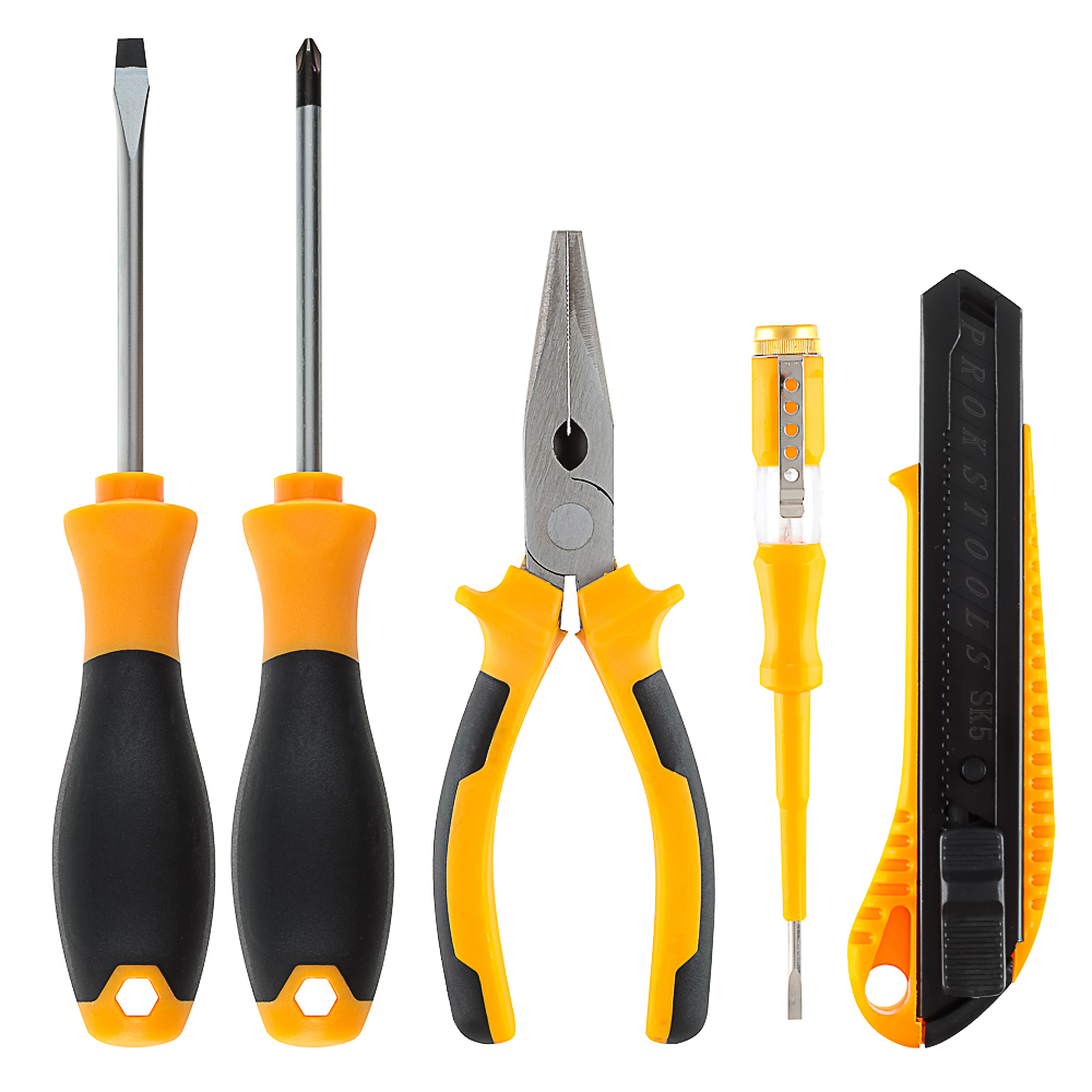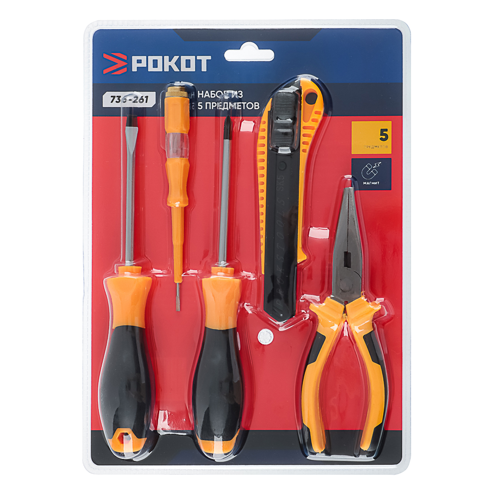 Надежный и многофункциональный набор инструментов РОКОТ – незаменимый помощник для любого электрика! В набор входят пять предметов, которые часто необходимы при электромонтажных работах. Все инструменты изготовлены из высококачественных материалов, обеспечивающих долговечность и надежность в работе. Компактный набор РОКОТ идеально подходит для использования как профессионалами, так и домашними мастерами.