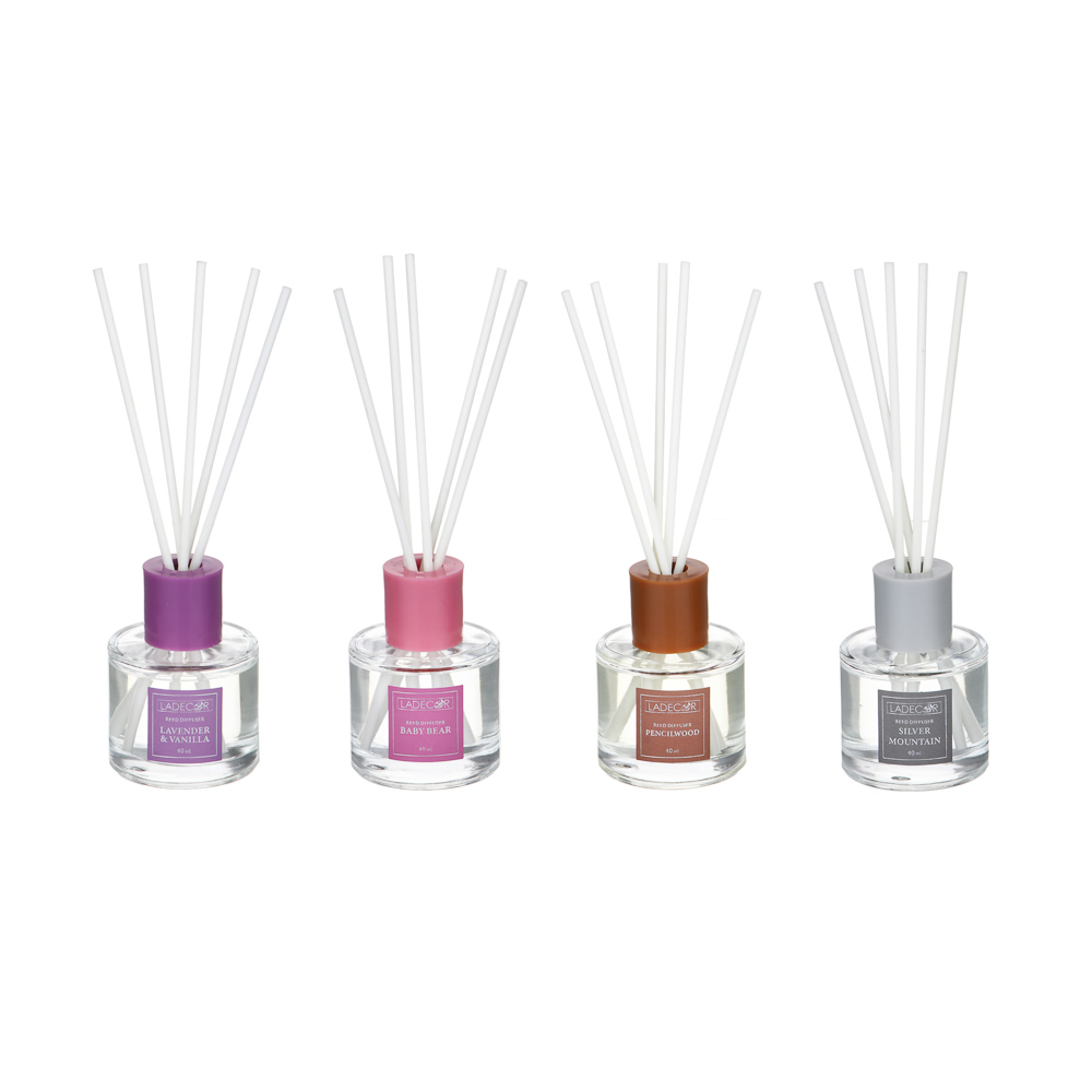 Аромадиффузор с палочками LADECOR объемом 40 мл поможет создать в доме неповторимую атмосферу, наполняя пространство приятным насыщенным благоуханием. Флакон имеет строгий стильный дизайн, который добавит эстетики в интерьер и будет органично сочетаться с другими дизайнерскими элементами декора. Палочки эффективно распространяют аромат и не теряют своих свойств пока эссенция в диффузоре не закончится.