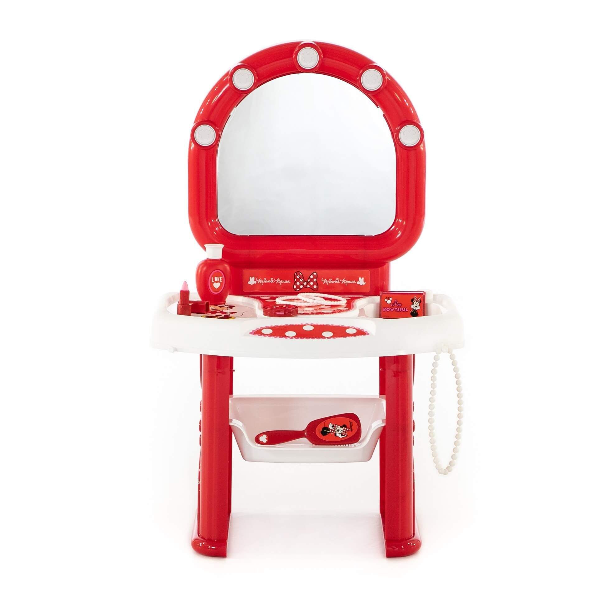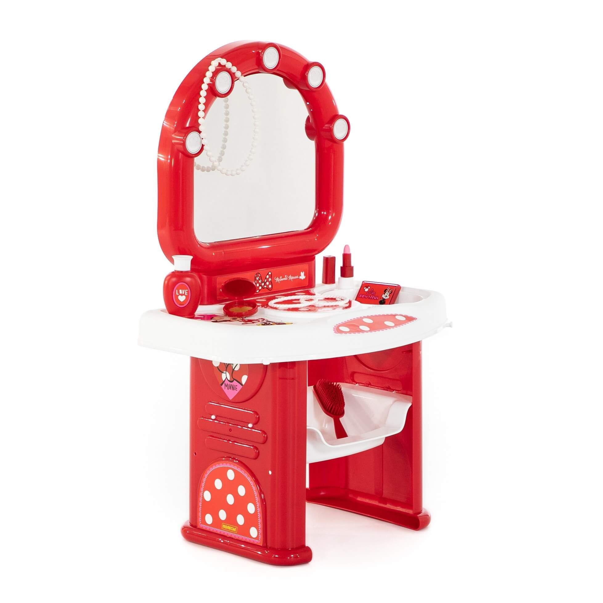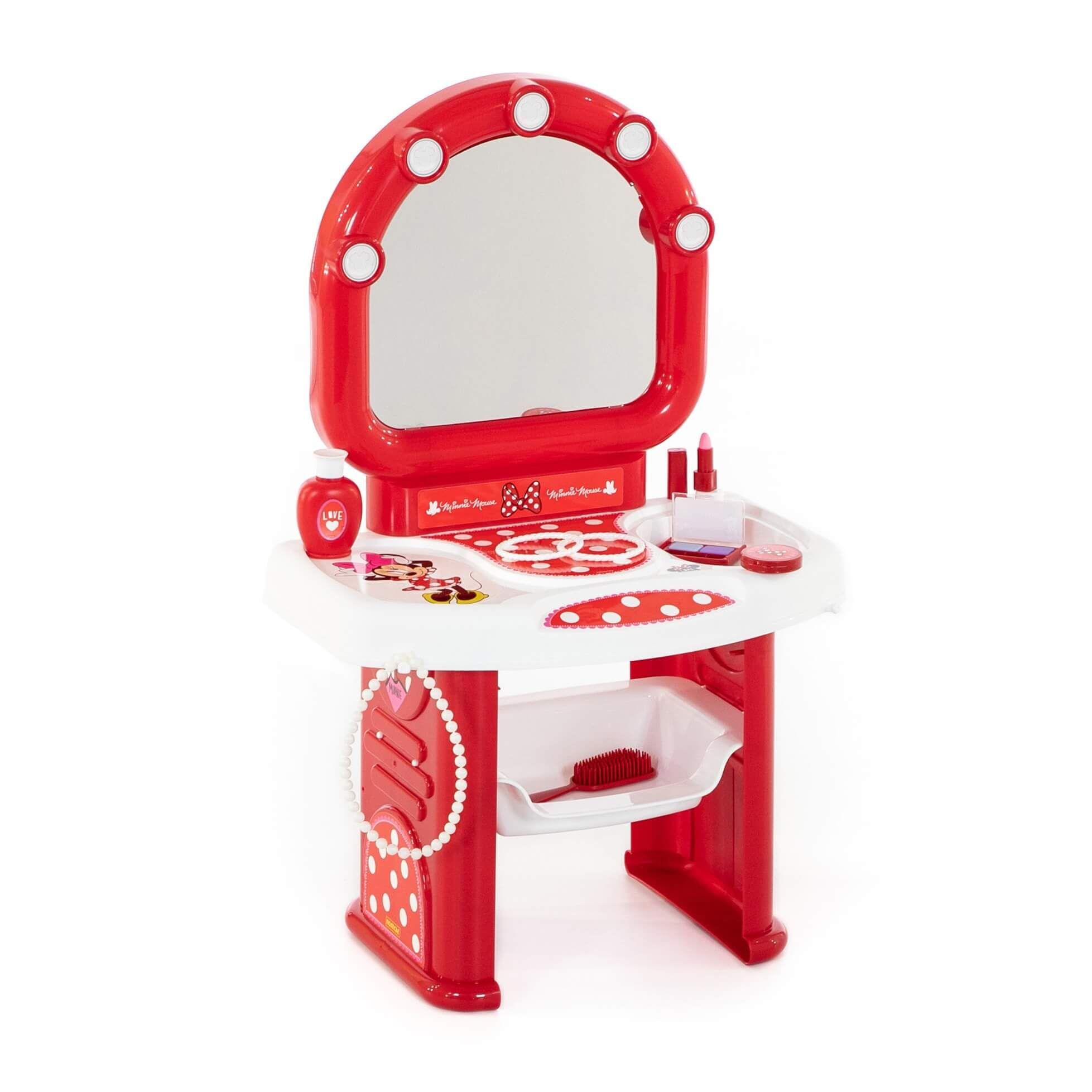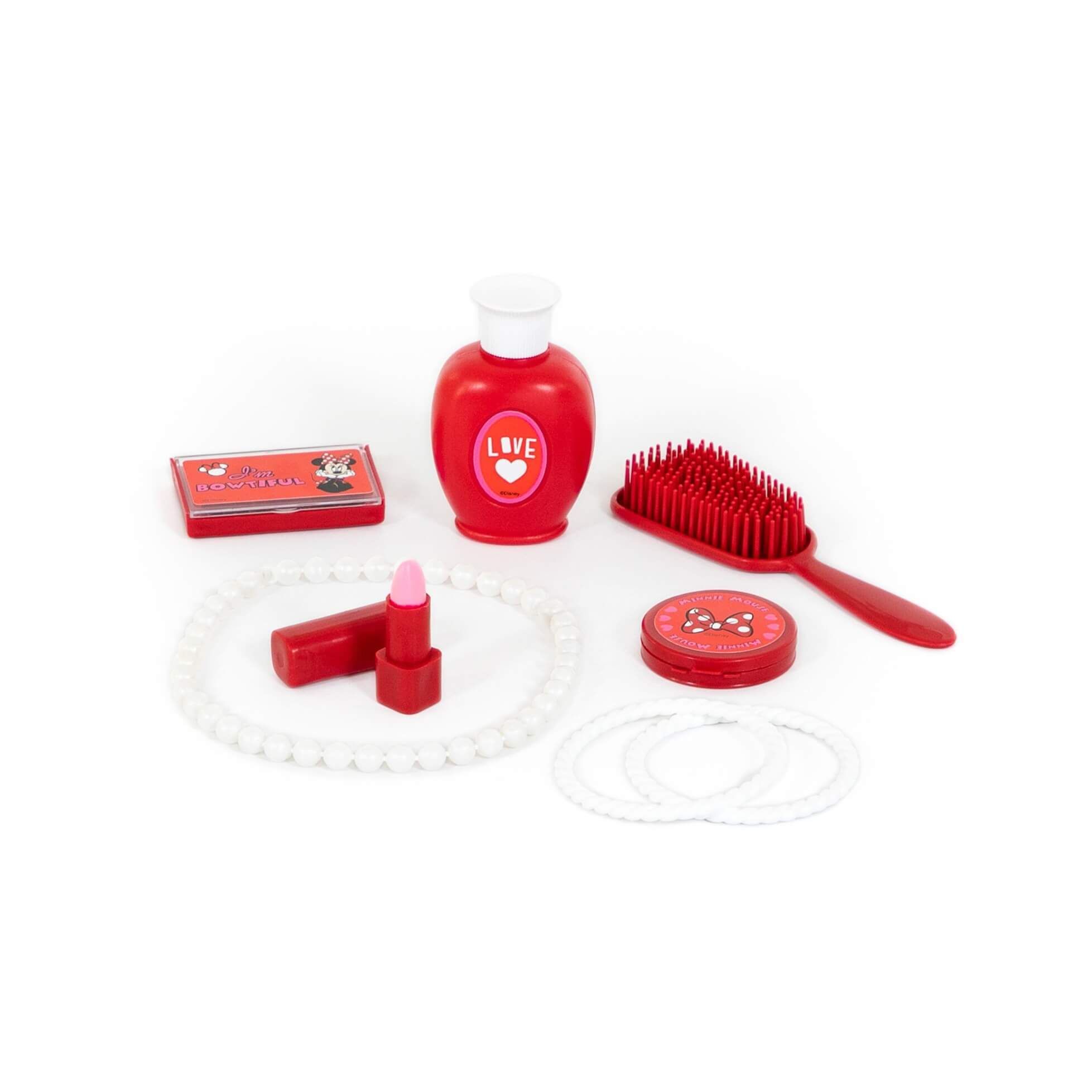 Наряжаться и делать причёски — одно из любимых занятий маленьких леди! С набором «Салон красоты «Минни Маус» от фабрики «Полесье» малышка сможет организовать собственный солон красоты, а также погрузиться в волшебный мир Disney. Наклейки (белый горошек на красном фоне, милые бантики, изображение героев мультфильма) украшают столешницу и аксессуары набора. В комплект входят: мини-туалетный столик с зеркальцем и полочкой. Зеркальце безопасно: вместо стекла здесь используется пластик. В набор входят игрушечные принадлежности: расчёска, ожерелье, браслеты (2 шт.), пудреница, тени для век, помада, флакон для косметических средств. Под столешницей имеется удобная полочка для хранения украшений. С набором «Салон красоты «Минни Маус» маленькая модница сможет почувствовать себя в роли парикмахера, визажиста или стилиста. Такая игрушка способствует развитию воображения, мелкой моторики рук, а девочка учится следить за собой!