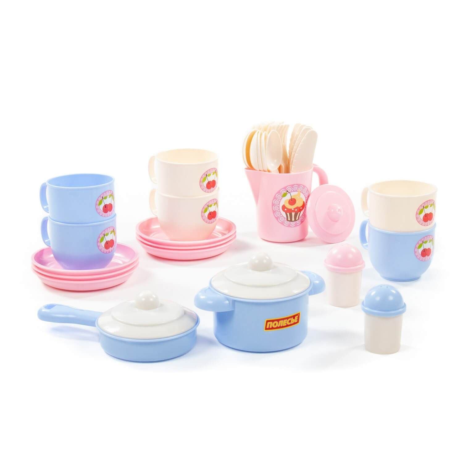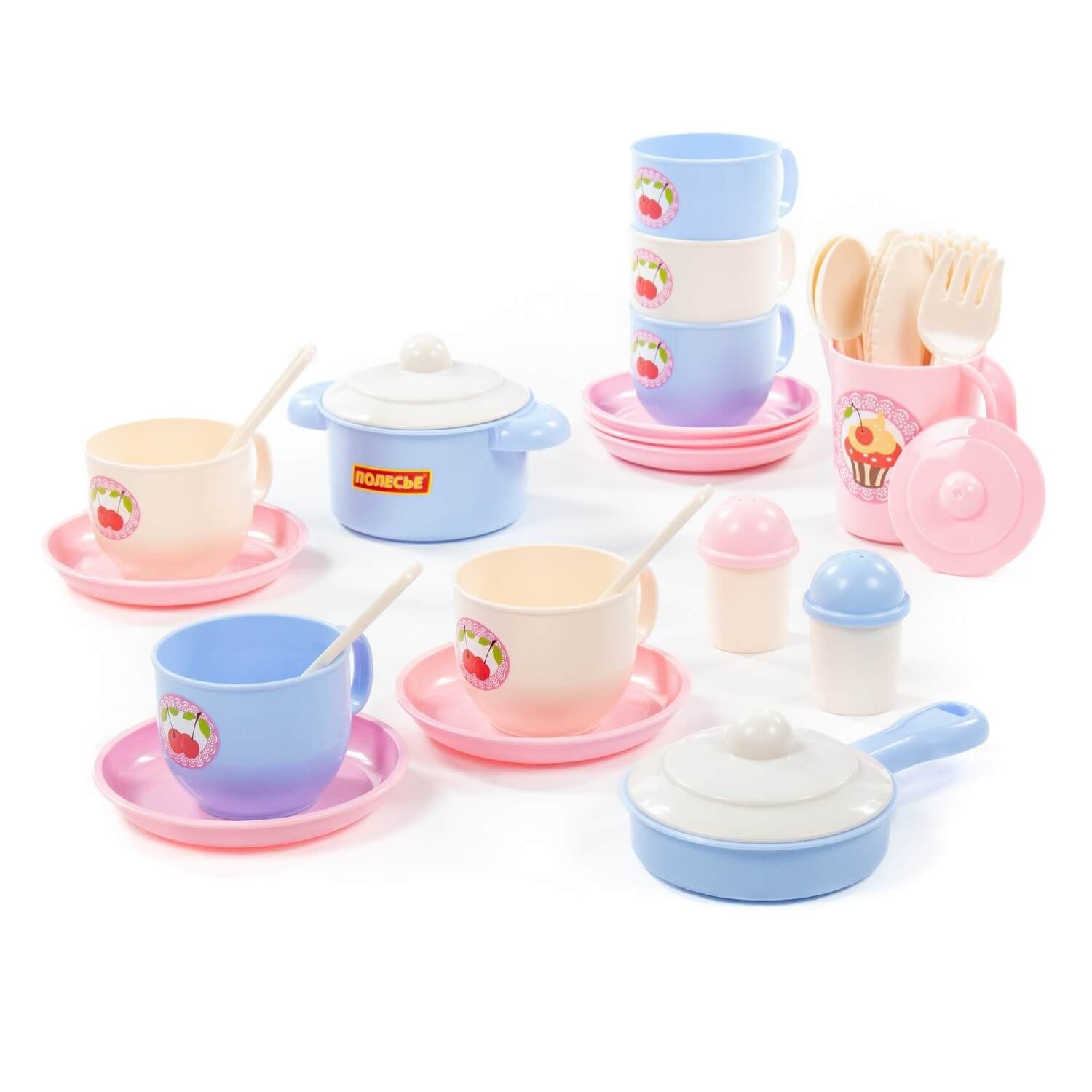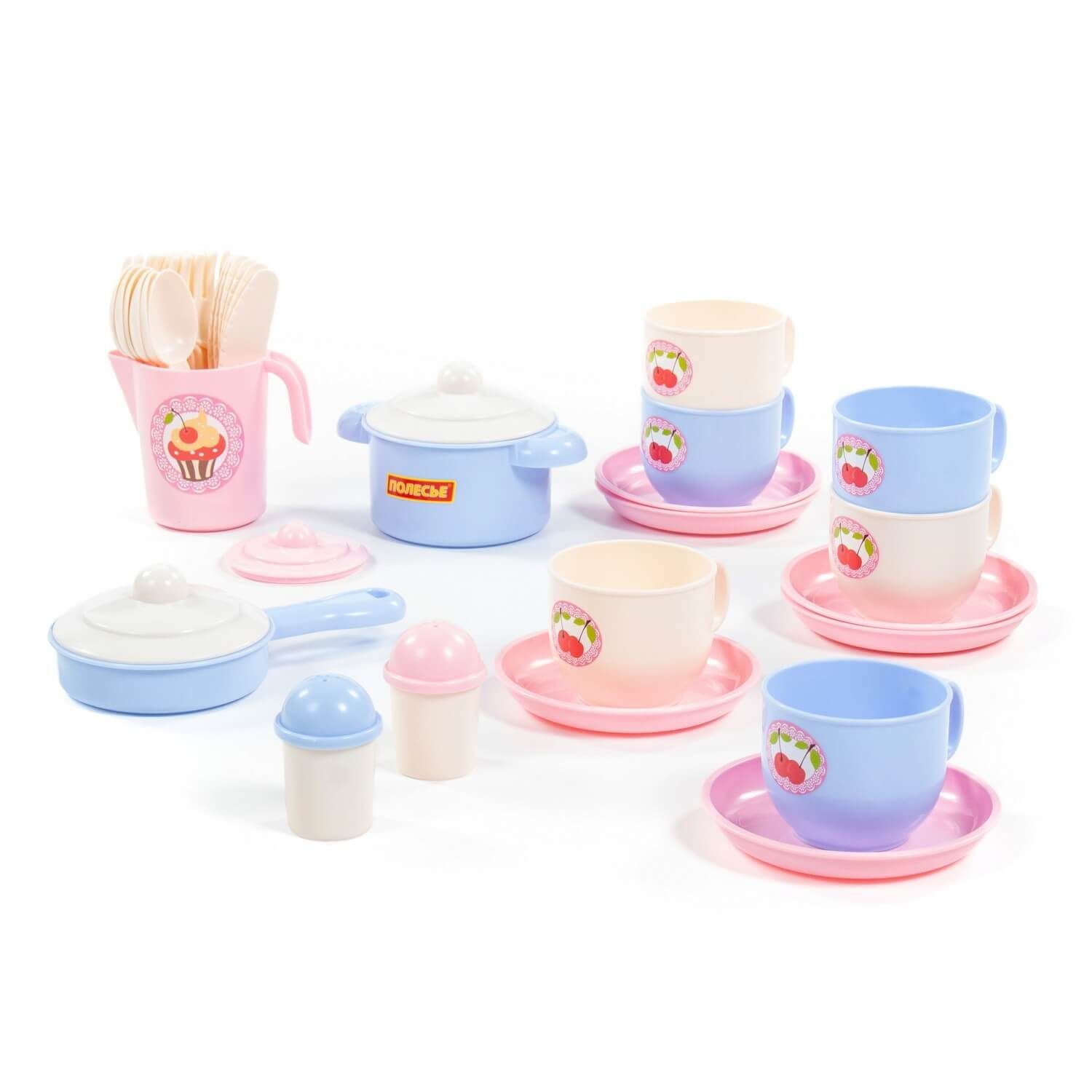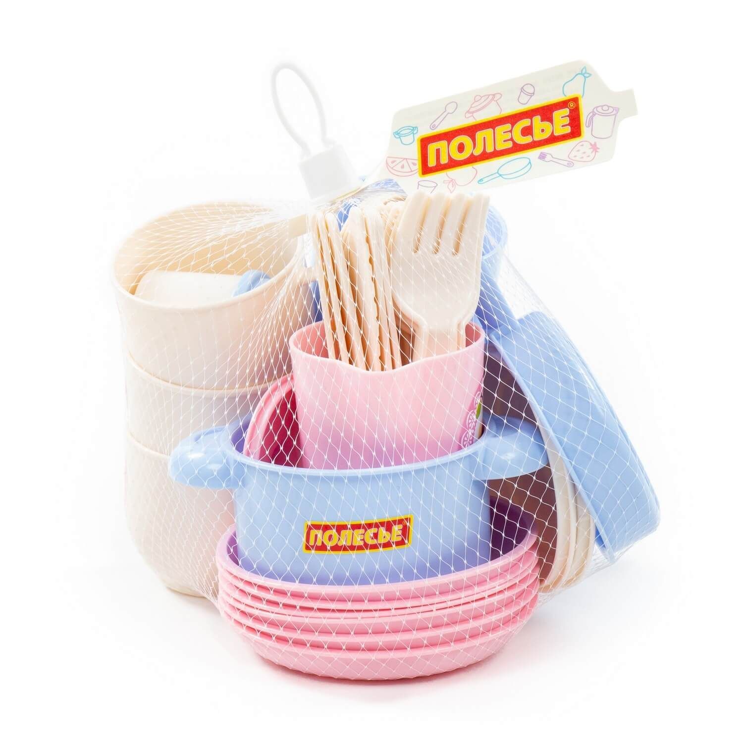 Набор детской посуды "Хозяюшка" на 6 персон позволит девочке почувствовать себя маленькой хозяйкой: готовить для кукол и угощать гостей. Набор развивает моторику рук, фантазию, мышление, коммуникативные навыки. Ребёнок учится использовать столовые приборы и другие кухонные атрибуты. Играть набором детской посуды можно дома, а также на свежем воздухе в песочнице. Все элементы выполнены из качественного и безопасного пластика в нежной цветовой гамме. Набор упакован в сеточку. В набор входят 36 элементов: