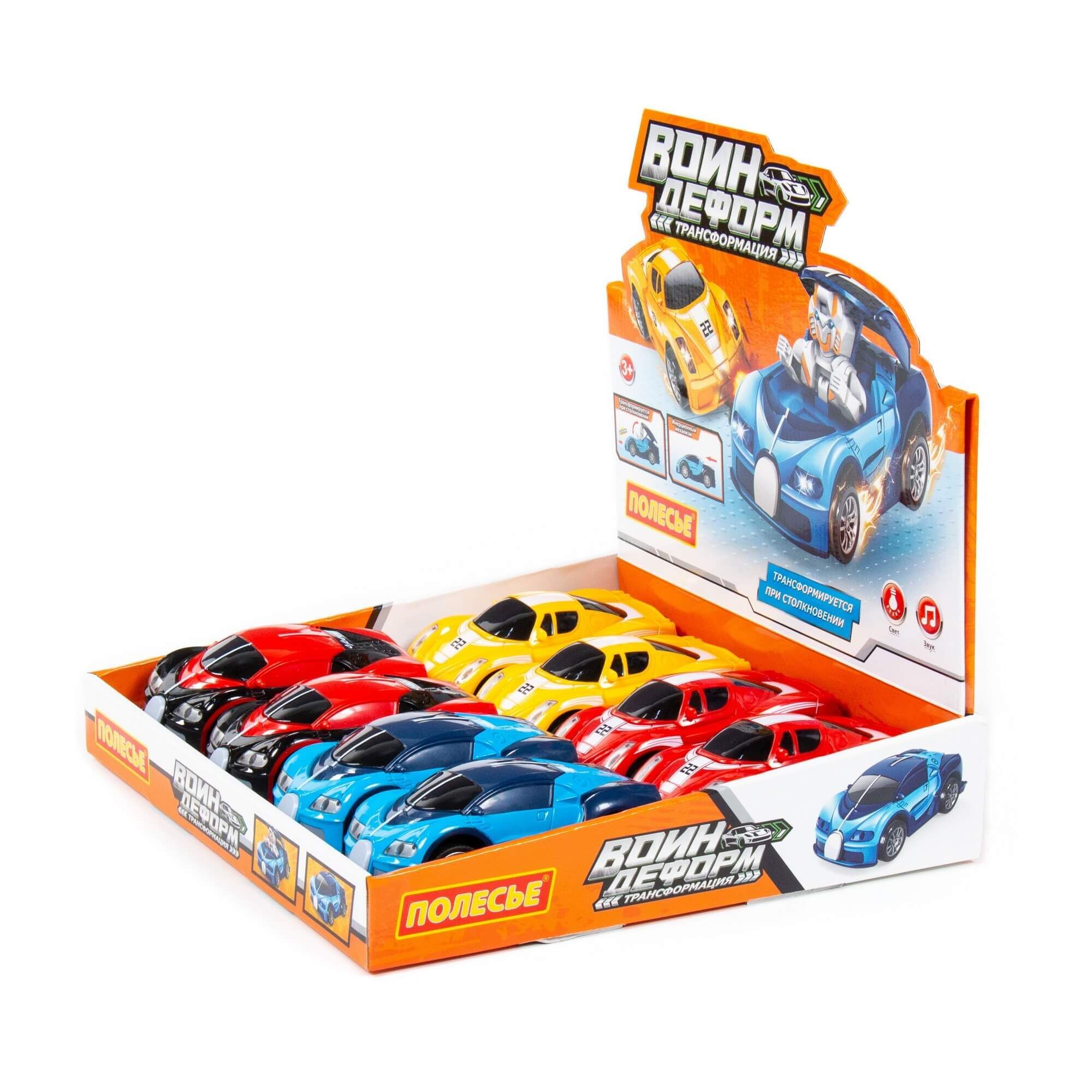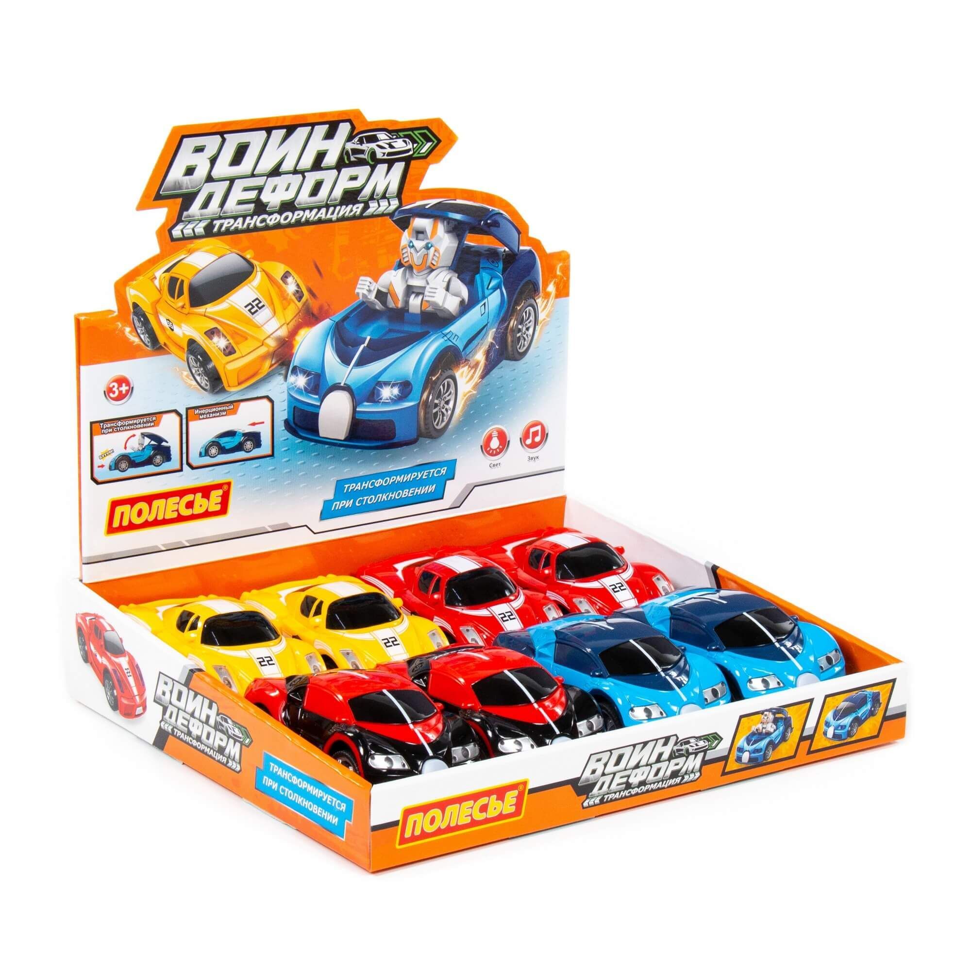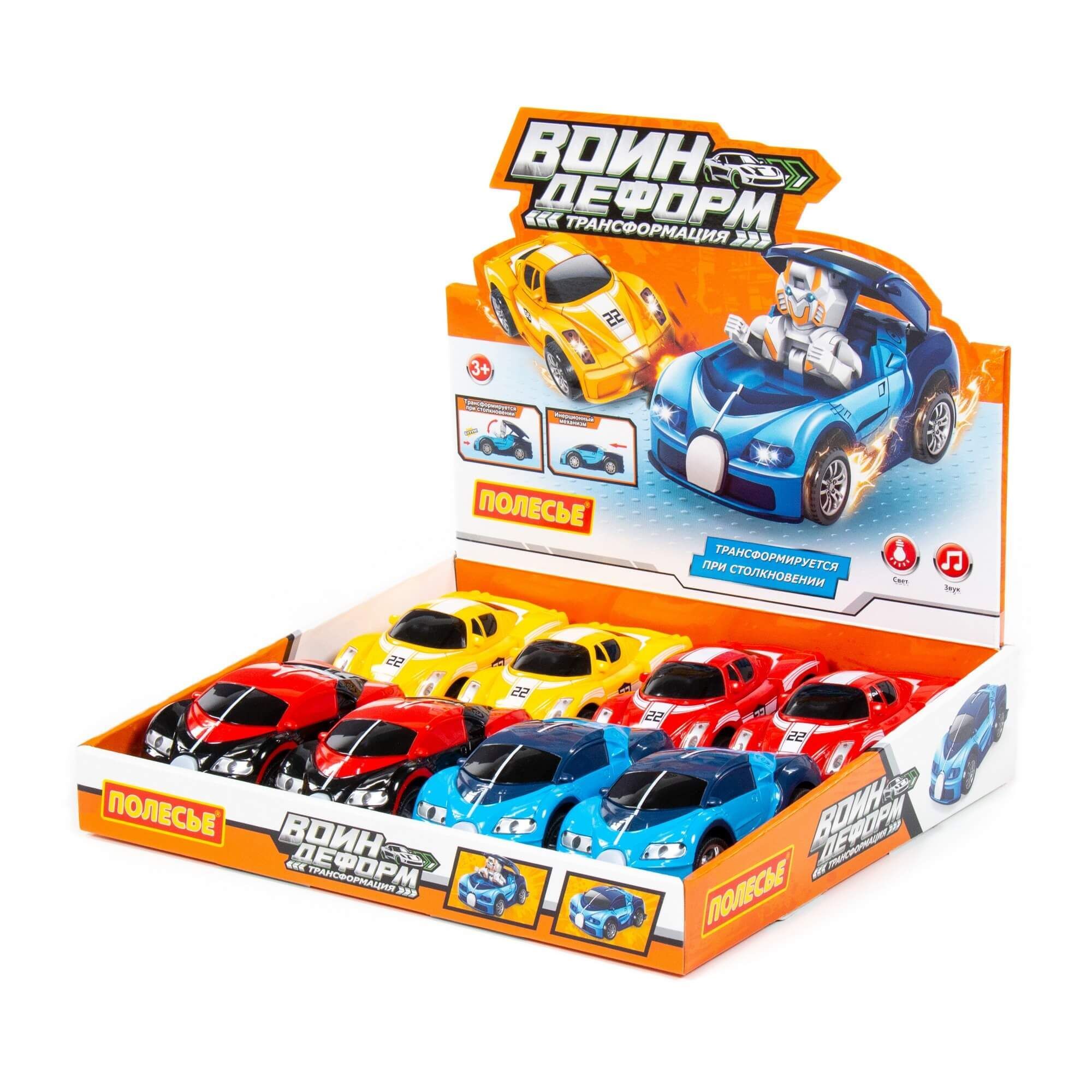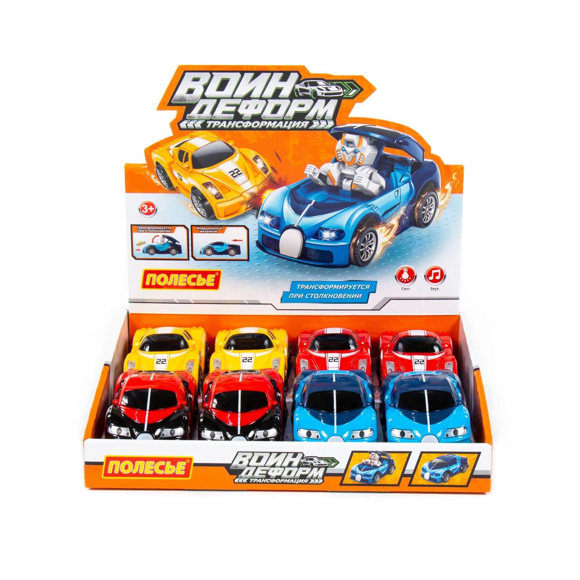 Инерционная коллекция транспорта «Воин ДЕФОРМ» от фабрики «Полесье» имеет современный дизайн, а также выполнена из качественных материалов. Все модели оснащены инерционным механизмом и резиновыми колёсами, имеют звуковые и световые эффекты. Особенностью данной серии является функция трансформации при столкновении (появляется робот). Автомобили инерционные «Воин ДЕФОРМ» представлены в нескольких цветах: красном, жёлтом, сине-голубом и красно-чёрном. Ребёнок сможет собрать собственный автопарк с коллекцией машинок «Воин ДЕФОРМ» от фабрики «Полесье»!