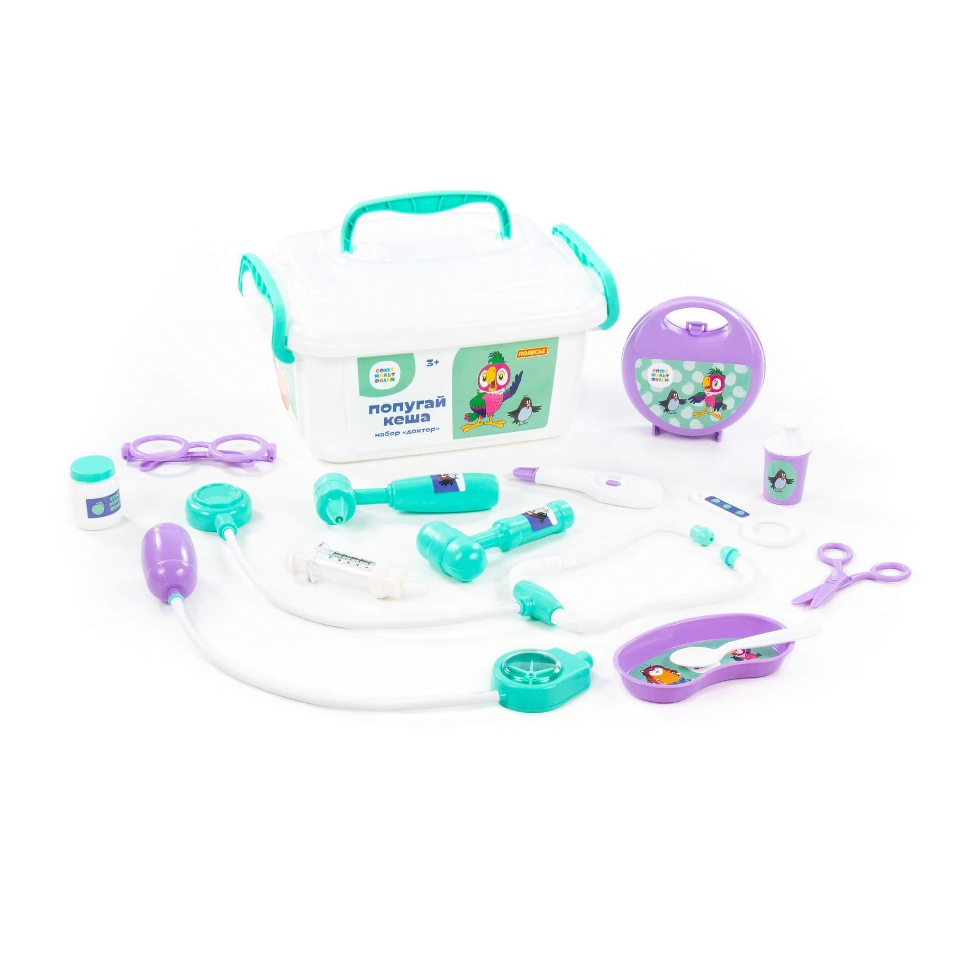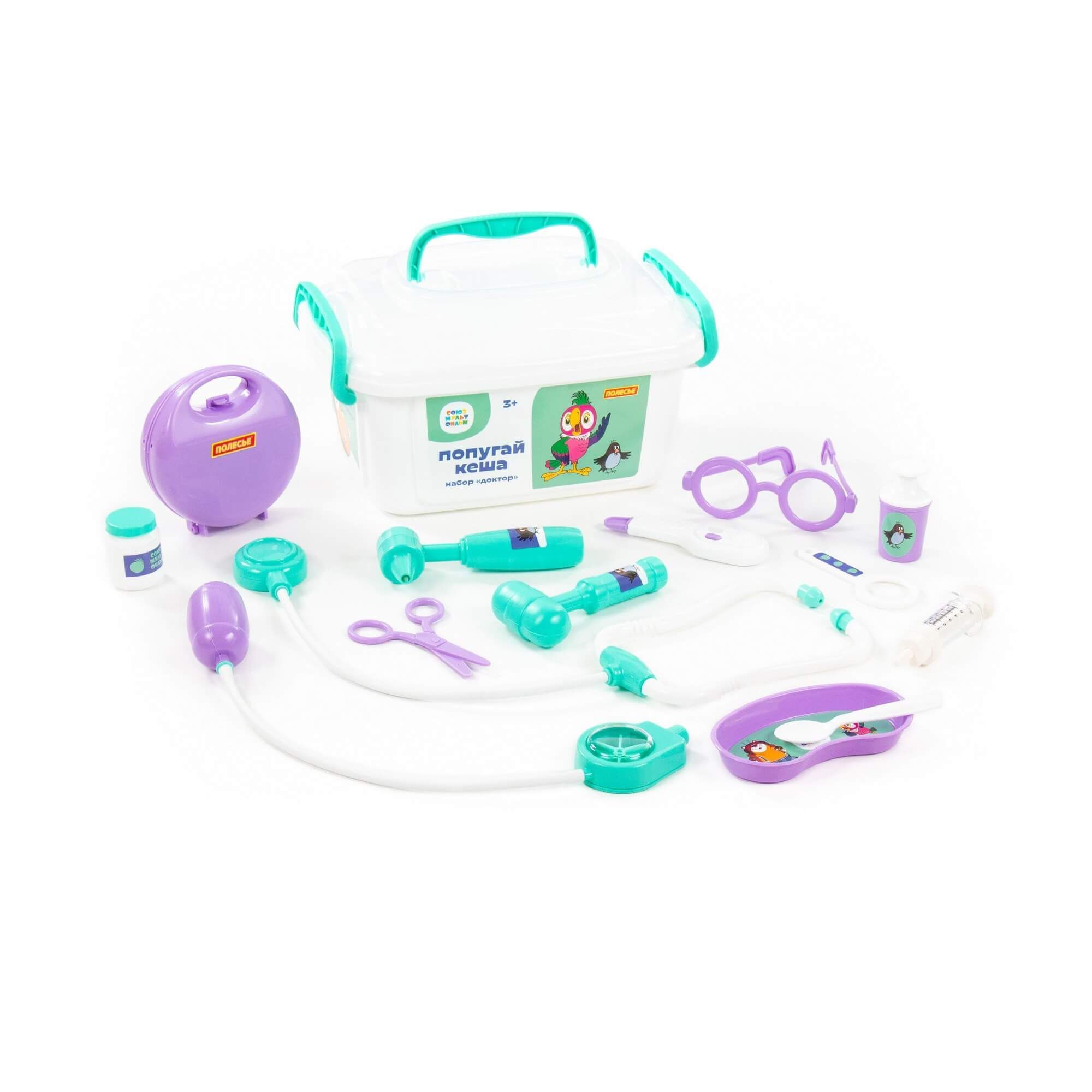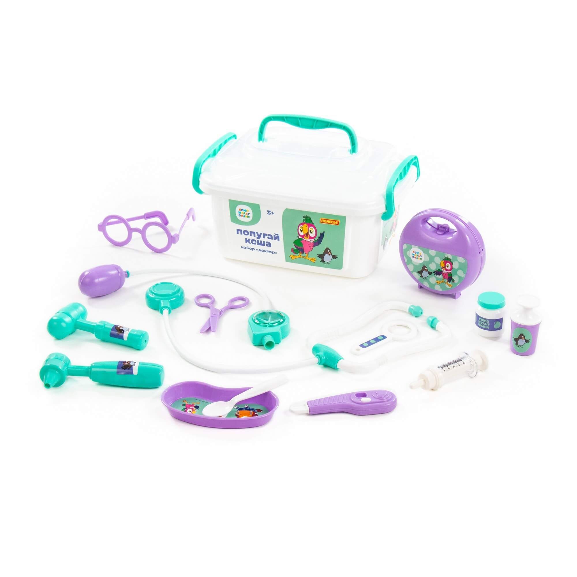 С универсальным набором «Доктор» провести приём пациентов и назначить лечение гораздо интереснее! Игровой набор "Доктор «Попугай Кеша» в контейнере рекомендован детям с трёх лет. Он способствует развитию фантазии и коммуникативным навыкам у дошкольников, знакомит с профессией врача, способствуют формированию абстрактного мышления. Все медицинские инструменты компактно умещаются в контейнере. Это позволяет удобно перемещать и хранить набор. Медицинский инвентарь максимально соответствует оригинальным принадлежностям и одновременно безопасен для игры. В состав набора входят: