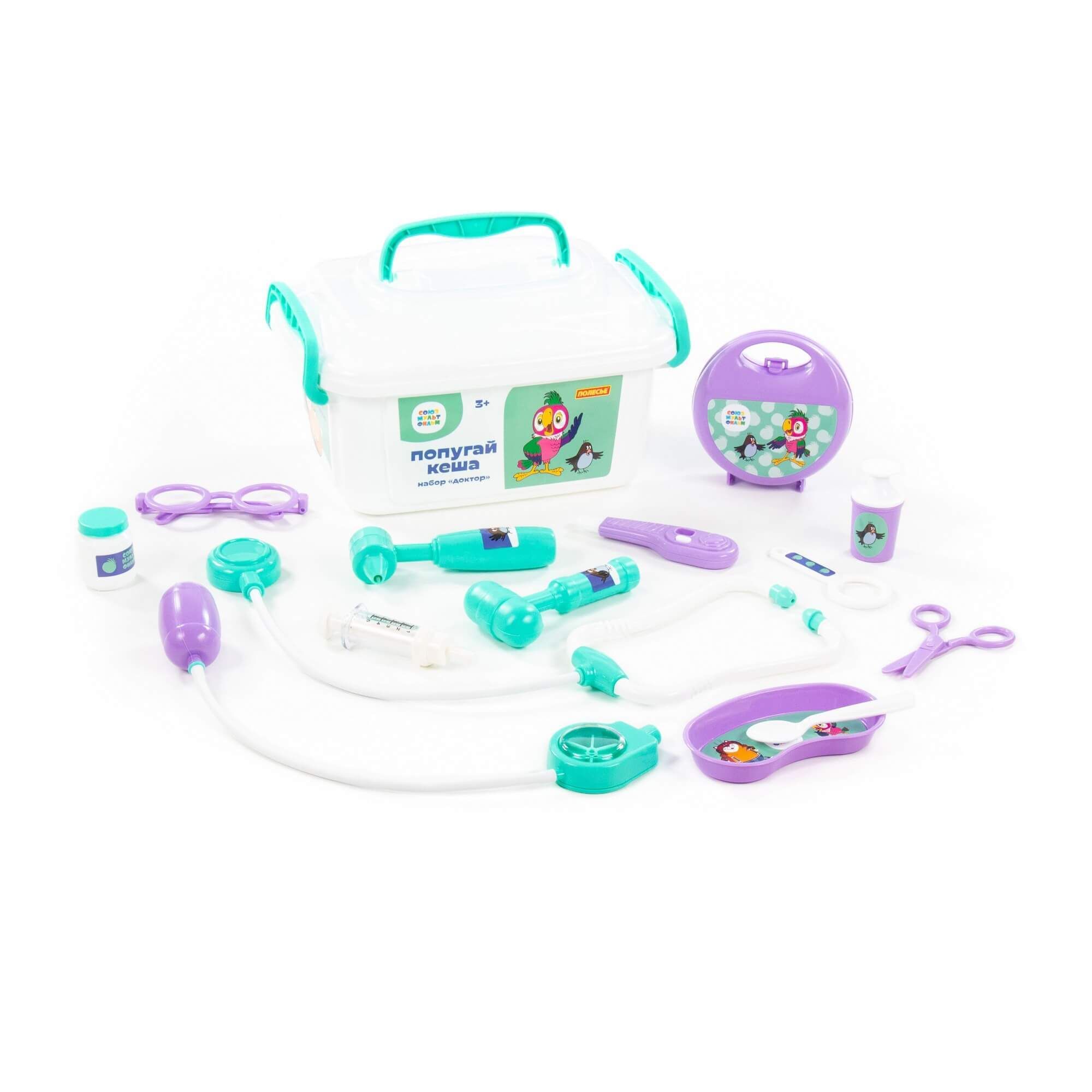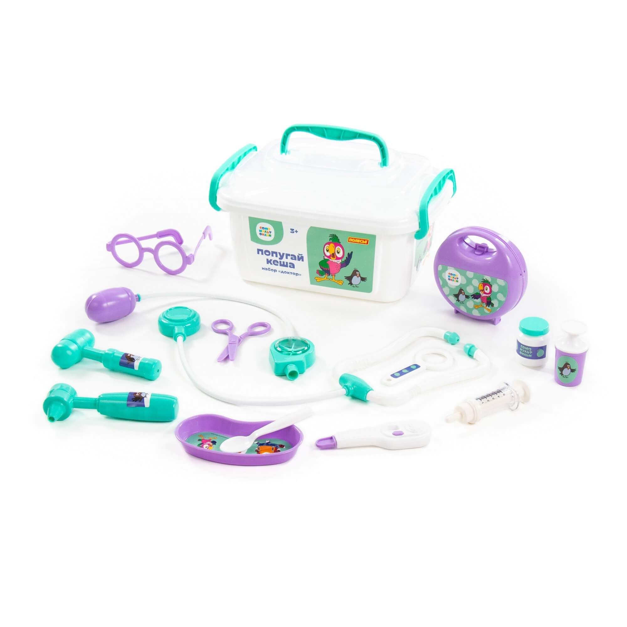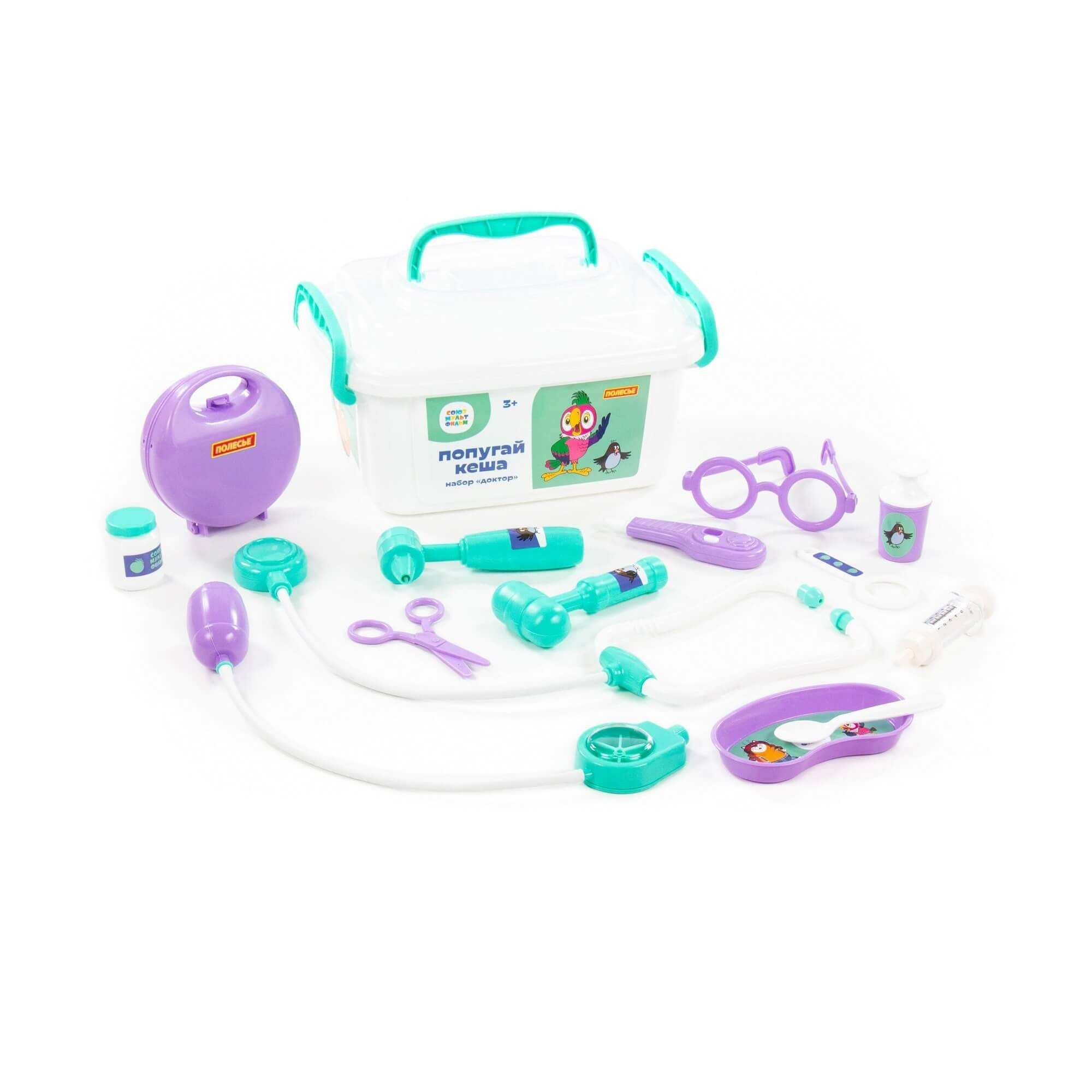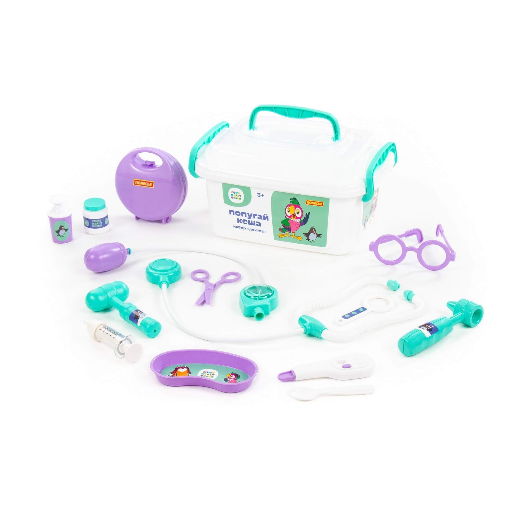 С универсальным набором «Доктор» провести приём пациентов и назначить лечение гораздо интереснее! Игровой набор "Доктор «Попугай Кеша» в контейнере рекомендован детям с трёх лет. Он способствует развитию фантазии и коммуникативным навыкам у дошкольников, знакомит с профессией врача, способствуют формированию абстрактного мышления. Все медицинские инструменты компактно умещаются в контейнере. Это позволяет удобно перемещать и хранить набор. Медицинский инвентарь максимально соответствует оригинальным принадлежностям и одновременно безопасен для игры. В состав набора входят: