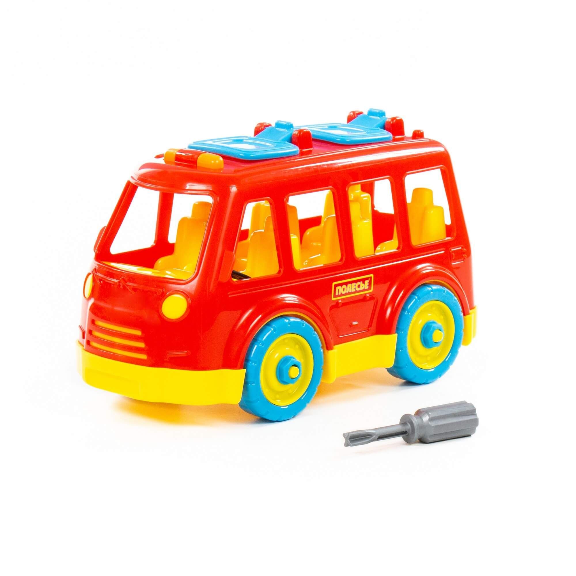 Для самых любопытных малышей, которые хотят поближе познакомиться с разными видами транспорта, фабрика «Полесье» представляет конструктор-транспорт "Автобус". Игрушка выполнена в ярких цветах, из качественного материала, имеет округлую форму. Все элементы автобуса представлены в виде конструктора, который соединяется с помощью пластмассовых шурупов. В наборе также идёт крестообразная отвёртка, которая разнообразит игру, сделает её еще интереснее, позволяя без труда разбирать и собирать автобус. Игра с таким конструктором знакомит ребёнка с первыми навыками моделирования и конструирования, а также развивает фантазию. Упакована игрушка в яркую коробку, которая может выступать в качестве подарочной.