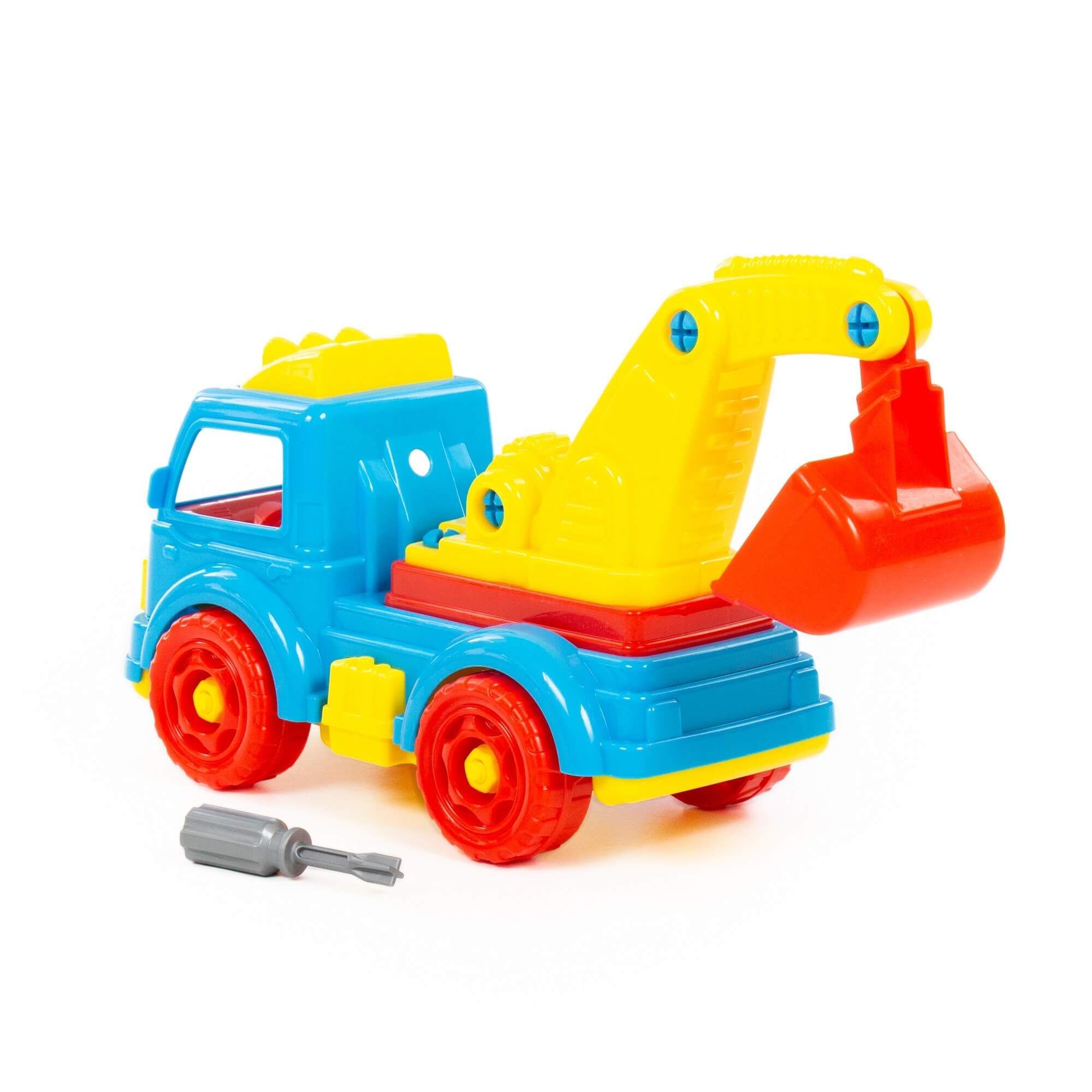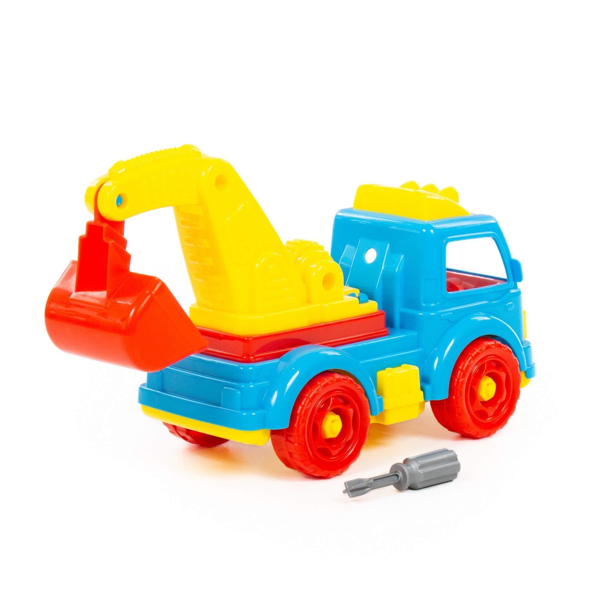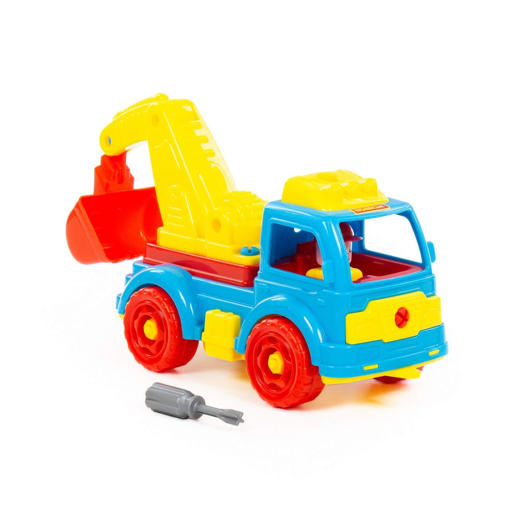 Для самых любопытных малышей, которые хотят поближе познакомиться с разными видами транспорта, фабрика «Полесье» представляет конструктор-транспорт "Автомобиль-экскаватор". Игрушка выполнена в ярких цветах, из качественного материала, имеет округлую форму. Все элементы экскаватора представлены в виде конструктора, который соединяется с помощью пластмассовых шурупов. В наборе также идёт крестообразная отвёртка, которая разнообразит игру, сделает её еще интереснее, позволяя без труда разбирать и собирать экскаватор. Игра с таким конструктором знакомит ребёнка с первыми навыками моделирования и конструирования, а также развивает фантазию. Упакована игрушка в яркую коробку, которая может выступать в качестве подарочной.