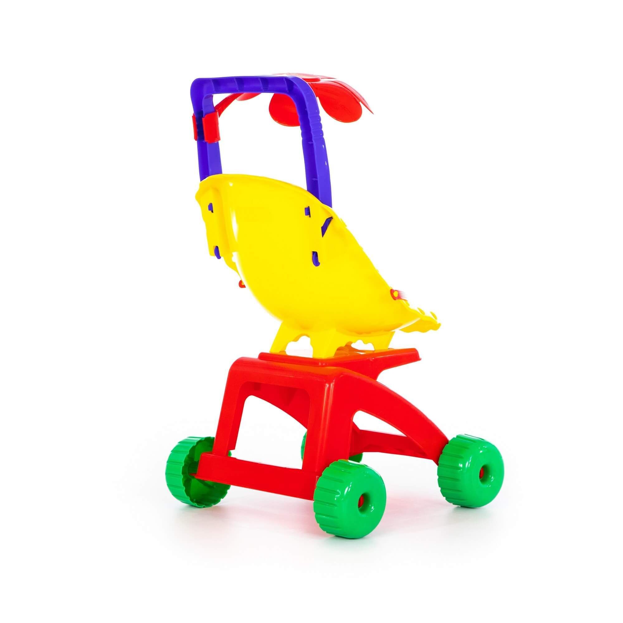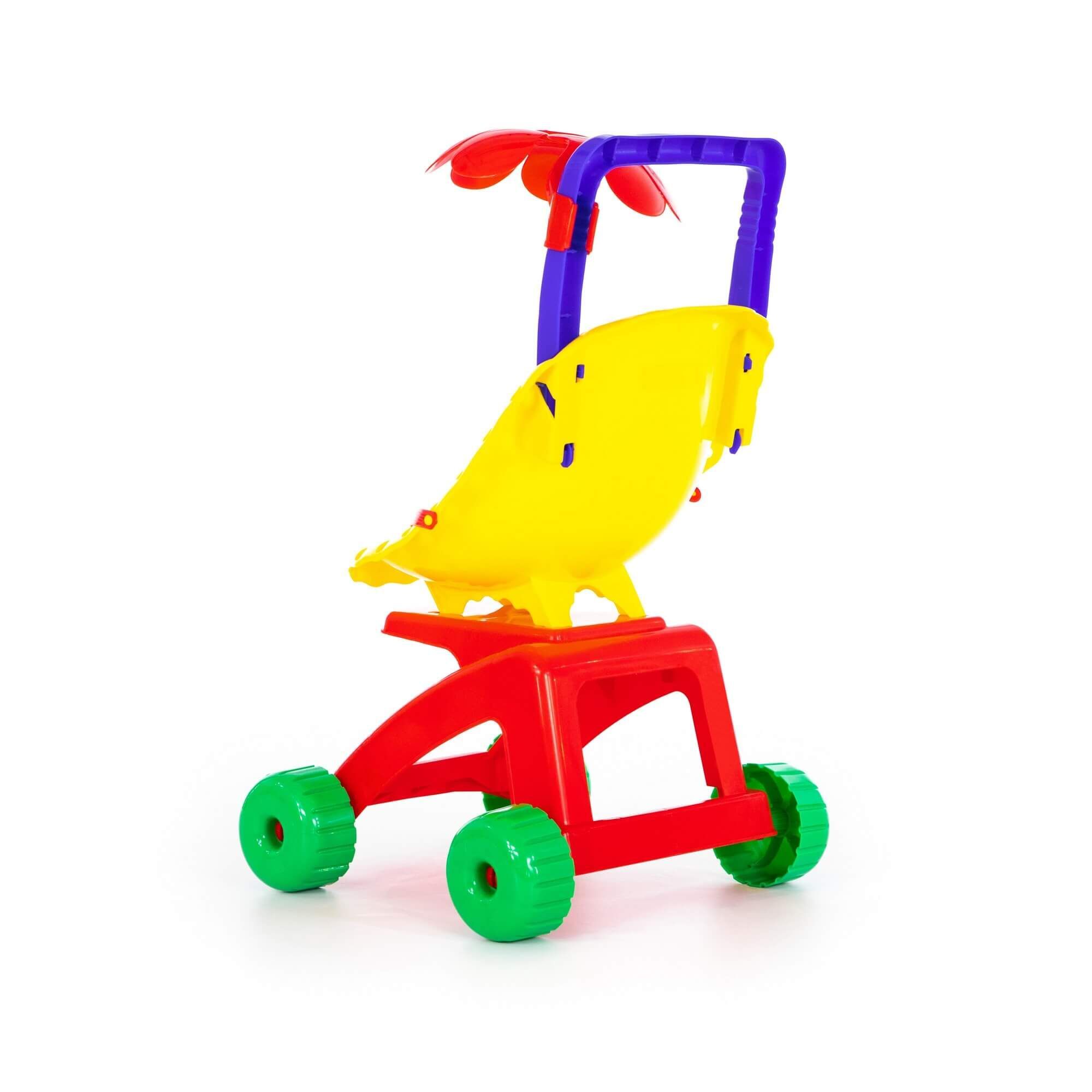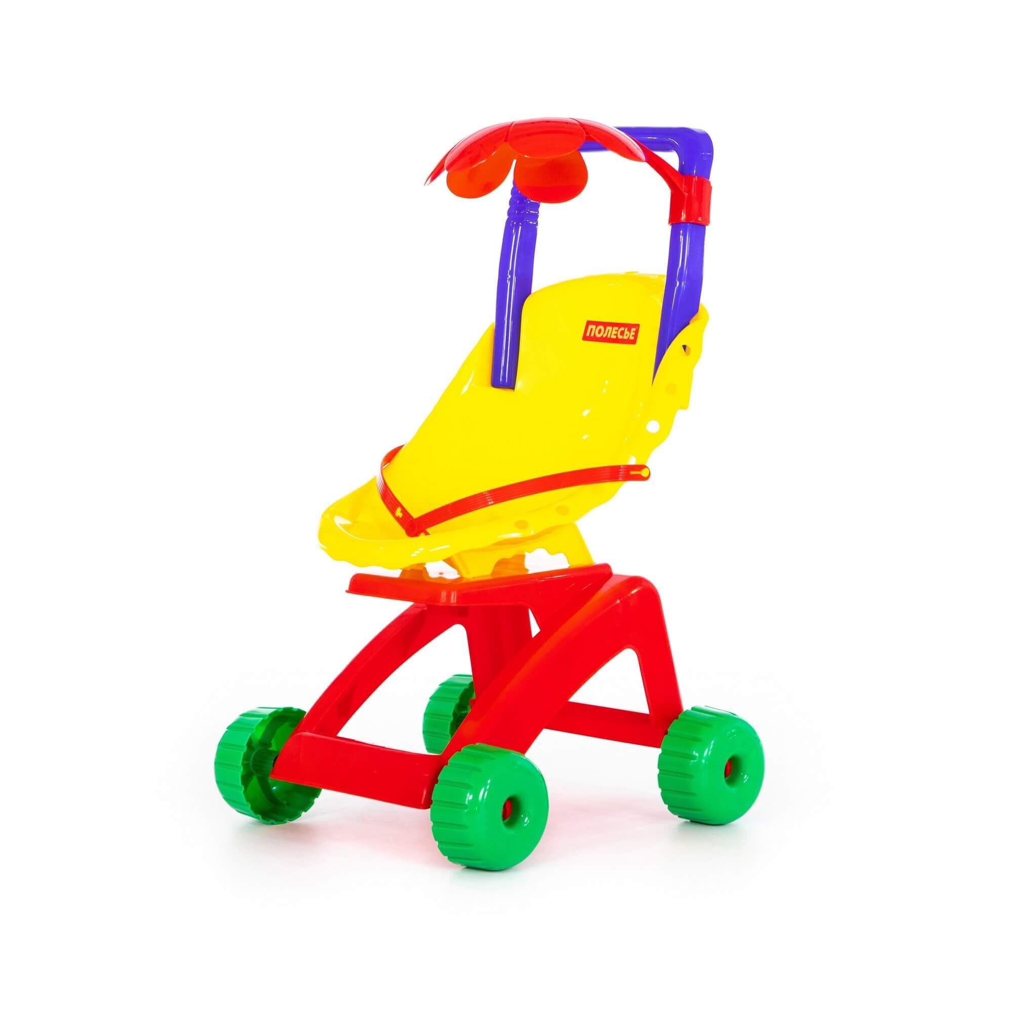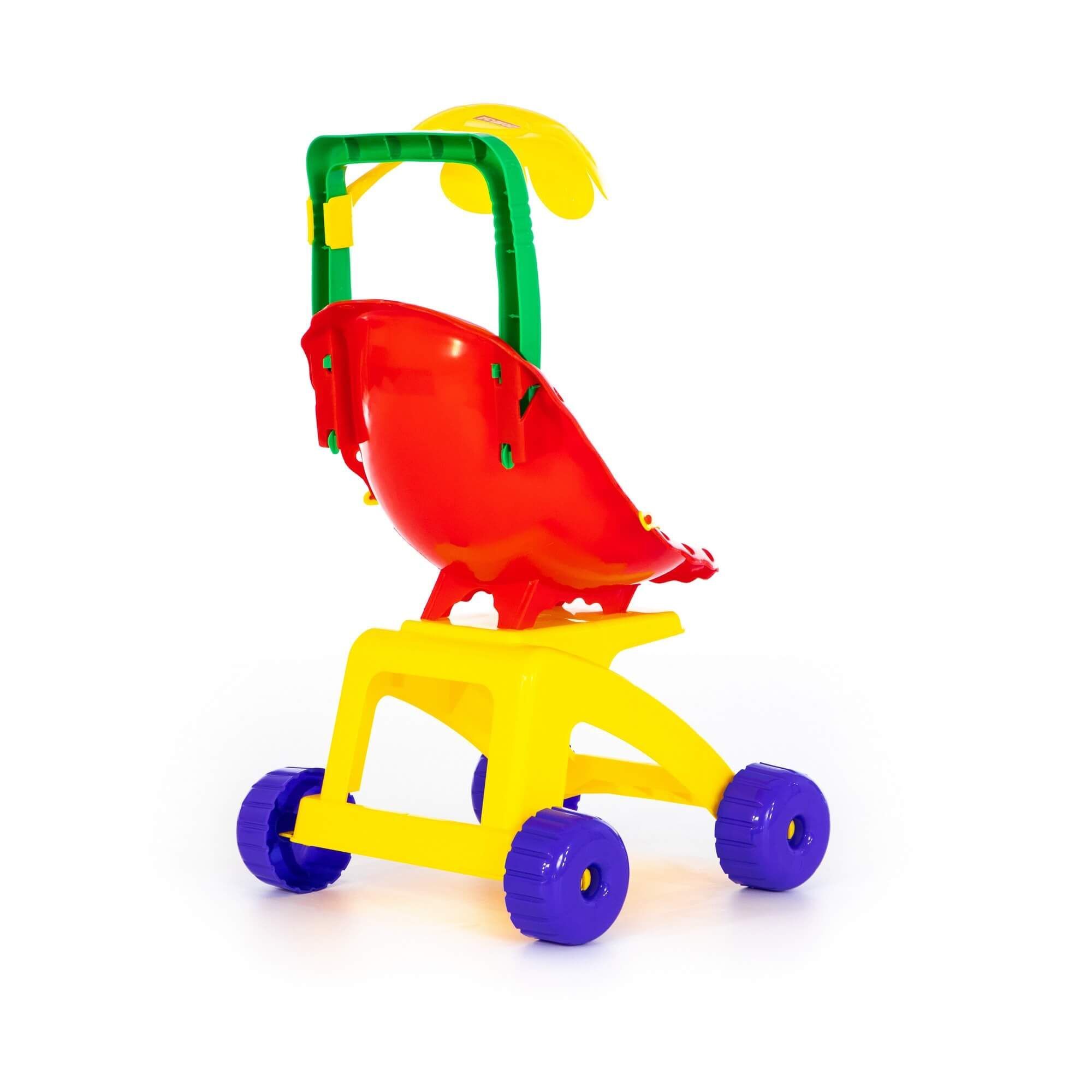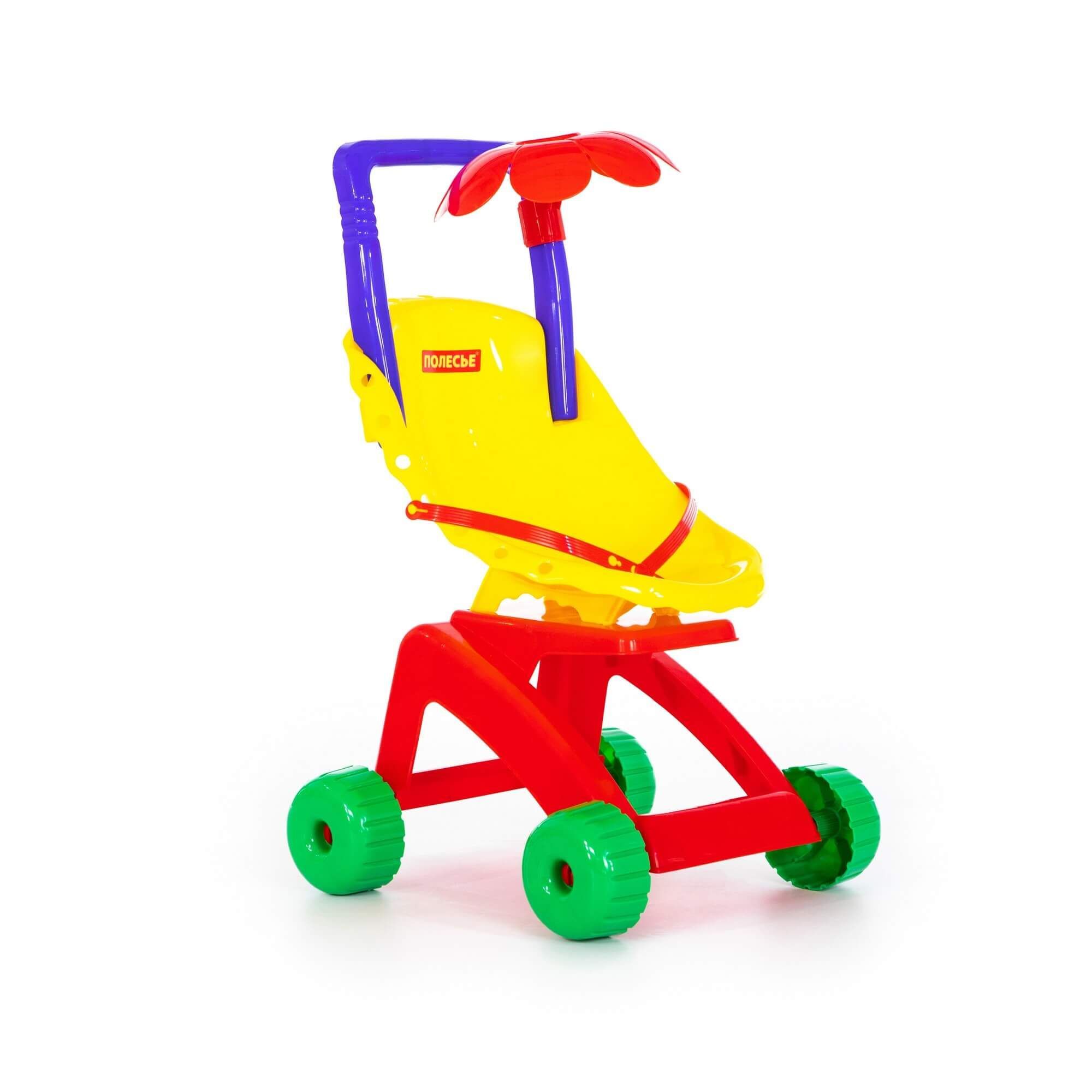 "Ромашка" - это коляска для кукол, пупсов, а также мягких друзей ребёнка. Пассажиров коляски можно пристегнуть ремешком. Коляска выполнена в базовых цветах, которые в первую очередь изучает ребенок, что способствует развитию у него цветовосприятия. Ещё интереснее игру с коляской сделает трещотка, установленная на колесе.