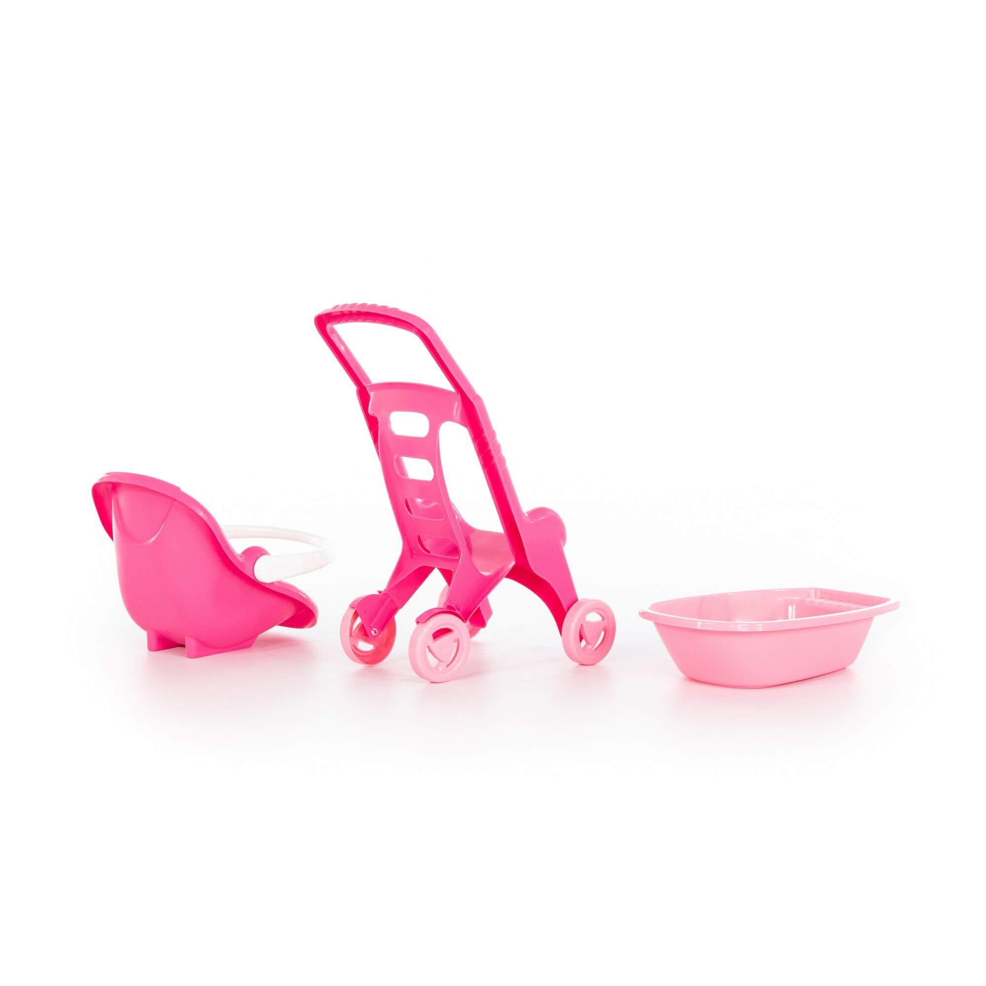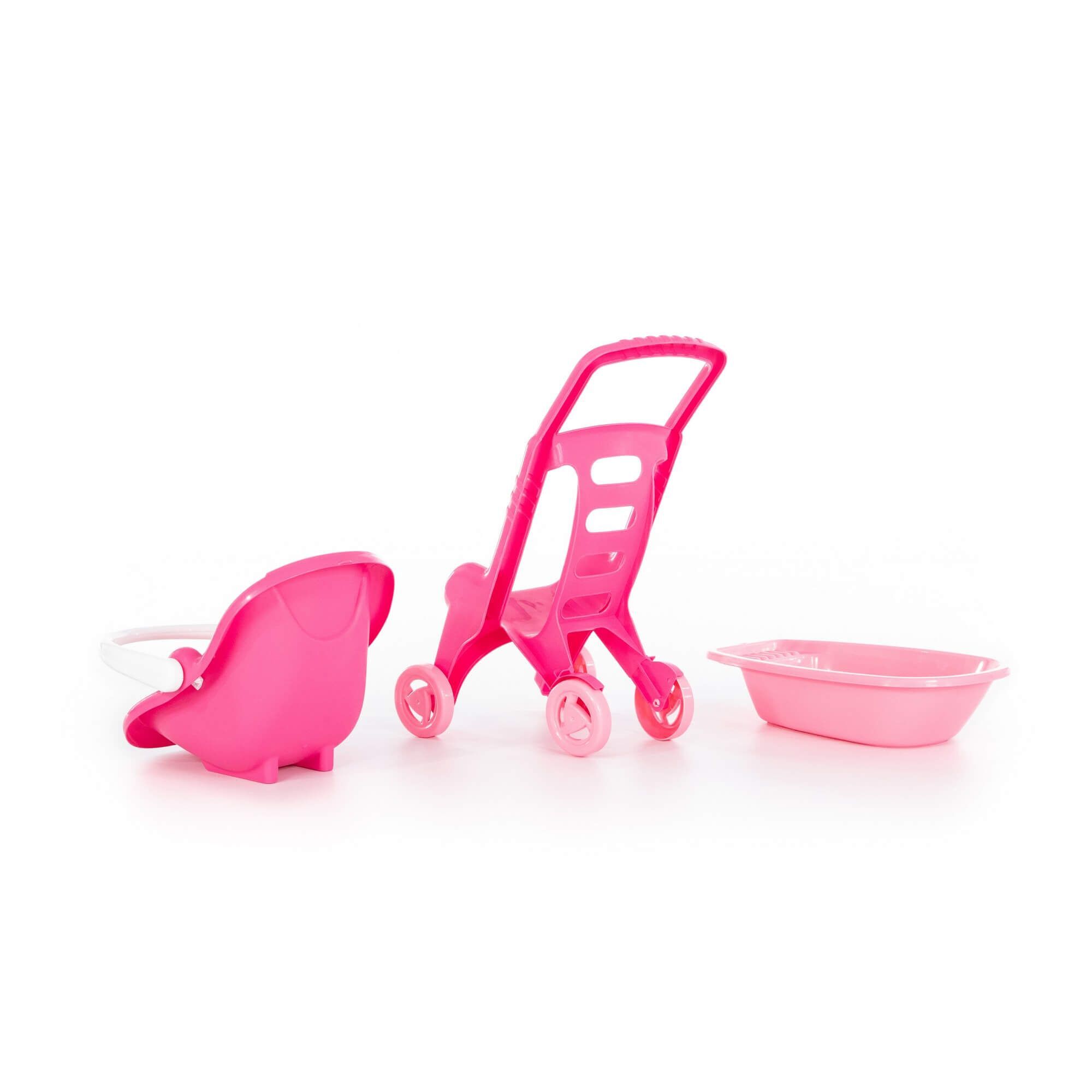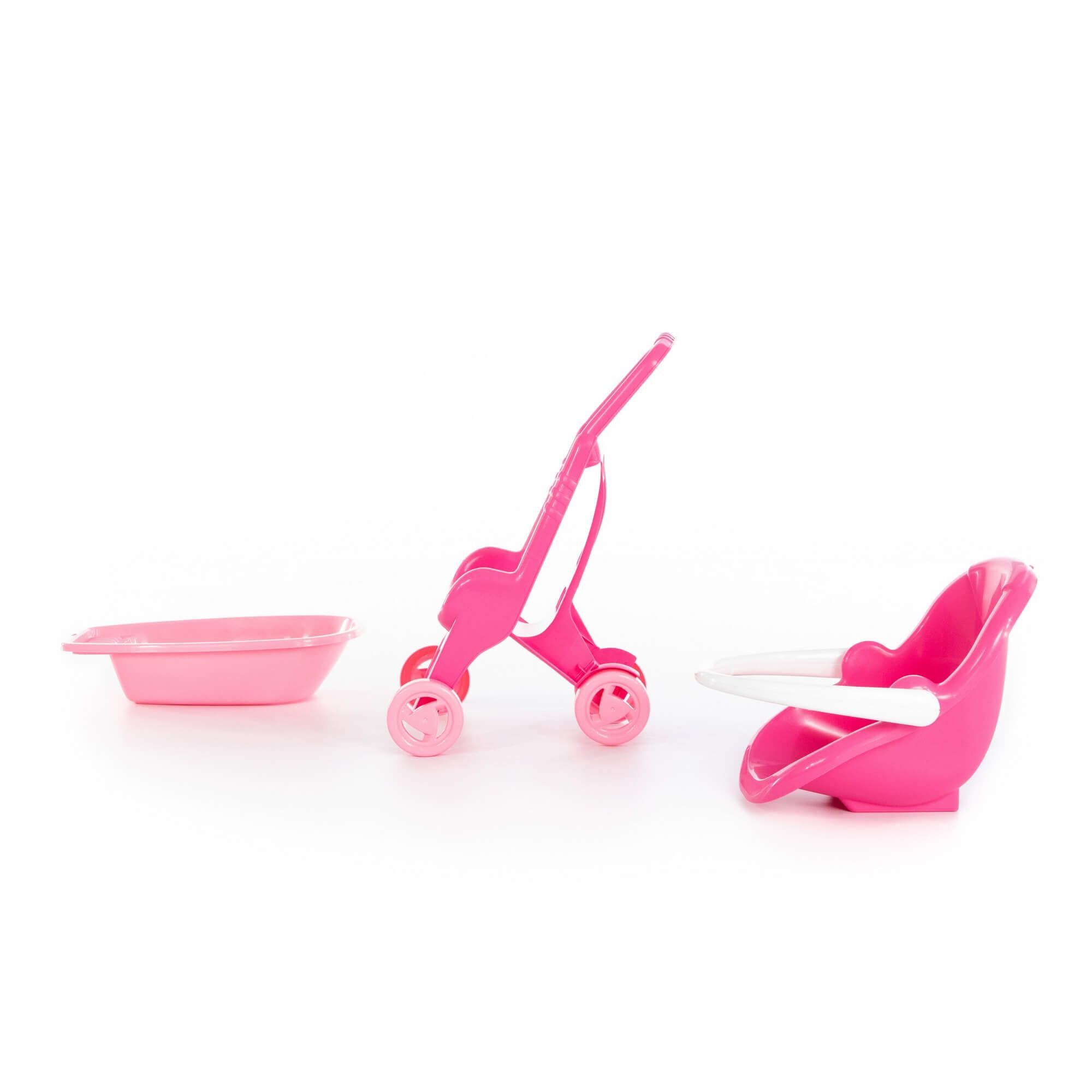 Набор состоит из коляски "Лили", люльки с ручкой, ванночки для купания пупсов или кукол.