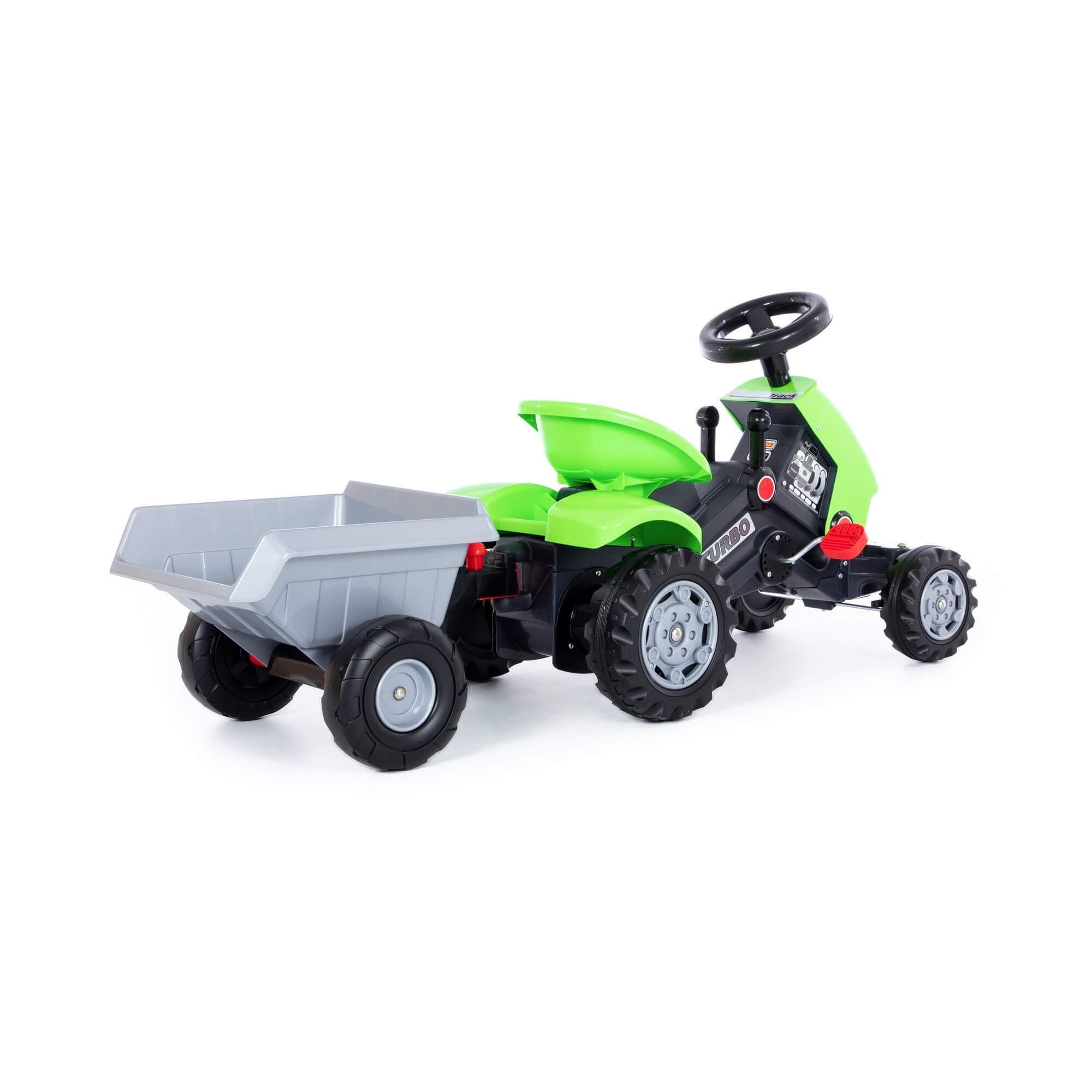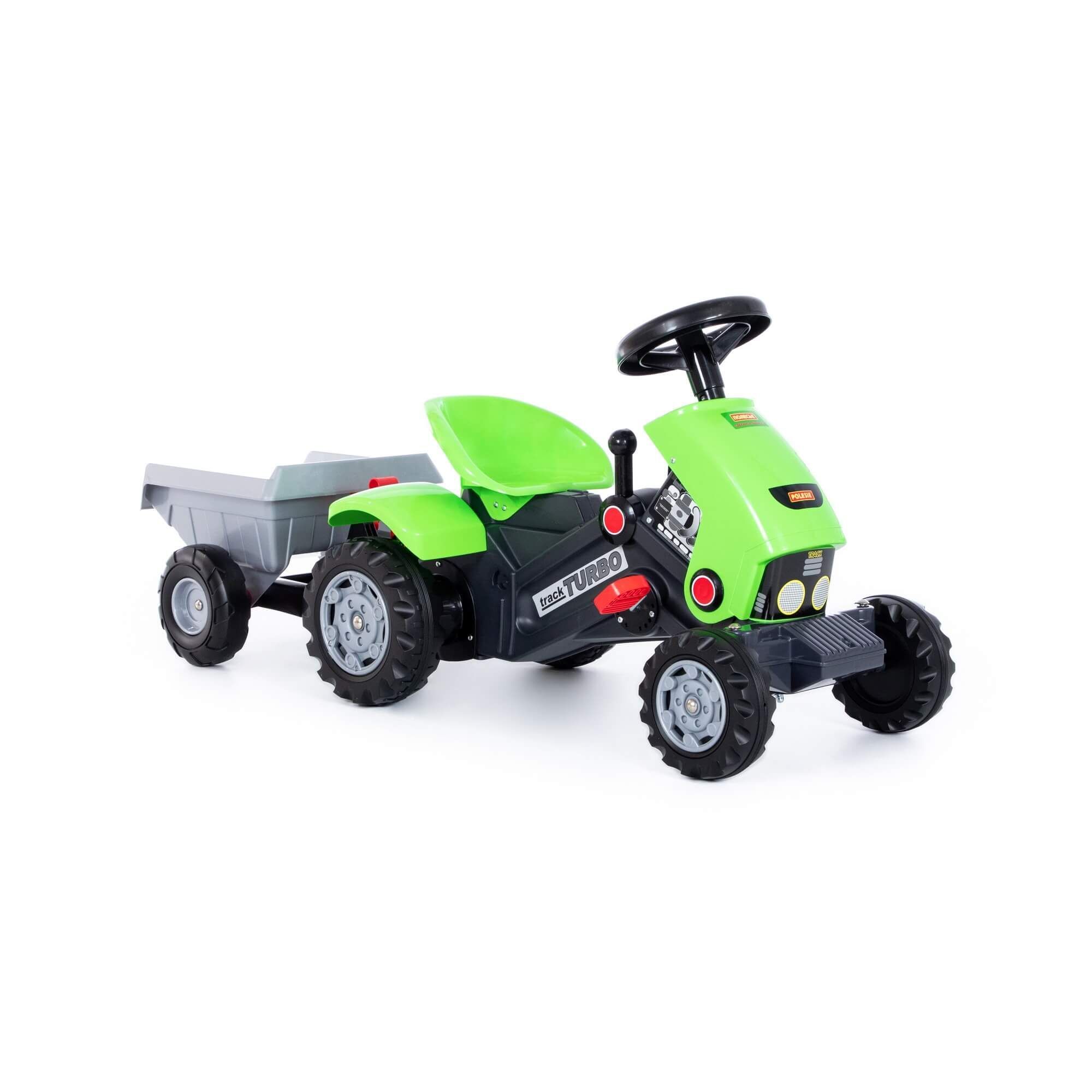 Педальная каталка-трактор «Turbo-2» c полуприцепом приводится в движение при помощи цепного механизма. На мини-тракторе установлена имитация коробки передач, что придает каталке реалистичности. В комплекте с игрушкой поставляется полуприцеп. При помощи прицепа ребенок сможет перевозить урожай или различные грузы. Полуприцеп легко отсоединяется и присоединяется обратно. С этой задачей справится даже ребенок. Управлять своей техникой ребенок будет при помощи руля. Высота посадки составляет 300 мм. Катание на педальных механизмах способствуют физическому развитию малыша, а также развивают его координацию движений.