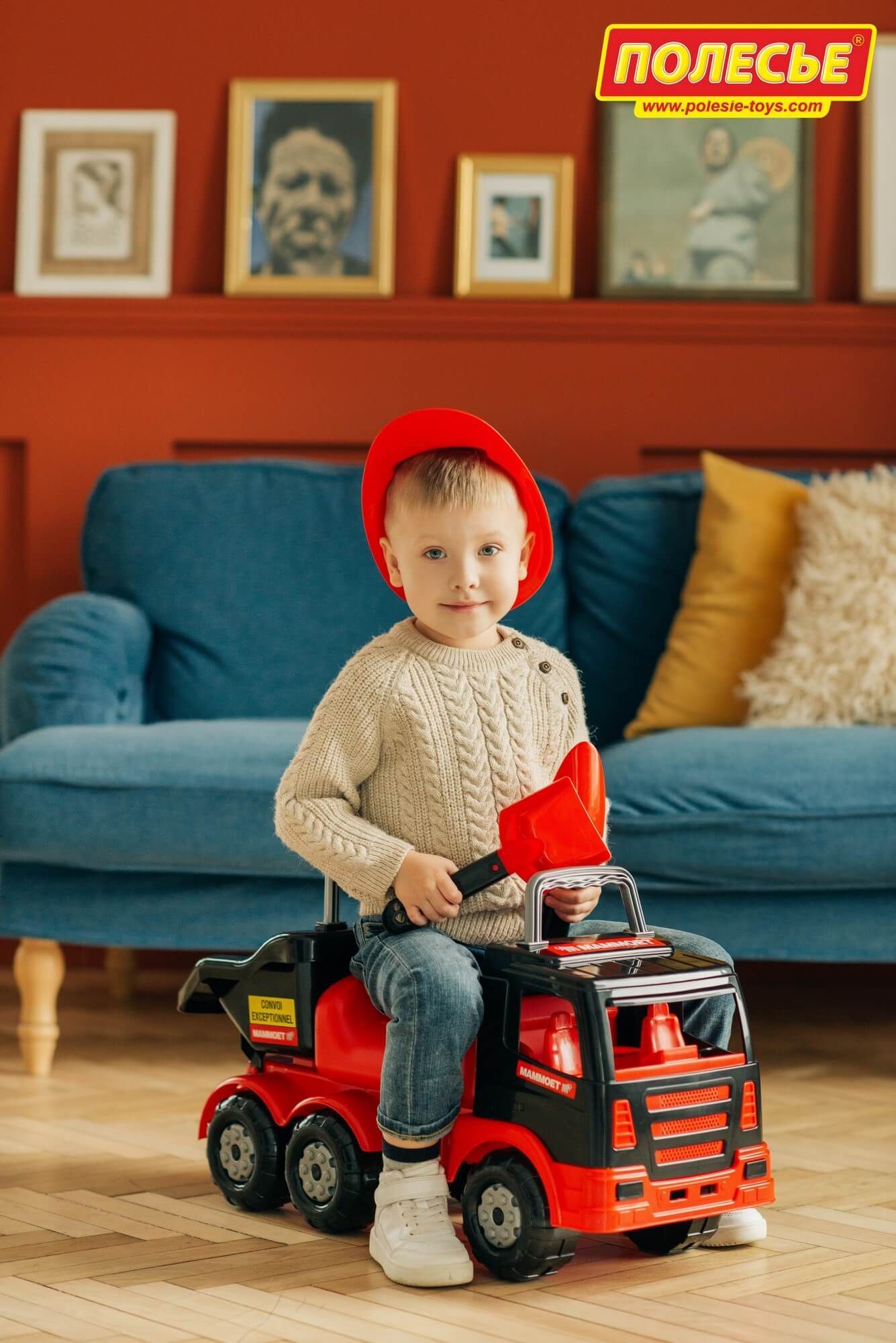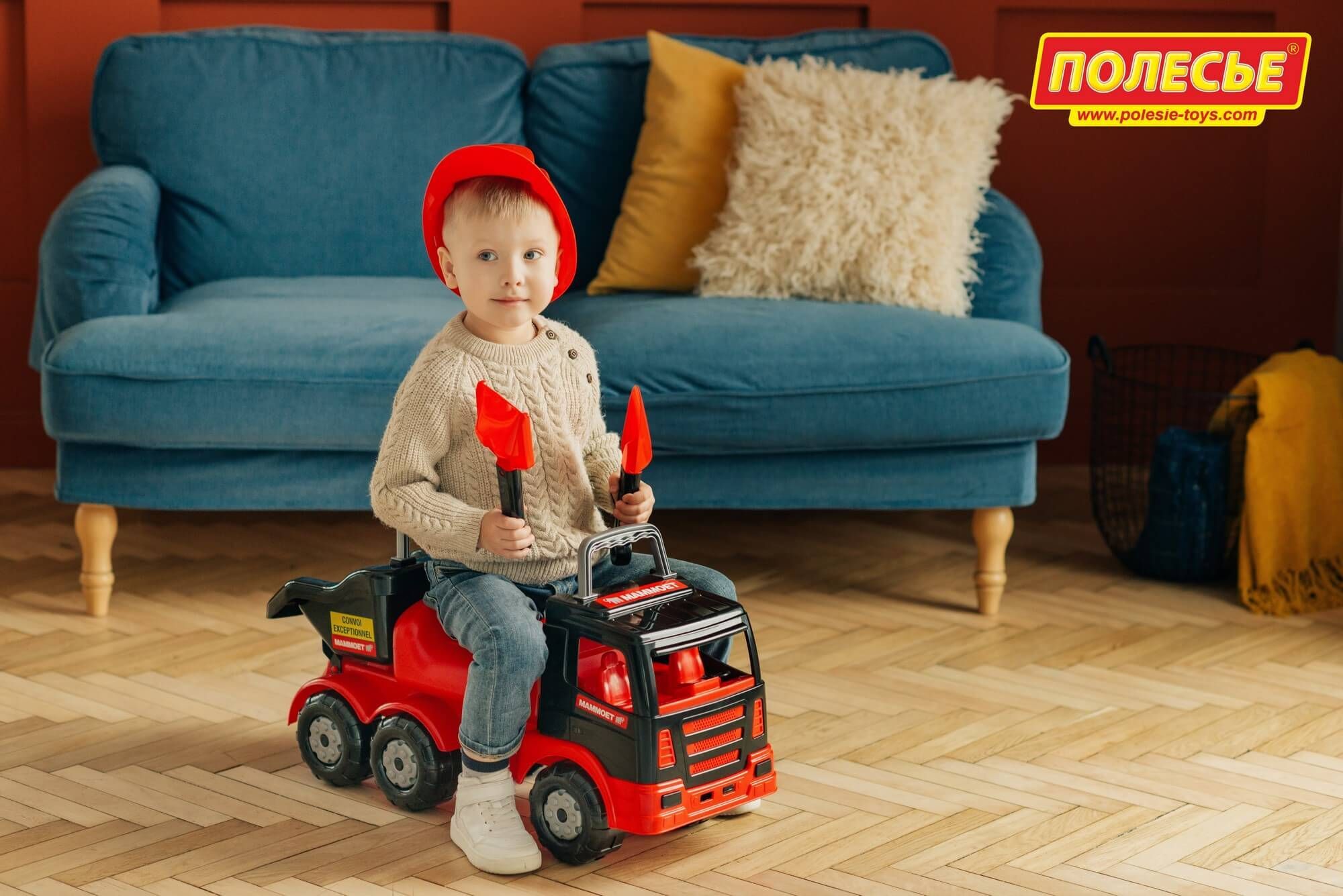 Крупнейшая в СНГ фабрика по производству игрушек «Полесье» совместно с компанией «МАММОЕТ», специализирующейся на тяжёлых подъёмных работах и транспортировке тяжёлых грузов по воде и суше, наладила выпуск лицензионной серии эксклюзивных игрушек. Дизайн игрушек разработан в соответствии с фирменными цветами компании «МАММОЕТ», что придаёт всей серии реалистичность. Серия предполагает наличие позиций для детей разных возрастов и с разными интересами. Она включает в себя и каталки. Данная модель универсальна: ребёнок может играть машинкой, а также использовать игрушку в качестве каталки (сверху предусмотрено удобное сиденье). Автомобиль-каталка предназначен для маленьких деток, так как вместо руля на кабине — ручка, и основная нагрузка попадает именно на ножки. Держась за ручку на кузове, малыш толкает машину перед собой, тем самым совершенствует навыки ходьбы. Такое катание развивает общую координацию движений ребёнка, способствует физическому развитию детей. Багажник-кузов откидывается,
