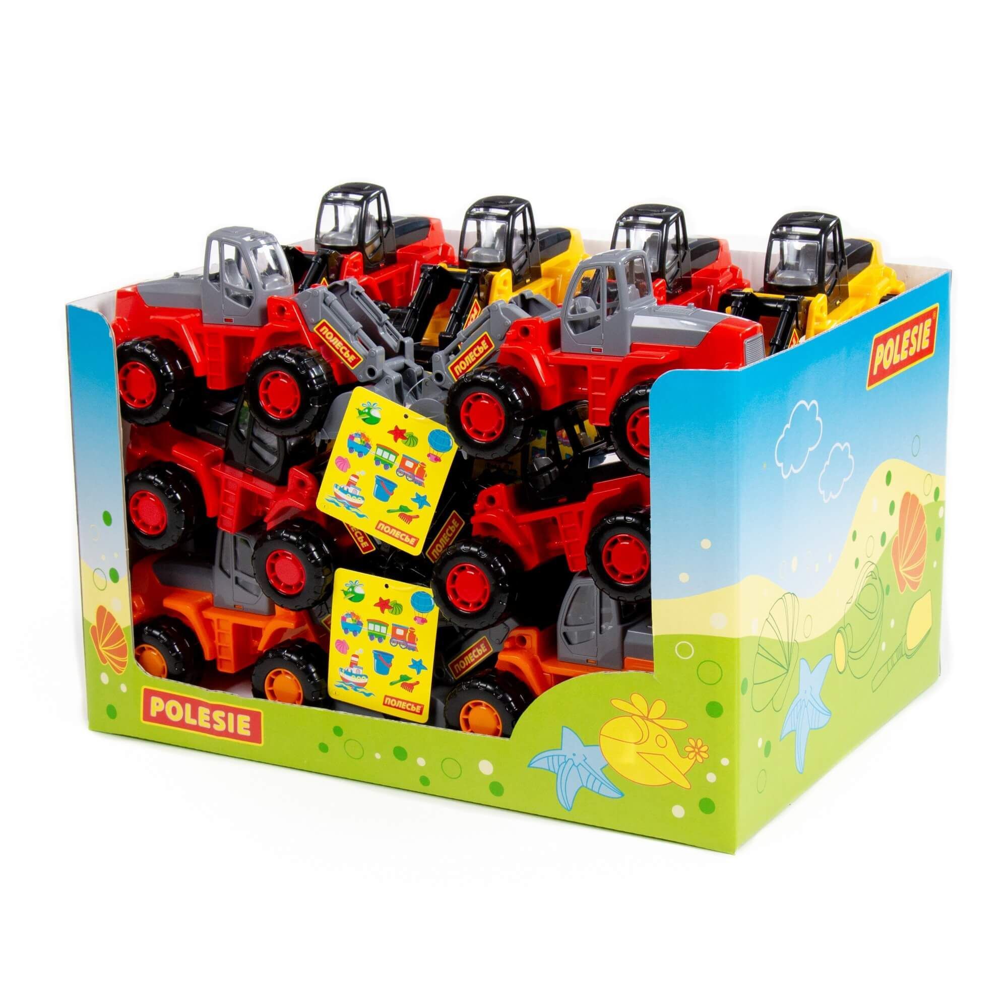Продукция в дисплеях создана для тех, кто хочет приобрести сразу несколько элементов из одной серии товаров. Такая комплектация удобна для закупки игрушек в магазины. Так как покупатель будет ознакомлен со всеми возможными видами продукта. Игрушки в дисплеях выглядят намного привлекательнее, что способствует осуществлению покупки. Дисплей № 85 представляет "Умелец", трактор-погрузчик. К игрушкам в виде спецтехники и тракторов у детей особый интерес. Они позволяют узнать тонкости использования такого транспорта в разных отраслях, побуждают к выбору профессии. "Умелец" трактор-погрузчик выглядит очень реалистично, что позволяет формировать у детей правильное представление о предметах.