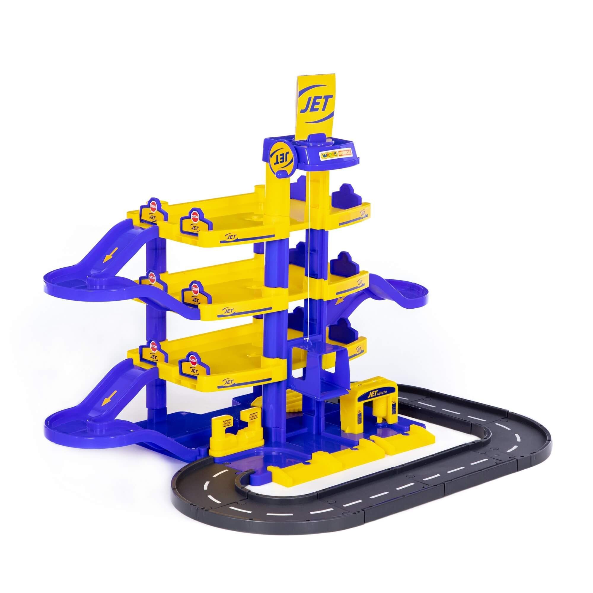 Четырёхуровневый паркинг. На первом уровне паркинга расположены автомойка, автозаправка, эстакада. Для подъёма на остальные уровни предусмотрен лифт, который приводится в движение с помощью рукоятки на верхнем уровне. Автомобили в комплект не входят.