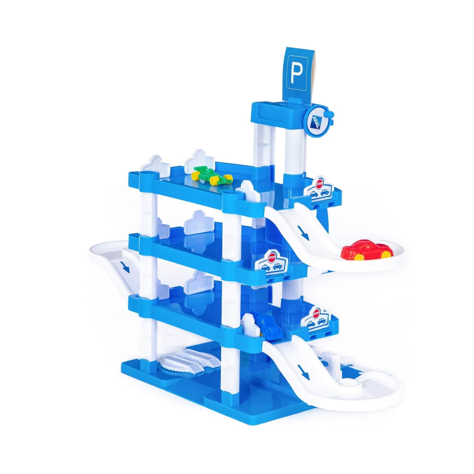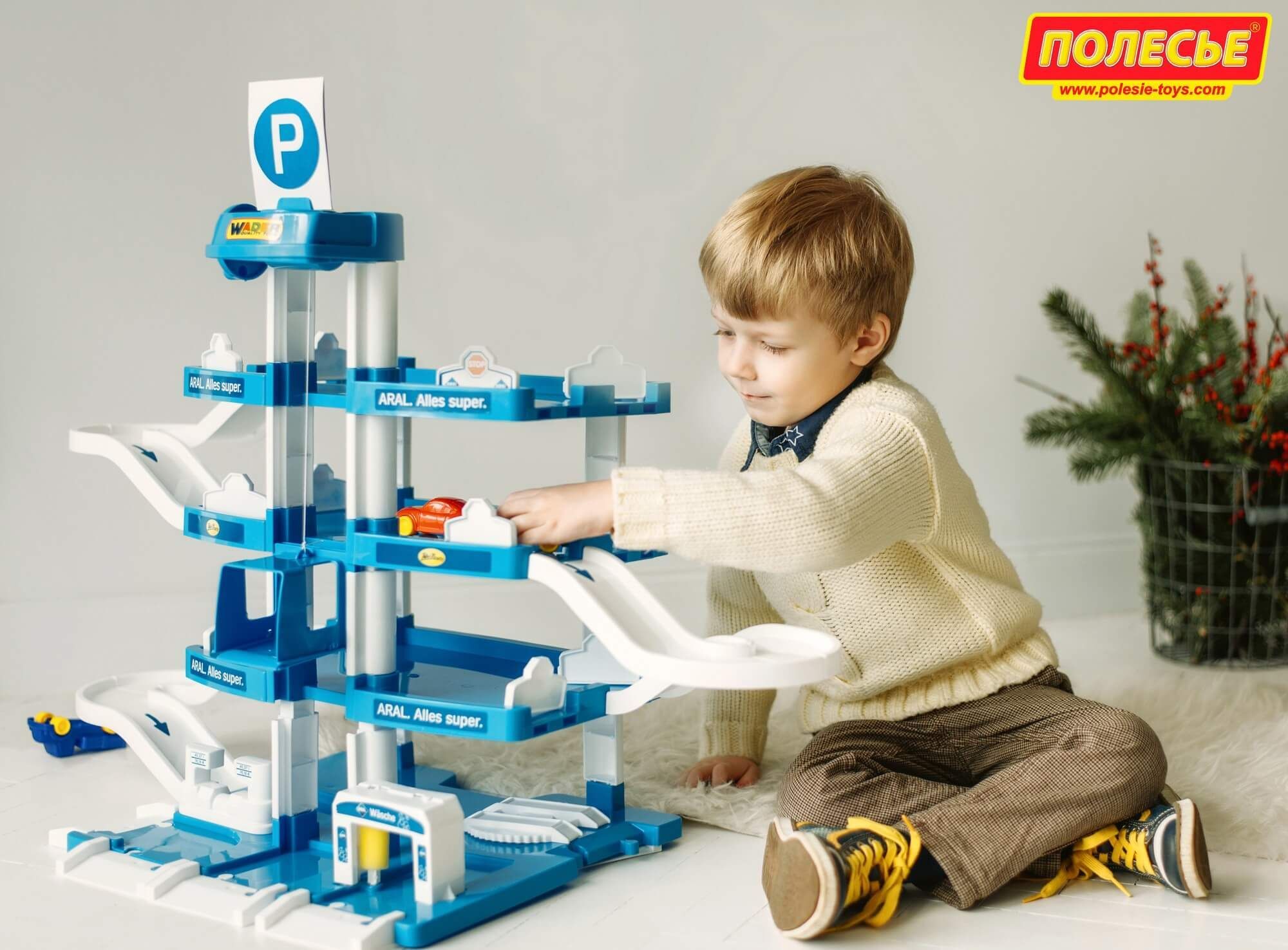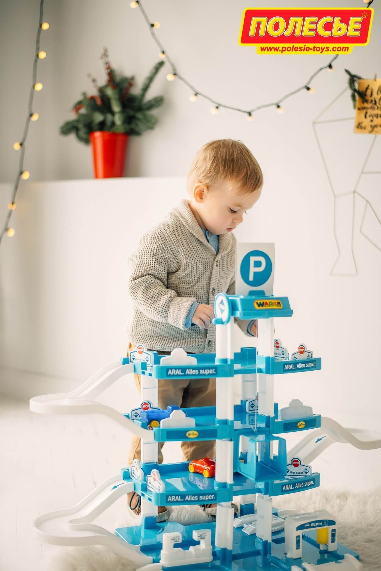 Четырехуровневый паркинг с автомобилями. На первом уровне паркинга расположены автомойка, автозаправка, эстакада. Для подъема на остальные уровни установлен лифт, который приводится в движение с помощью рукоятки на верхнем уровне.