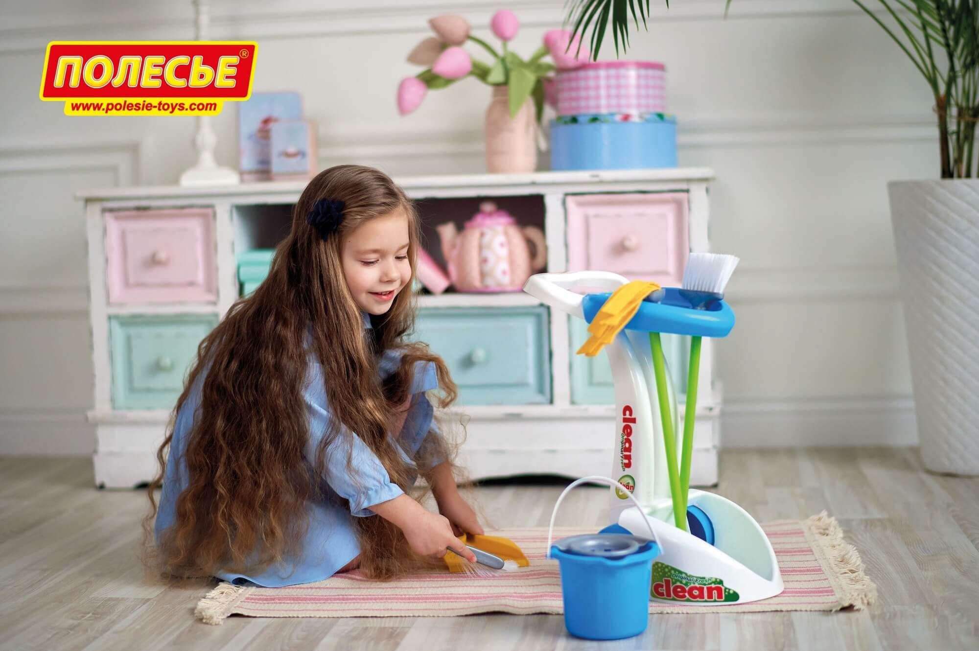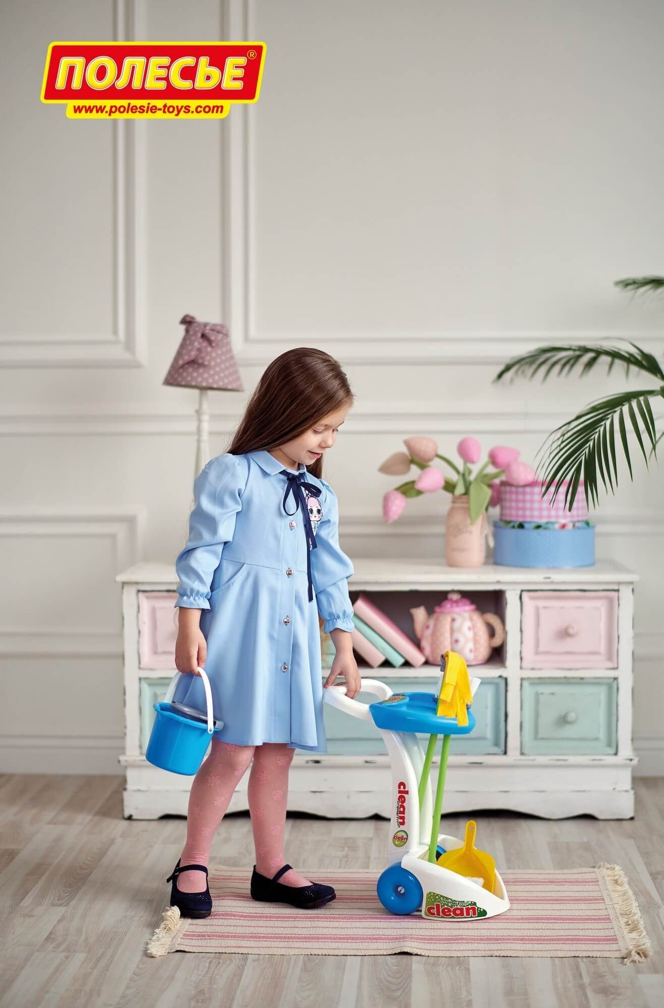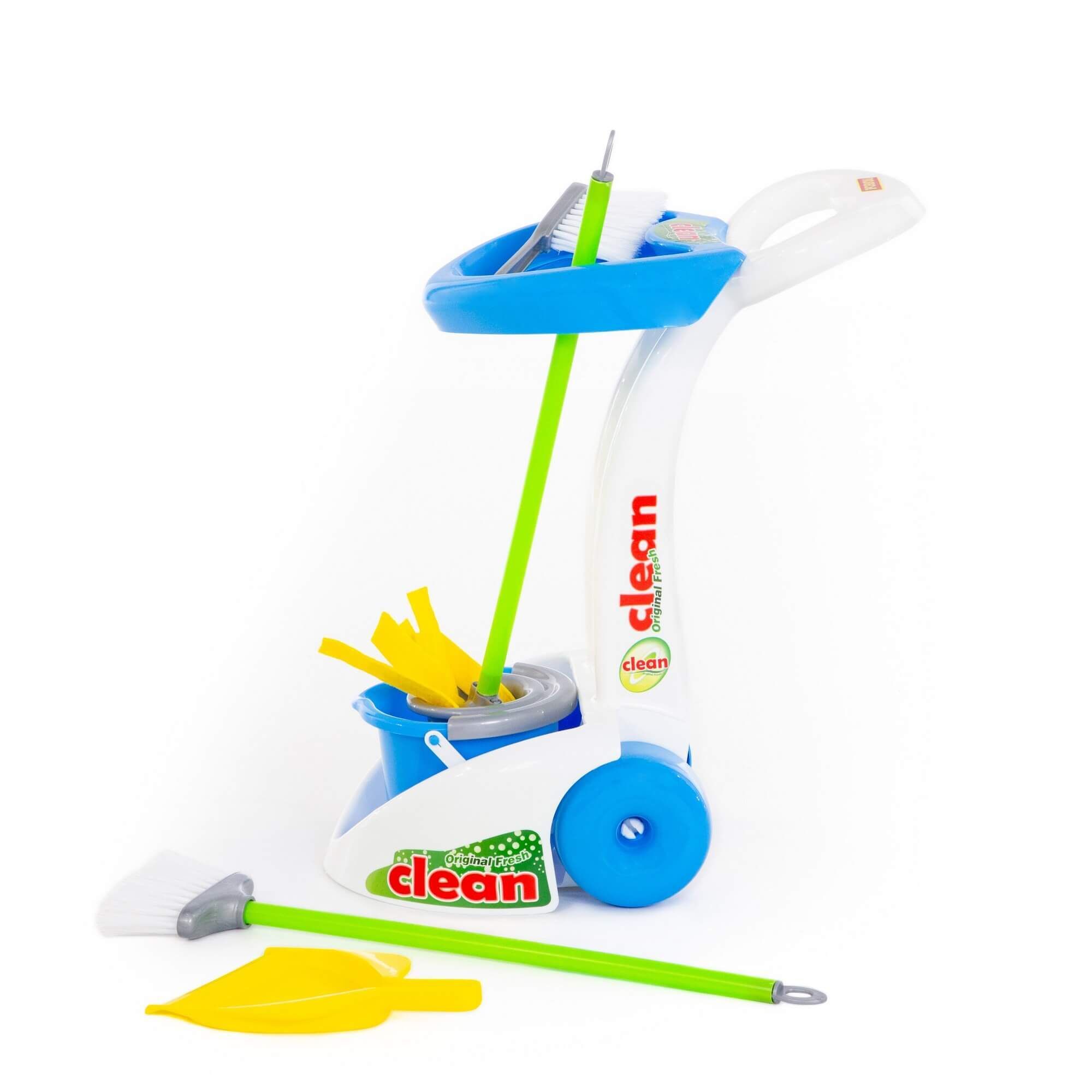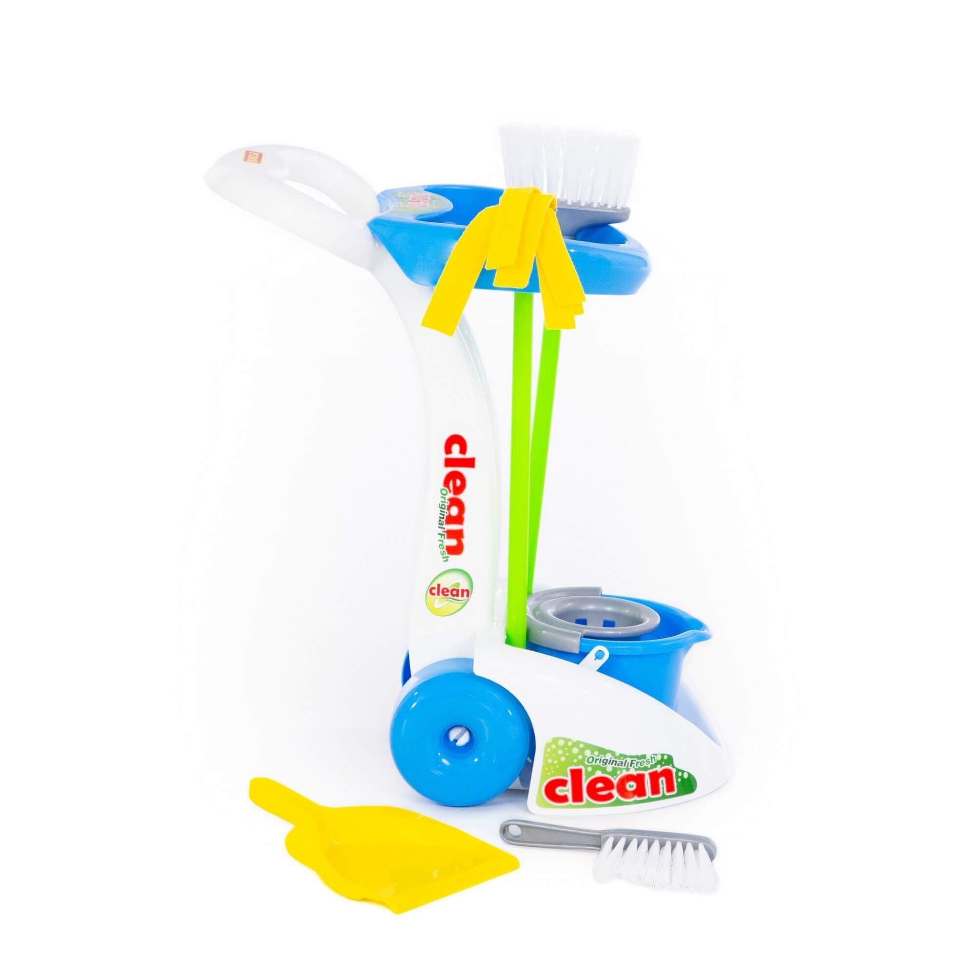 С набором «Чистюля» малыш играет и одновременно приучается к порядку. Игрушечный комплект полностью соответствует оригинальным приборам, которые используют современные хозяйки. Все принадлежности компактно расположены на передвижной тележке. В наборе имеются: швабра, большая и маленькая щётки, совочек, ведро с отжимом. У каждого прибора - своё место для хранения (для этого на тележке предусмотрены специальные платформы и ниши). Тележка на колёсах, поэтому её легко перемещать. Игрушечный комплект хозяйки компактный и занимает мало места. С его помощью ребёнок учится быть самостоятельным, развивается координация движений, моторика рук и воображение. Играть с набором «Чистюля» можно как в одиночку, так и командой. Инвентаря для уборки хватит на целую семью!