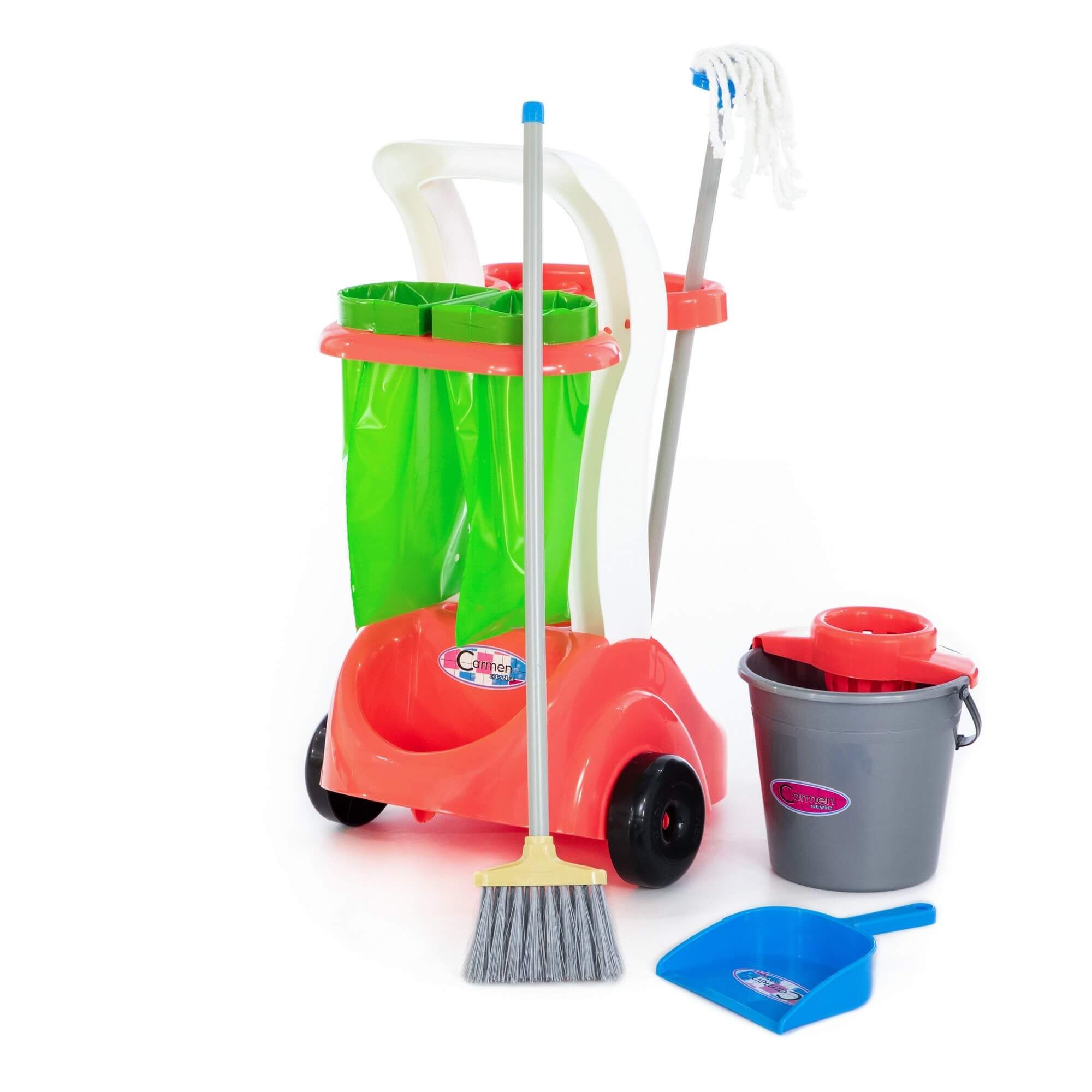 Поддерживать чистоту и порядок в мире игрушек маленькой хозяюшке поможет игровой набор «Помощница». Удобная тележка с реалистичными принадлежностями для уборки поможет развить в девочке желание быть хозяйкой, стремление беречь уют домашней обстановки, помогать маме в уборке. Обучение ребёнка происходит ненавязчиво, в игровой форме. В состав набора входят: