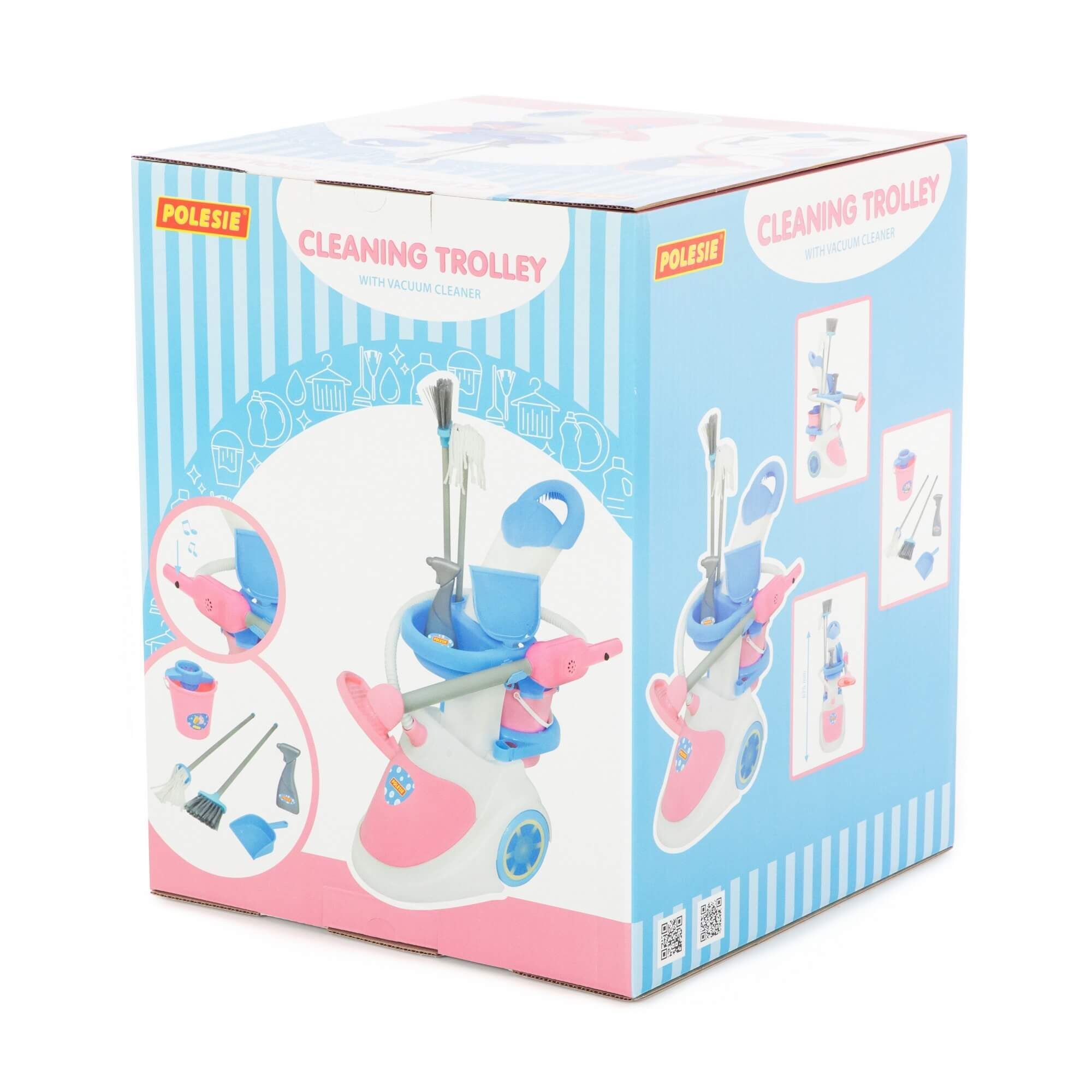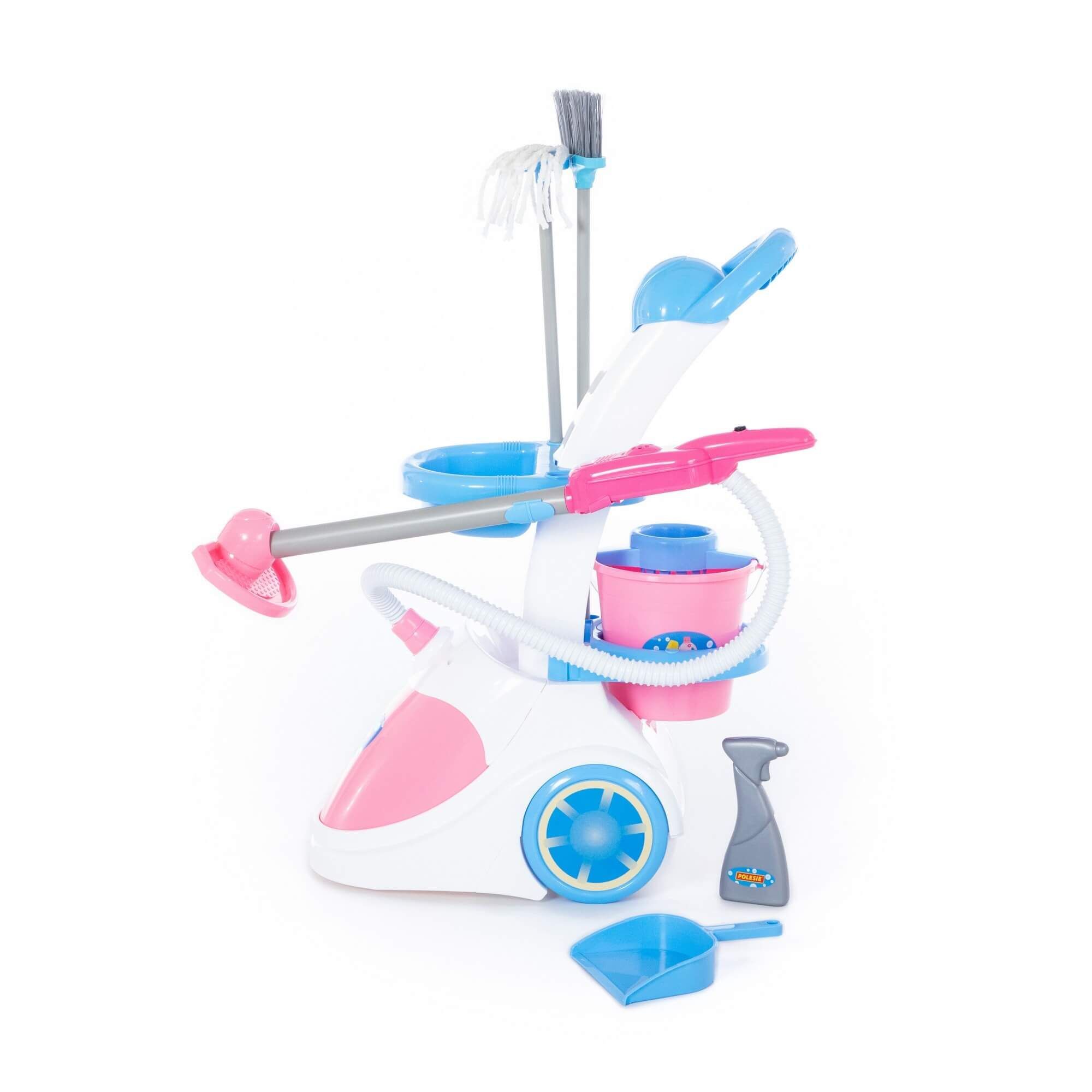 Игровой набор «Помощница» выполнен в нежной цветовой гамме, функционален и имеет звуковое сопровождение. Игрушка состоит из одного модуля - пылесоса на колёсах – и аксессуаров. Игрушечный пылесос напоминает атрибут современной хозяйки, имеет подвижную рукоятку, что делает игрушку интересной и функциональной. Пылесос «говорящий», то есть, имеет звуковое сопровождение-имитацию работающего прибора. Чтобы услышать звук, нужно удерживать кнопку на рукоятке. На передвижной тележке расположены также другие принадлежности для уборки: ведёрко с отжимом, швабра, щётка и совок. В комплект входит и флакон, имитирующий чистящее средство. С помощью такой игрушки ребёнок учится самостоятельности и в игровой форме приучается к порядку. Набор «Помощница»» станет отличным подарком для детей. С ним можно играть в одиночку или придумать интересные сценарии игр со сверстниками.