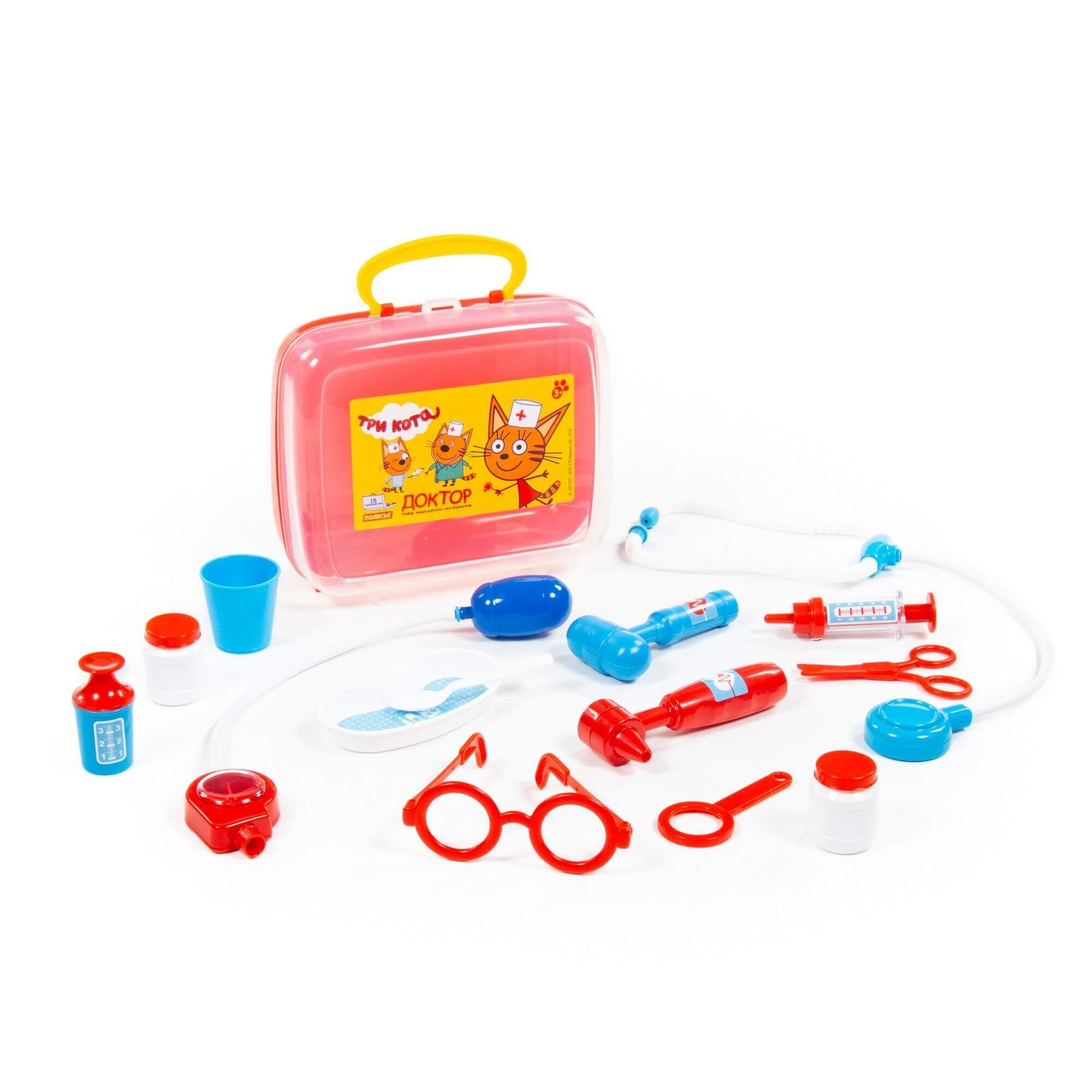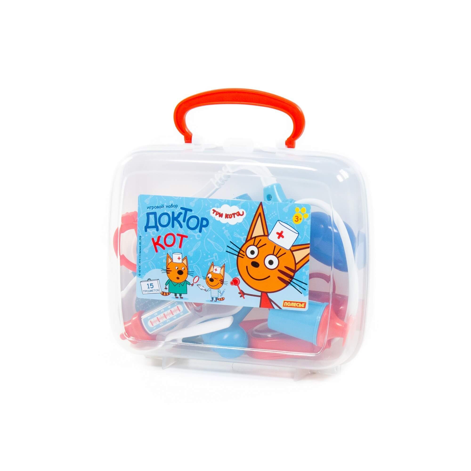 Теперь озорные котята из мультфильма «Три кота» будут радовать детей во время игр с набором доктора от фабрики «Полесье». Детские игрушки выделяются ярким дизайном, частью которого стали хвостатые персонажи из любимого мультсериала. «Три кота» рассказывают о повседневной жизни маленьких, но очень любознательных котят: Коржика, Компота и их младшей сестренки Карамельки. В состав набора «Три кота» «Доктор» входят: