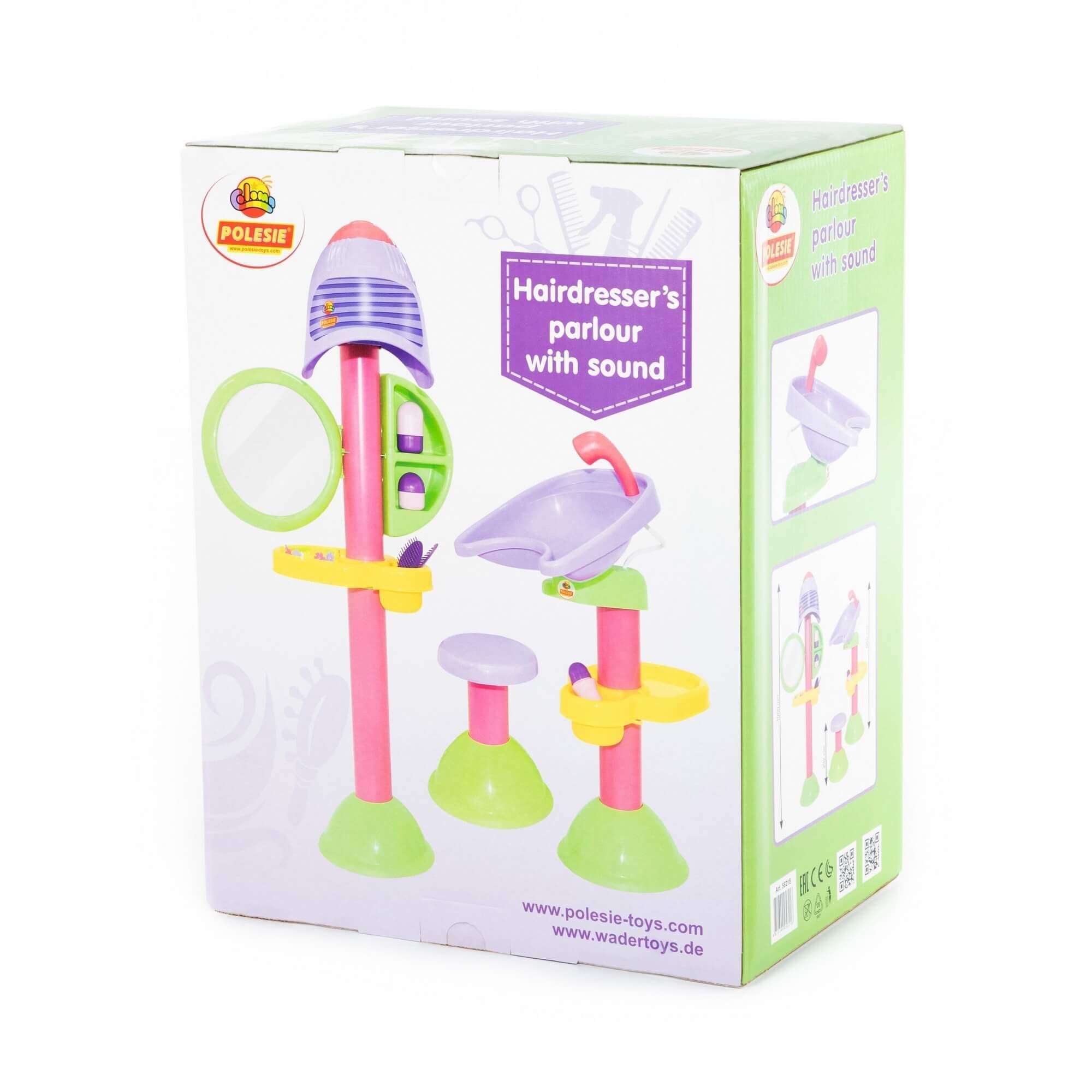 Если Ваша малышка мечтает стать парикмахером или модельером, вырасти модницей и красавицей - осуществите маленькую детскую мечту! Набор "Парикмахерская "Злата" позволяет ребенку стать мастером собственного салона красоты. Игровой центр помогает ребенку развивать фантазию, координацию, концентрацию внимания, а также моторику рук и тактильную чувствительность. В состав набора "Злата" входят: фен (имеет звуковые эффекты), мойка, табурет. Тематические комплексы знакомят детей с трудовыми процессами и прививают первоначальные трудовые навыки, способствуют художественному развитию, а также развитию воображения, фантазии, целеполагания.
