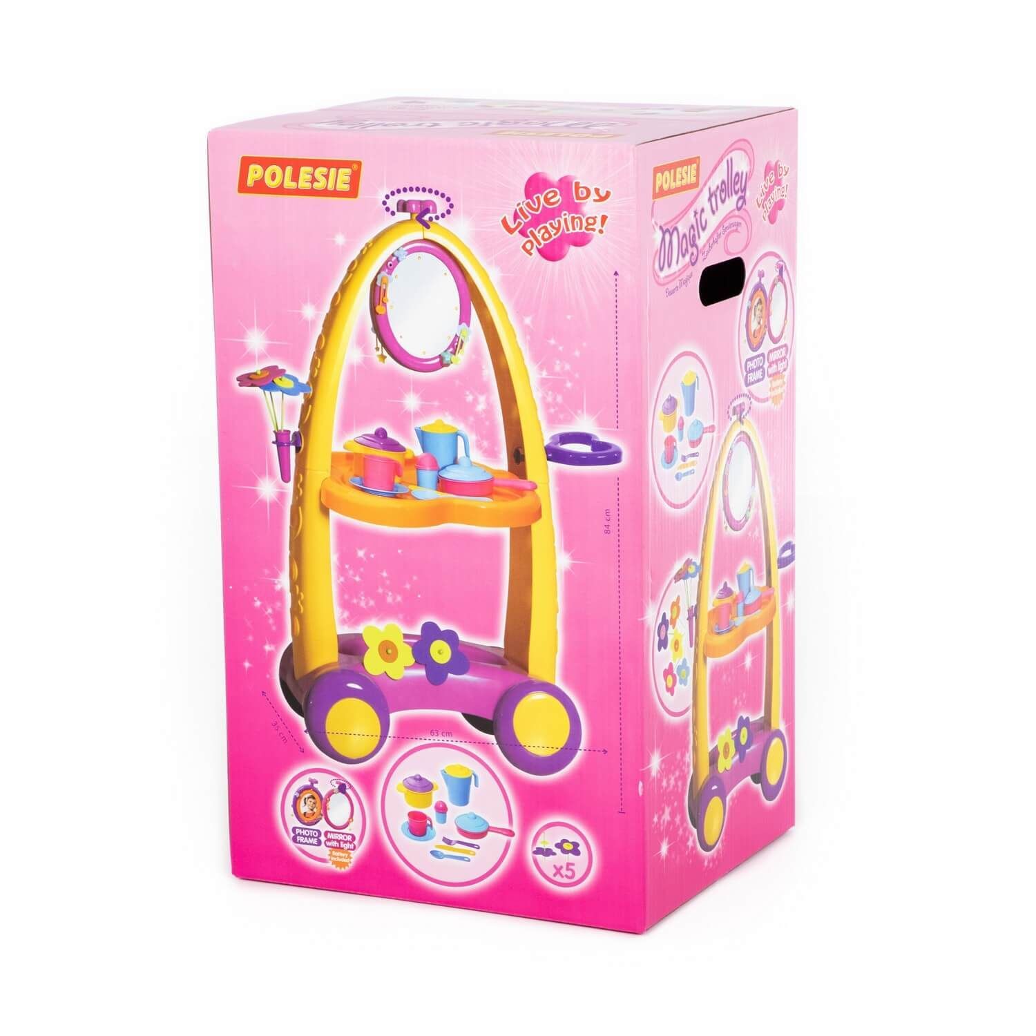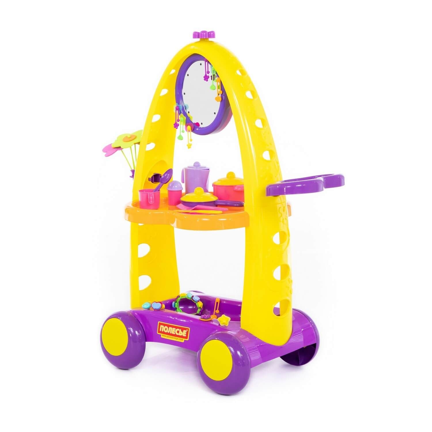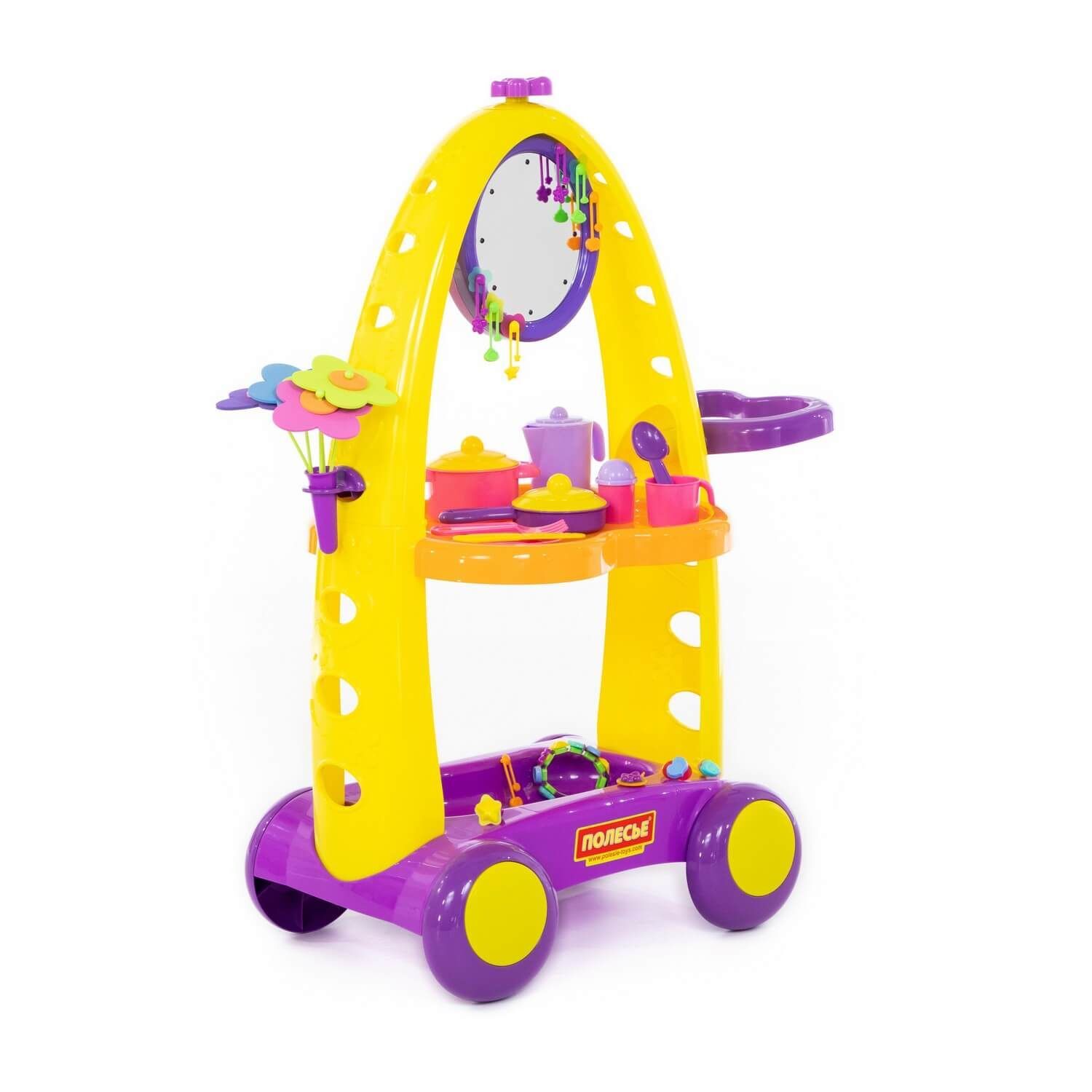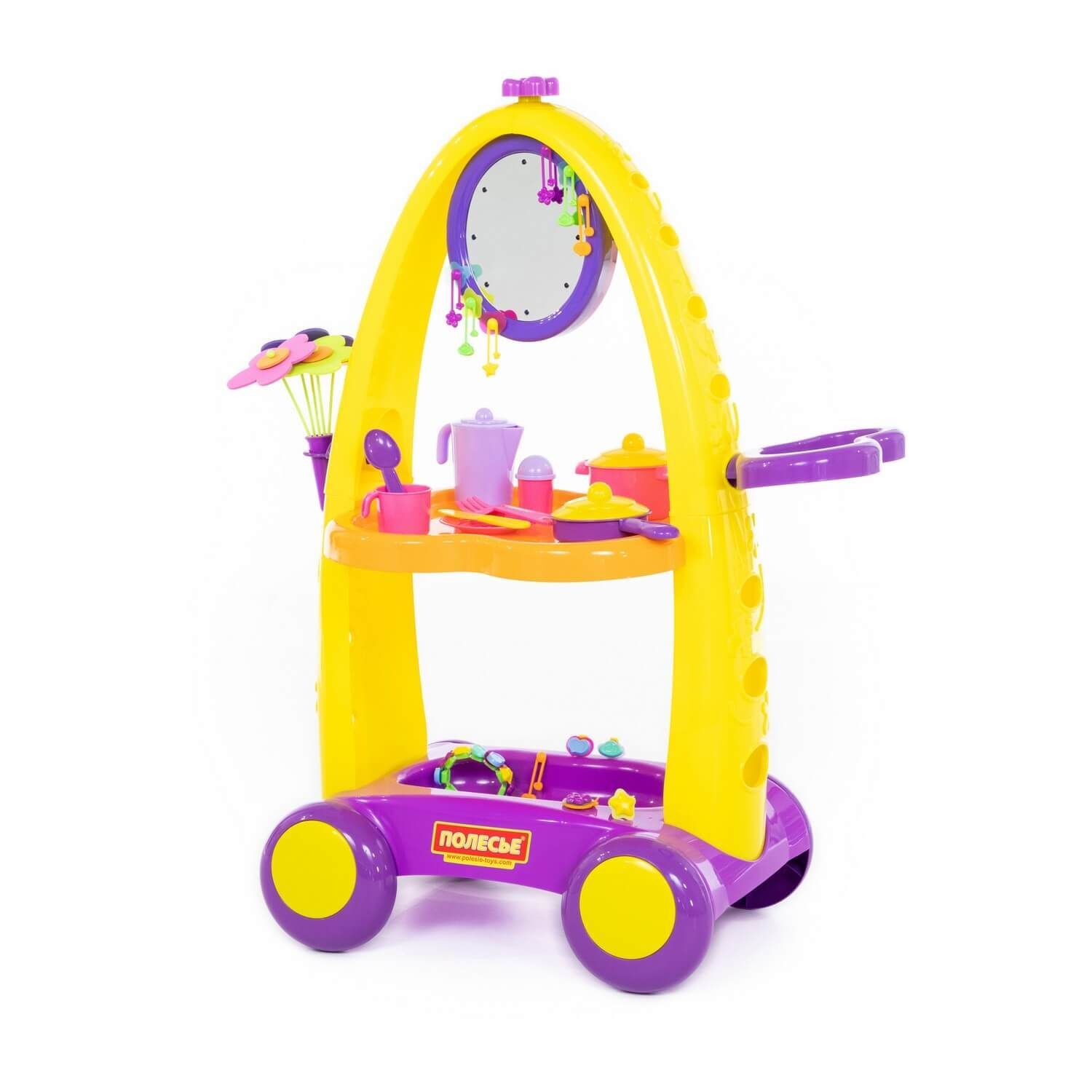 Игровой комплекс представляет собой тележку, которая может выполнять роль как туалетного, так и сервировочного столика. Комплекс оснащён зеркальцем с подсветкой, набором украшений, а также набором посудки. Кроме того, можно собрать и поставить в вазочку 5 цветочков. В набор украшений входят: браслет, клипсы, колечко и подвеска, которые малышка может собрать по своему вкусу и менять их цвет в зависимости от наряда. Деталями бижутерии можно украсить зеркальце, для этого в его рамке есть специальные отверстия. С обратной стороны зеркальца находится фоторамка для любимой фотографии модницы. В набор посуды входят: кастрюля, сковорода, чайник, чашка, блюдце, солонка, ложка, вилка, нож.